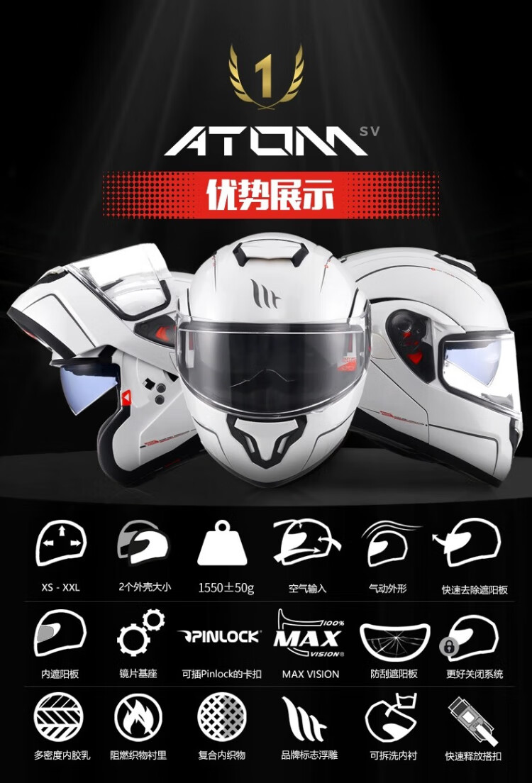 MT HELMETS Origin Motorcycle Helmet Revealed Helmet Cruise Helmet for Men and Women Cycling Winter Warmth Anti-fog Motorcycle Safety Hat Four Seasons Hot Selling Color - White (Default Transparent) 3XL (Recommended Head Circumference 60-61cm)