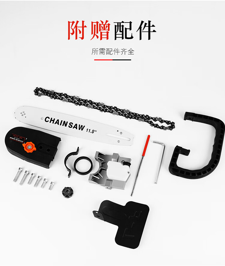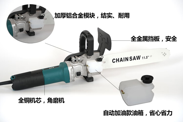 Jinchengtai electric chainsaw household logging saw electric chain saw small multi-functional woodworking mini angle grinder cutting machine modified portable 12-inch bracket + 1 quenching chain - automatic refueling