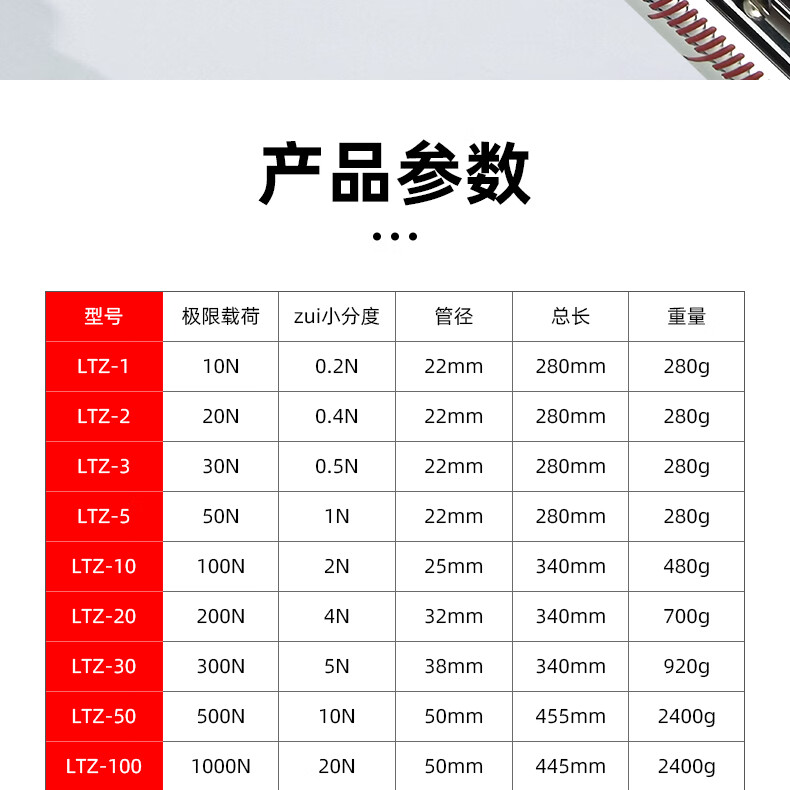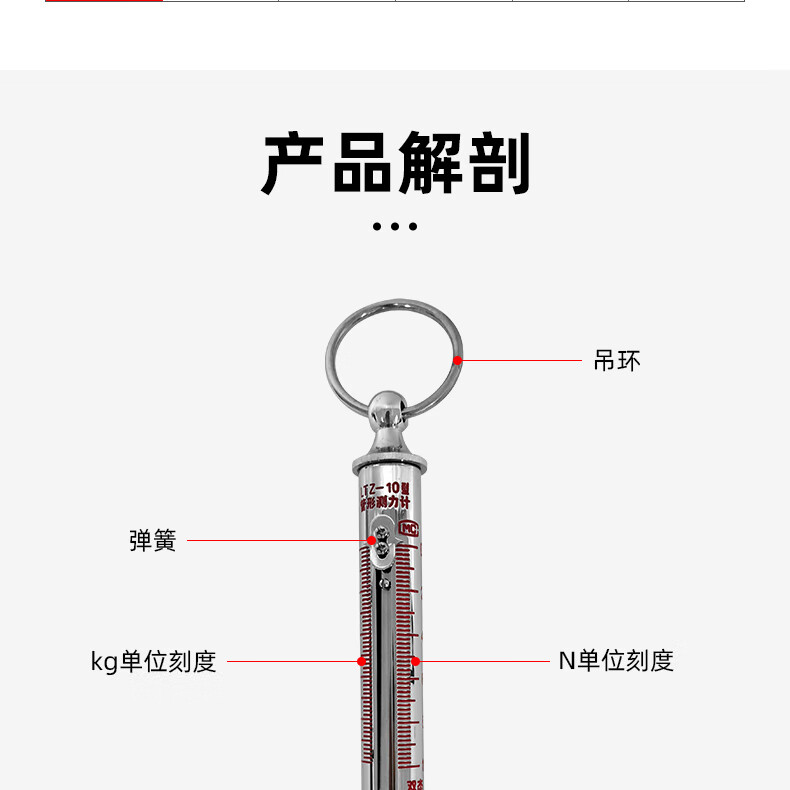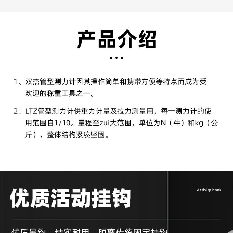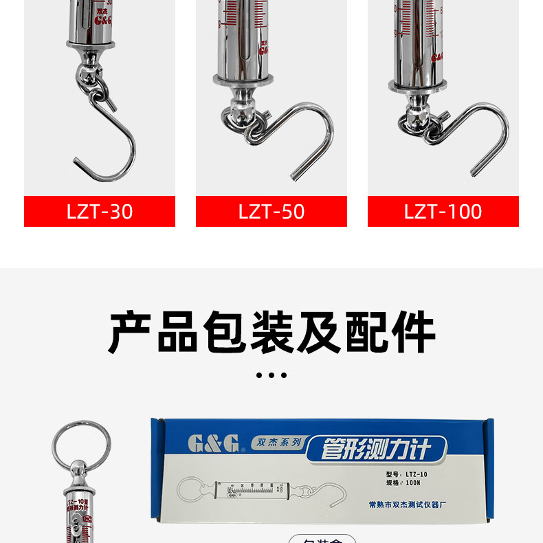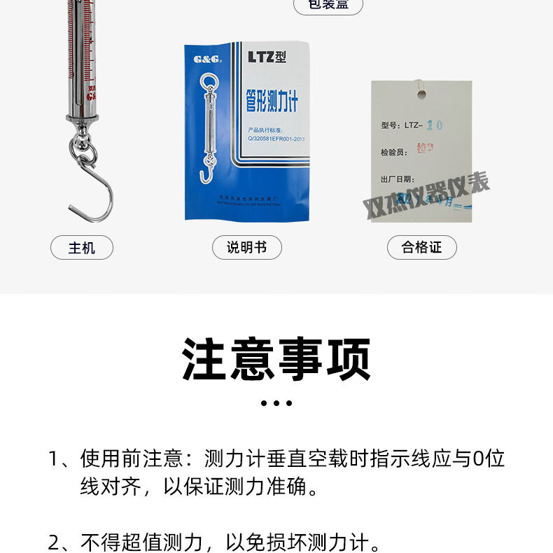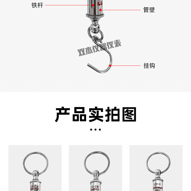 Shuangjie dynamometer tension meter LTZ-10/20/30/50 spring metal tube type with hook scale laboratory tension testing LZT-50 (range 50KG/500N)