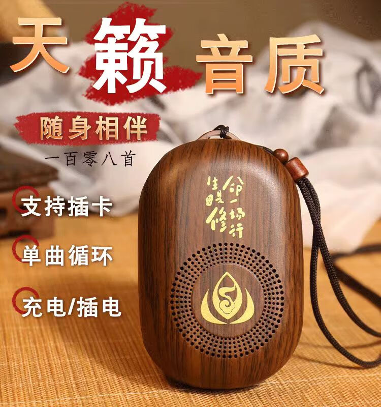 Julizhonghe plug-in card with 108 tracks for the elderly to meditate and recite, a learning machine, a high-quality small speaker, for morning and evening class playback, a wood grain player + charging head