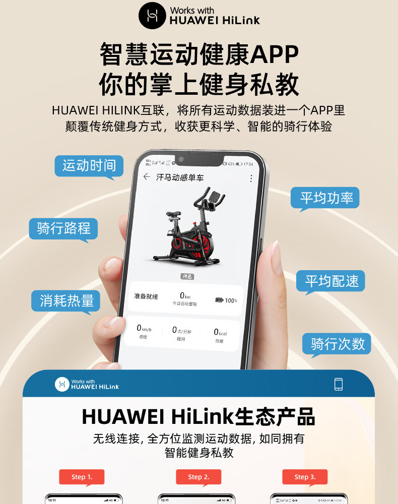 Hanma HUAWEI HiLink Hanma spinning bike for home gym special magnetic control exercise bike step bike indoor HUAWEI HiLinK ecological product S9 white