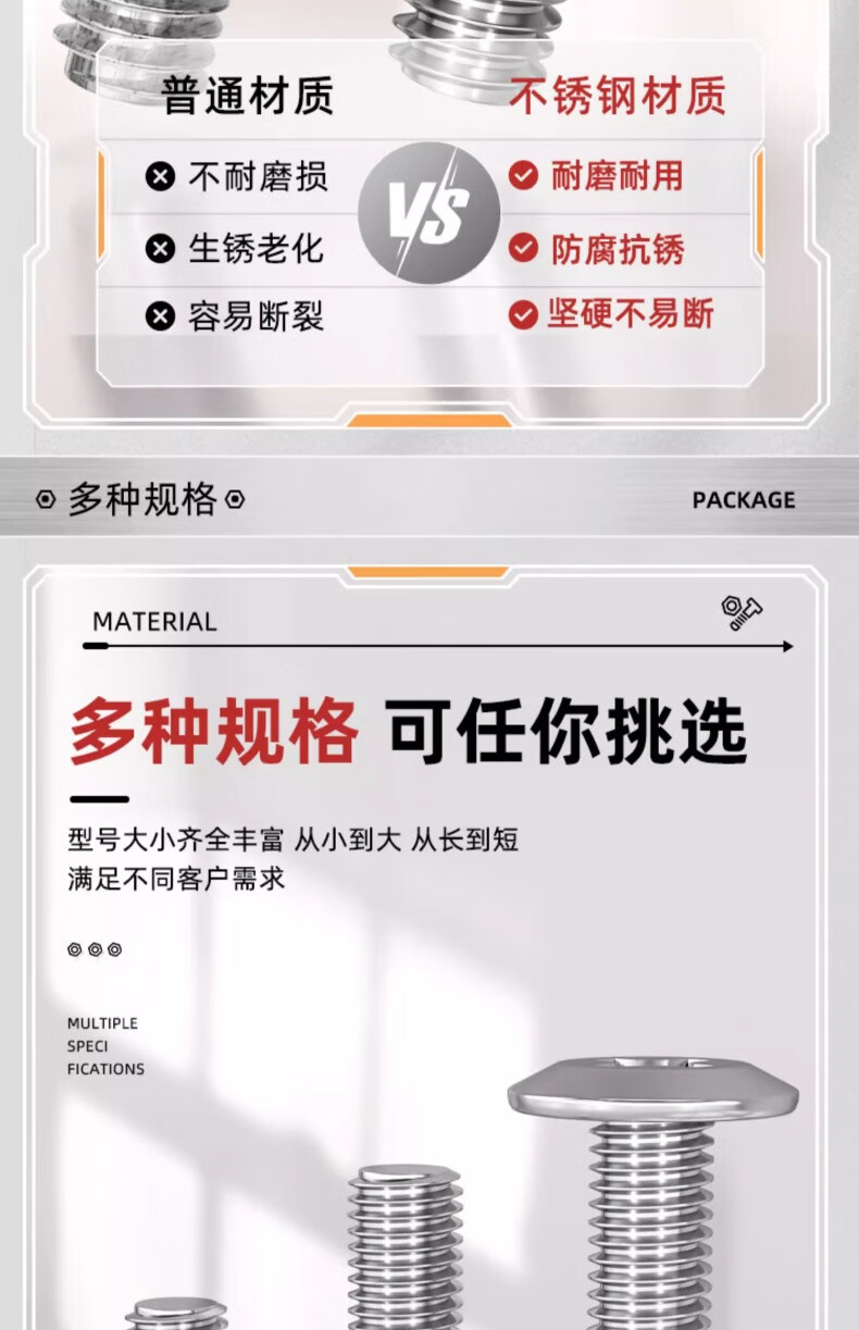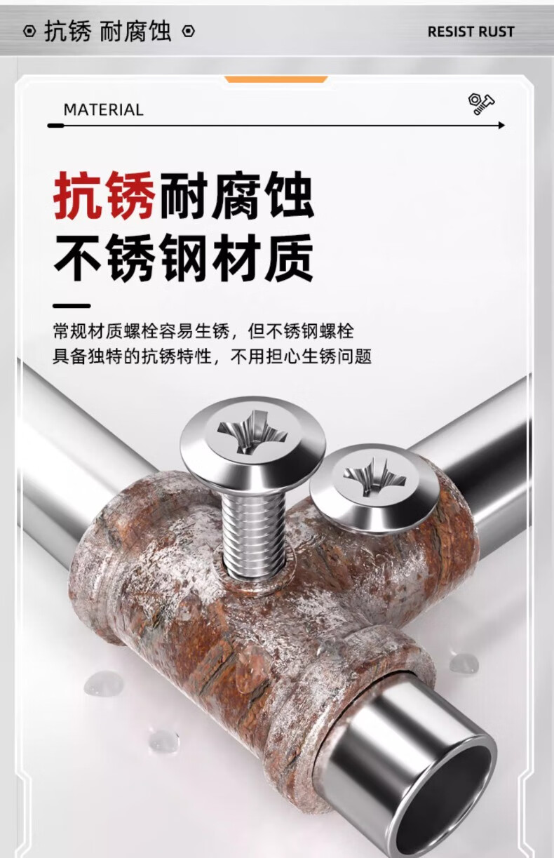 Fengji 304 stainless steel flat head plywood furniture connection bolts large flat head inverted cross screws M3M4M5M6MM8 M4*8 50 pcs