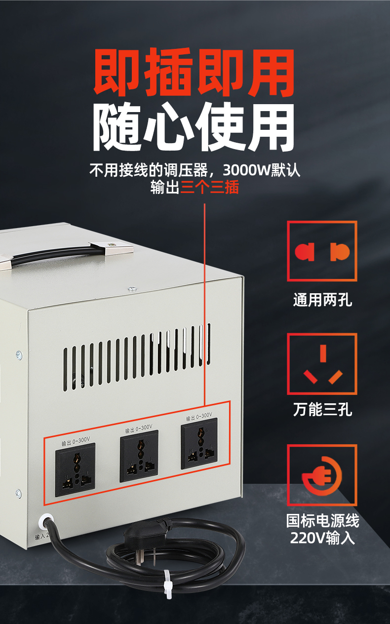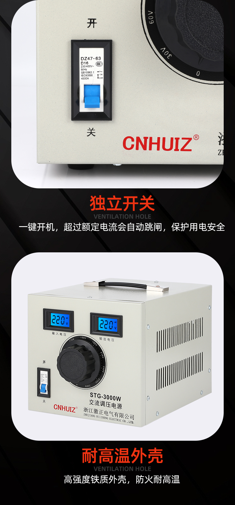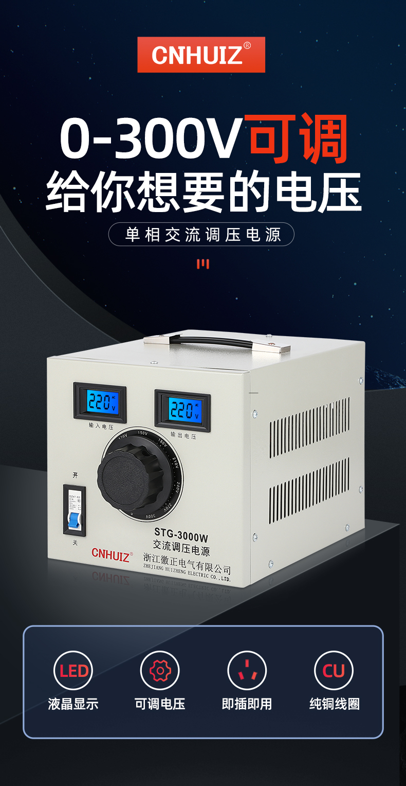 Jiemanguo single-phase voltage regulator AC 220V contact type STG-500W voltage regulating transformer 0-300v adjustable power supply 3000W single meter voltage and current model (0-300V adjustable)