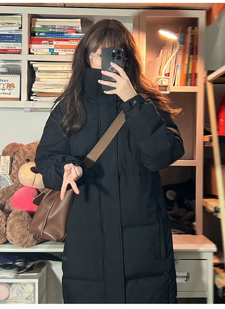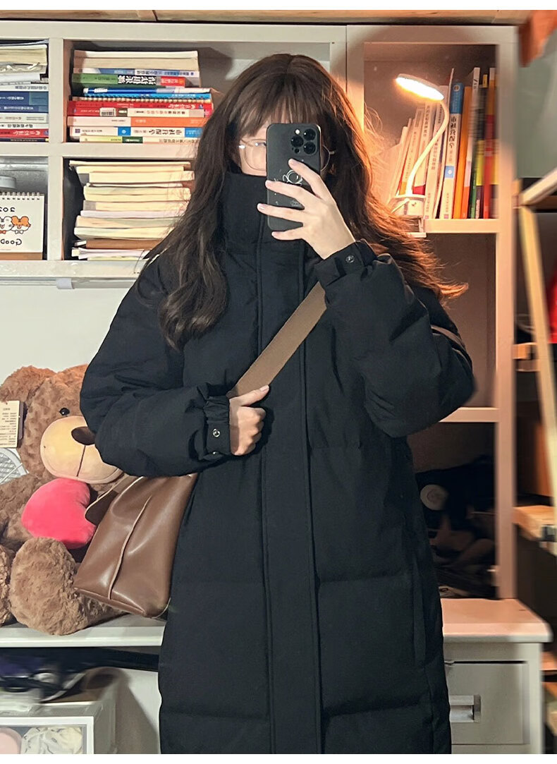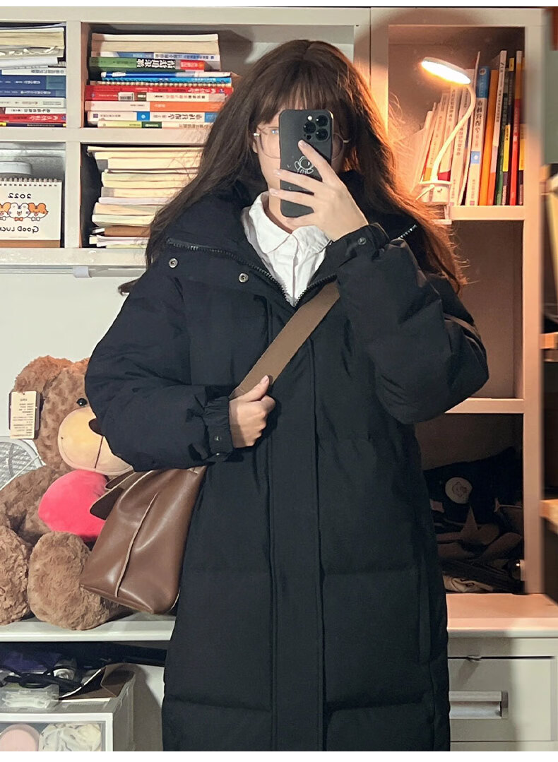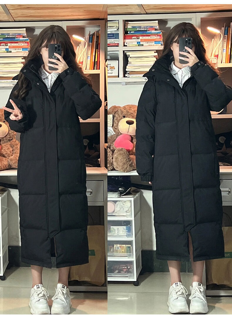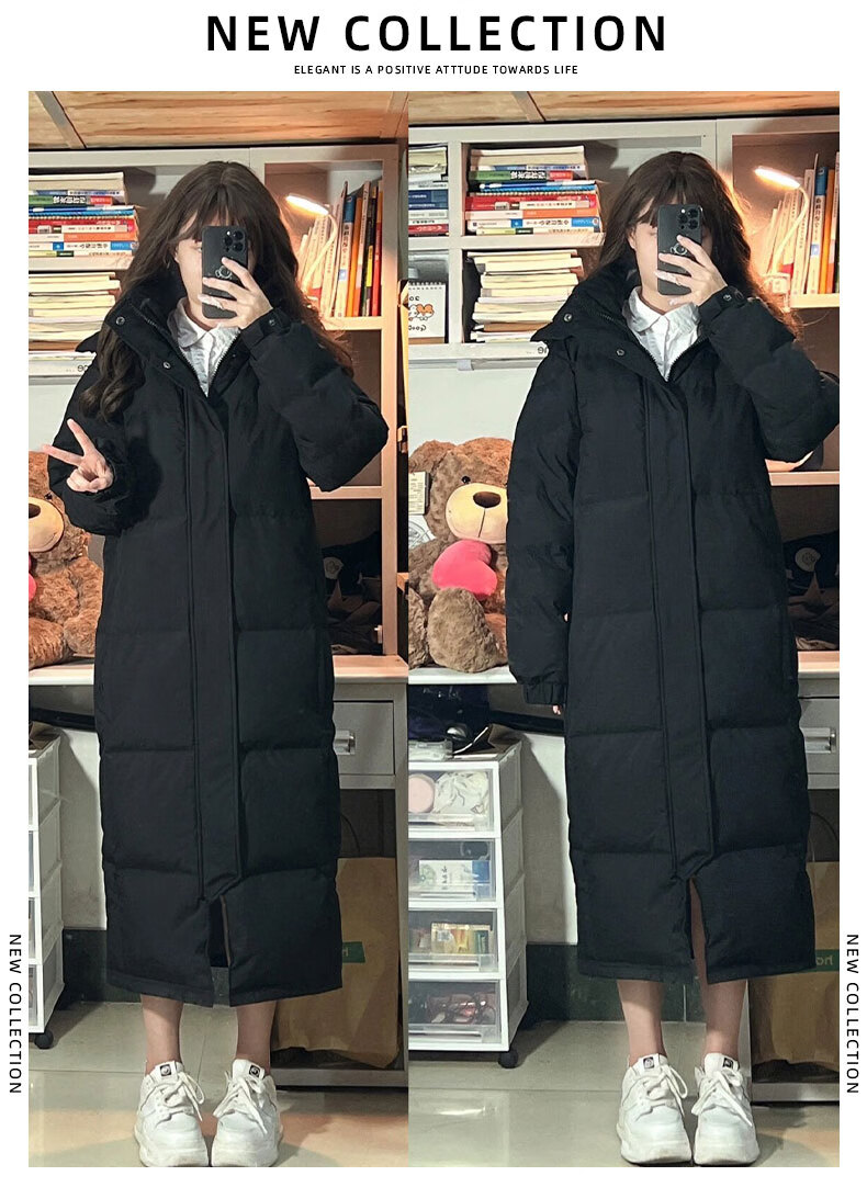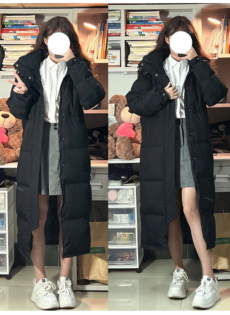 GARNUO Chinese drama same style down jacket for women mid-length knee-length hooded 2025 new winter white duck down thickened black jacket black S 80-100 catties