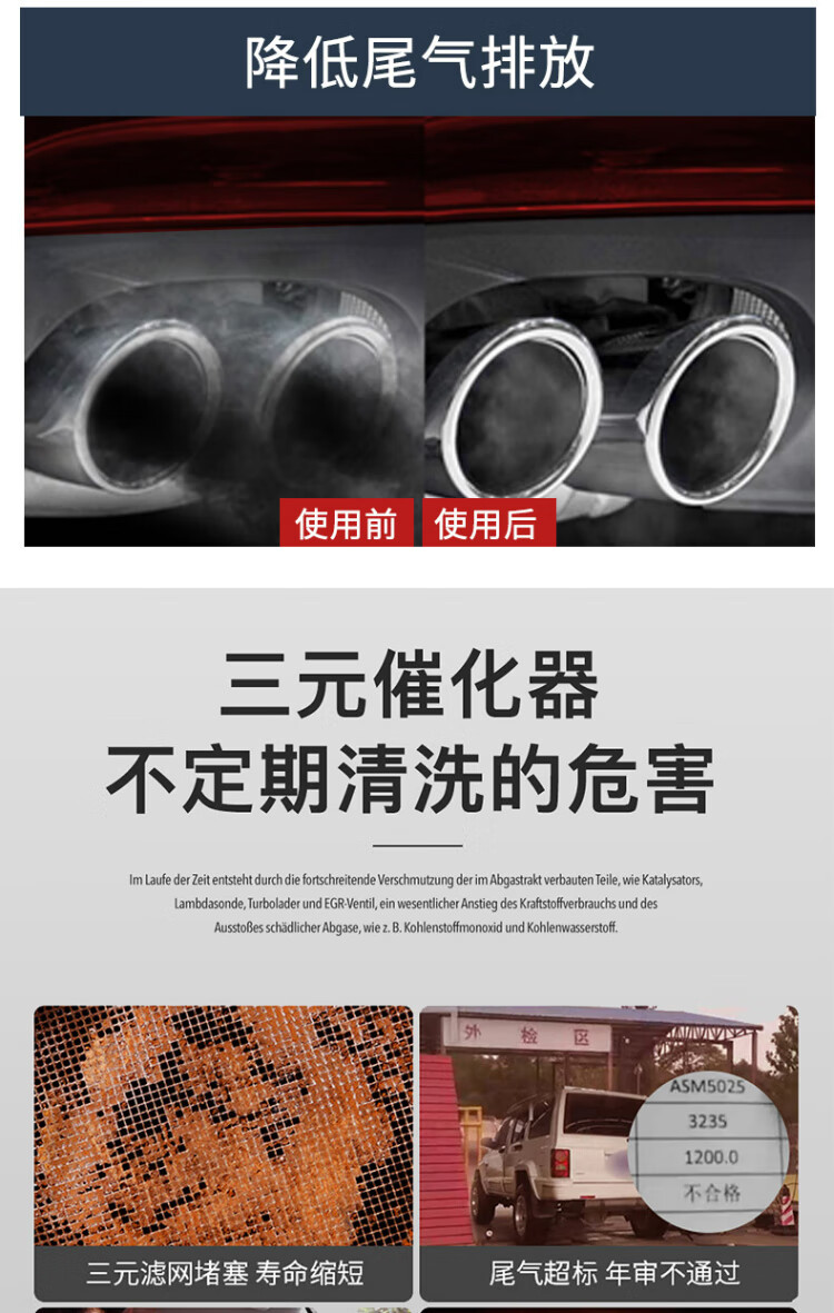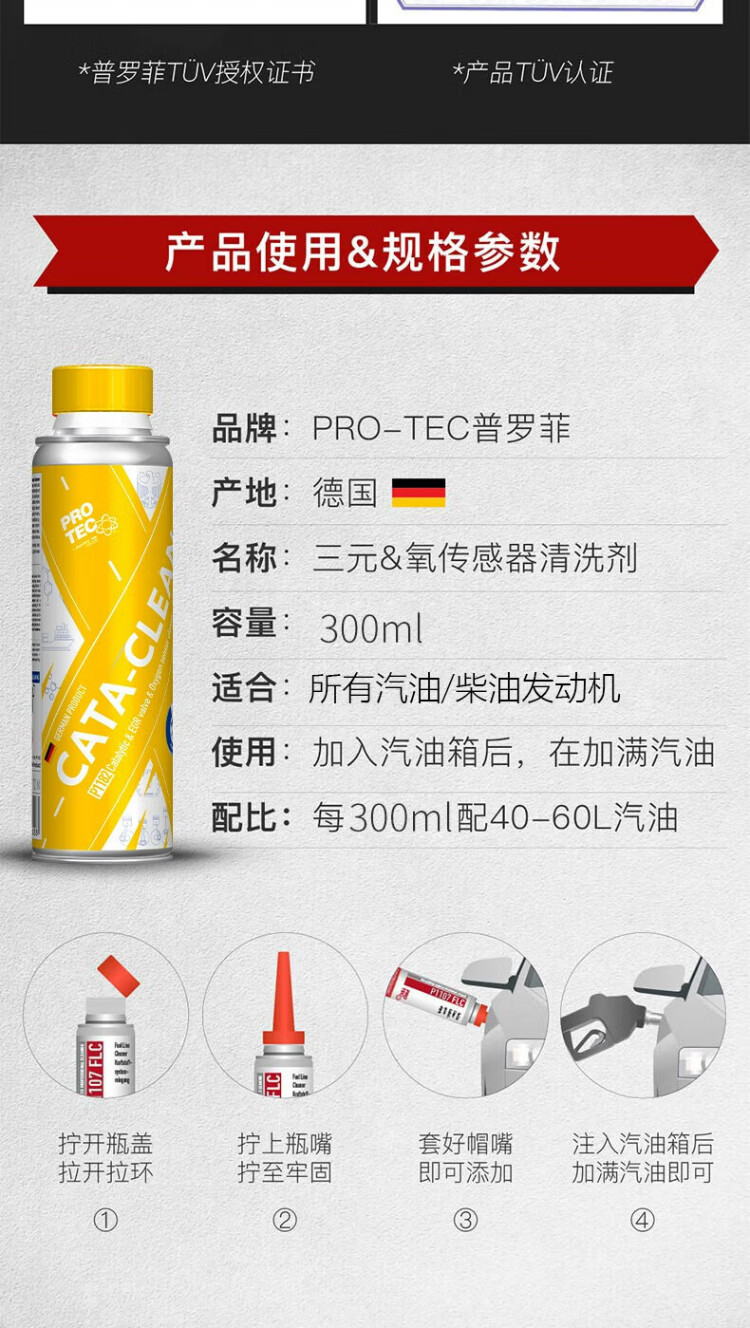 PROFI Germany imported exhaust gas treatment three-way catalytic cleaning agent, no disassembly, car oxygen sensor cleaner, excessive treatment, 100,000 kilometers double cleaning, carbon removal king + three-way cleaning