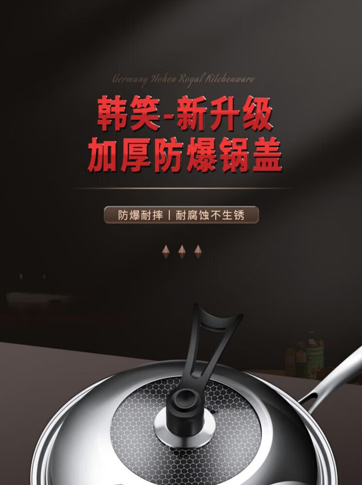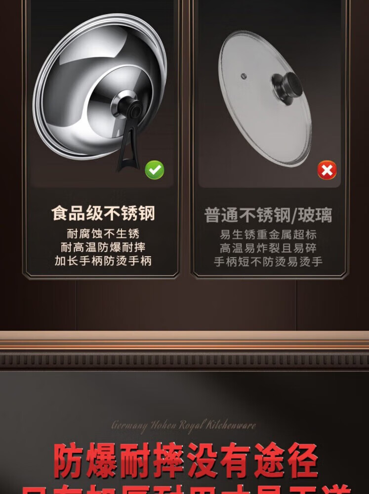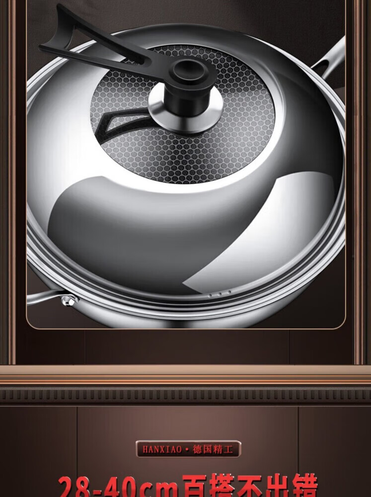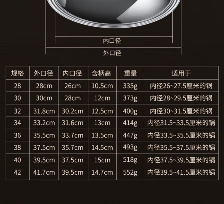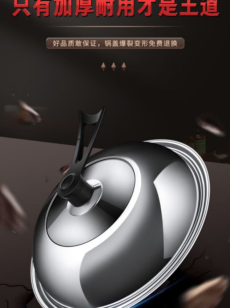 Junmo pot lid universal thickened stainless steel wok lid with immediate visibility iron pot lid explosion-proof hot pot frying pan lid with handle suitable for pots with inner diameter 37.5-39.5cm 40cm