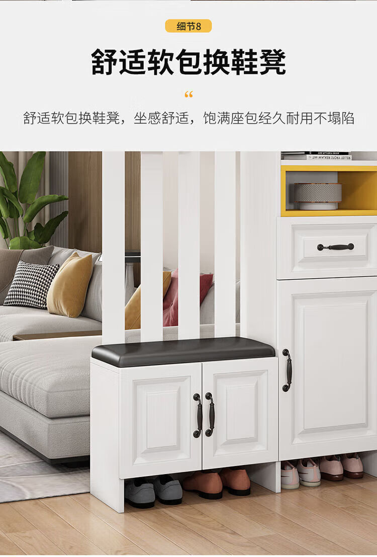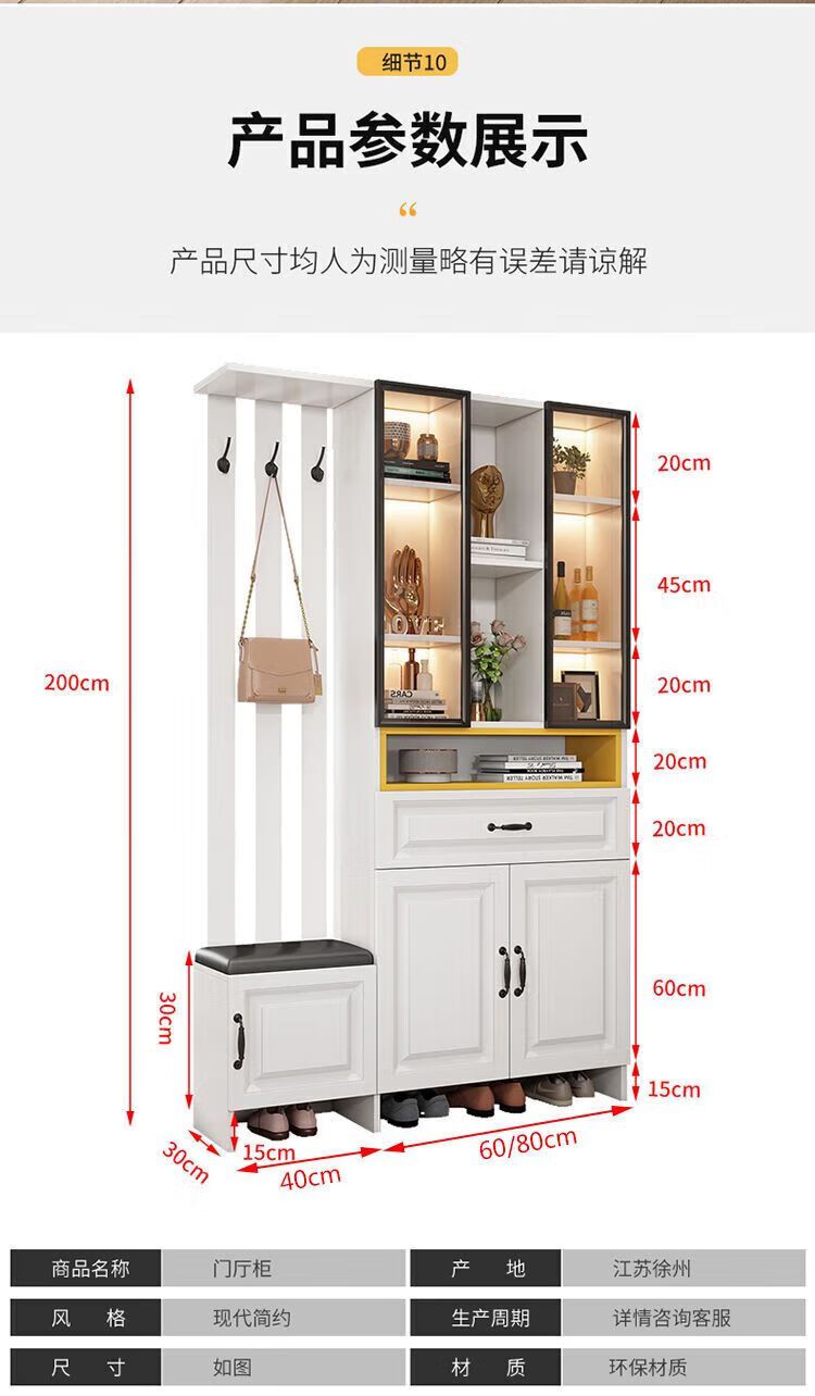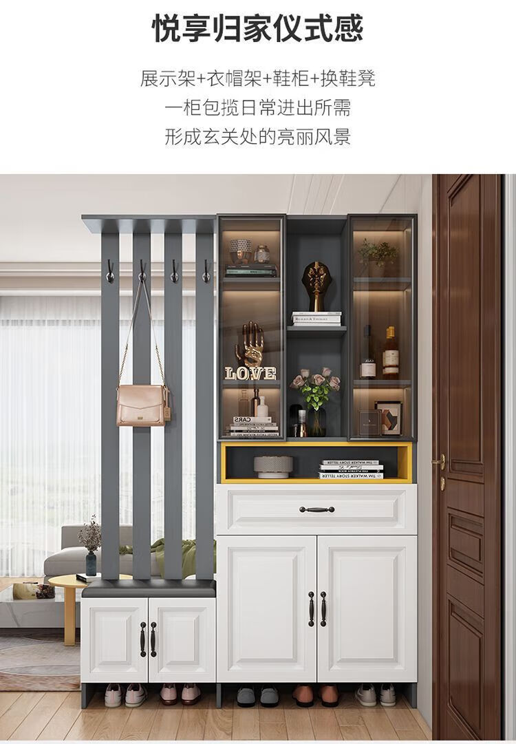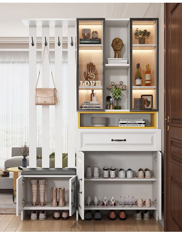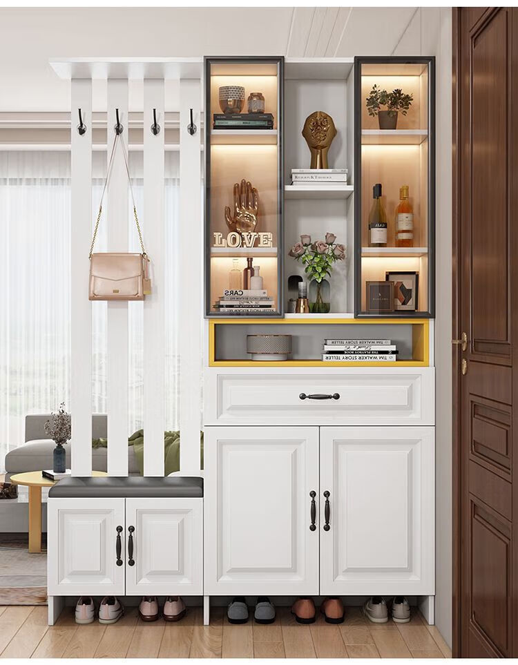 Guangdong Mercure 2026 new European style solid wood entrance hall cabinet simple modern multi-functional shoe cabinet and wine cabinet integrated storage delivery home package installation stool on the right white 40*30*200 with door style