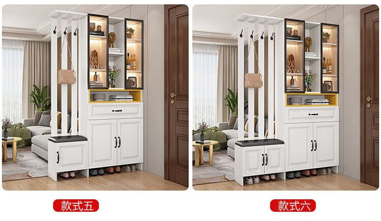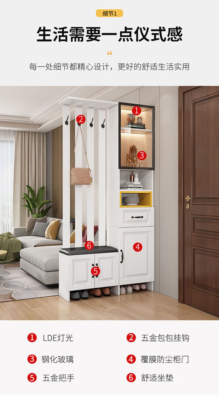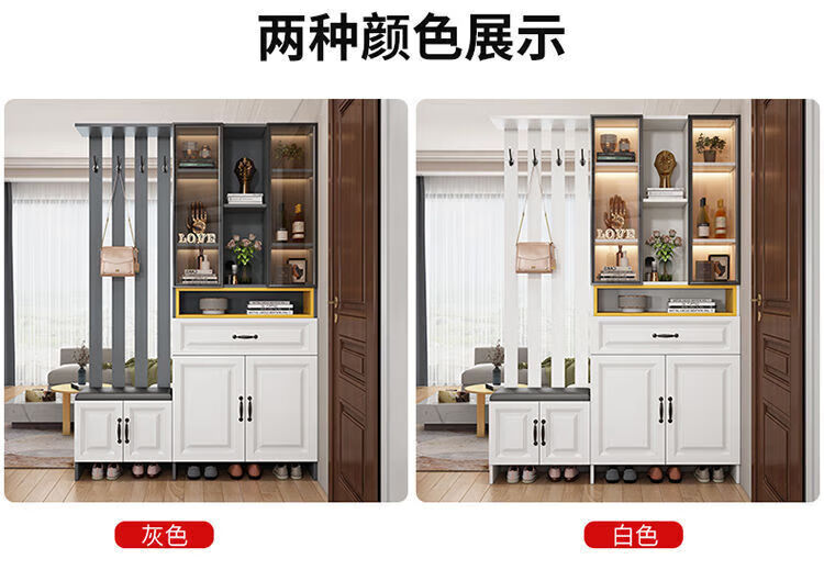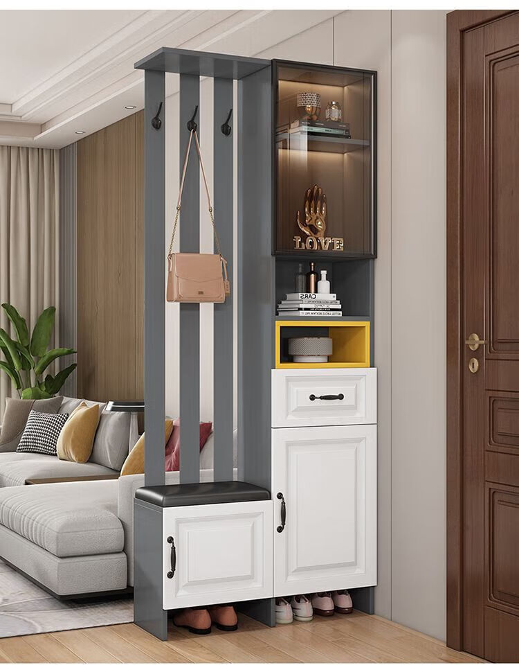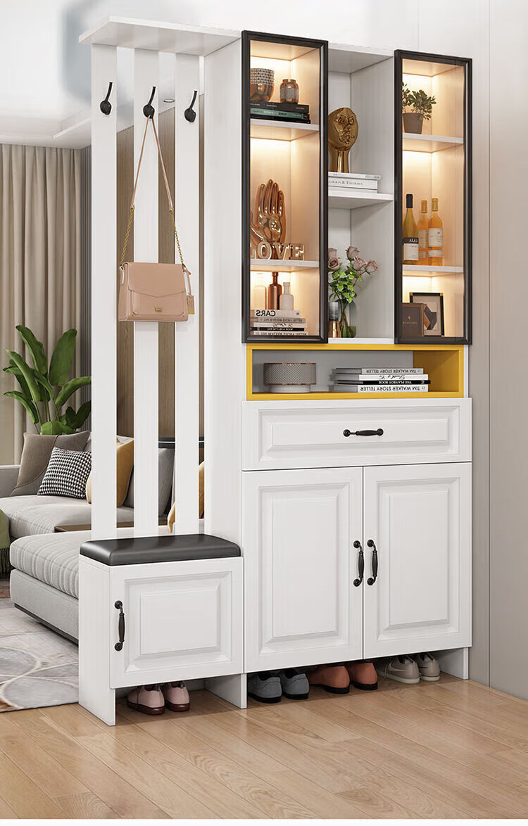 Guangdong Mercure 2026 new European style solid wood entrance hall cabinet simple modern multi-functional shoe cabinet and wine cabinet integrated storage delivery home package installation stool on the right white 40*30*200 with door style