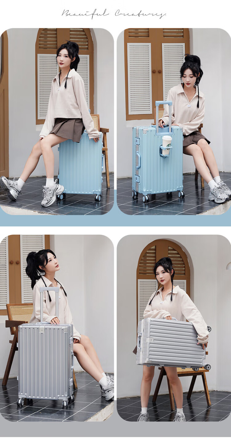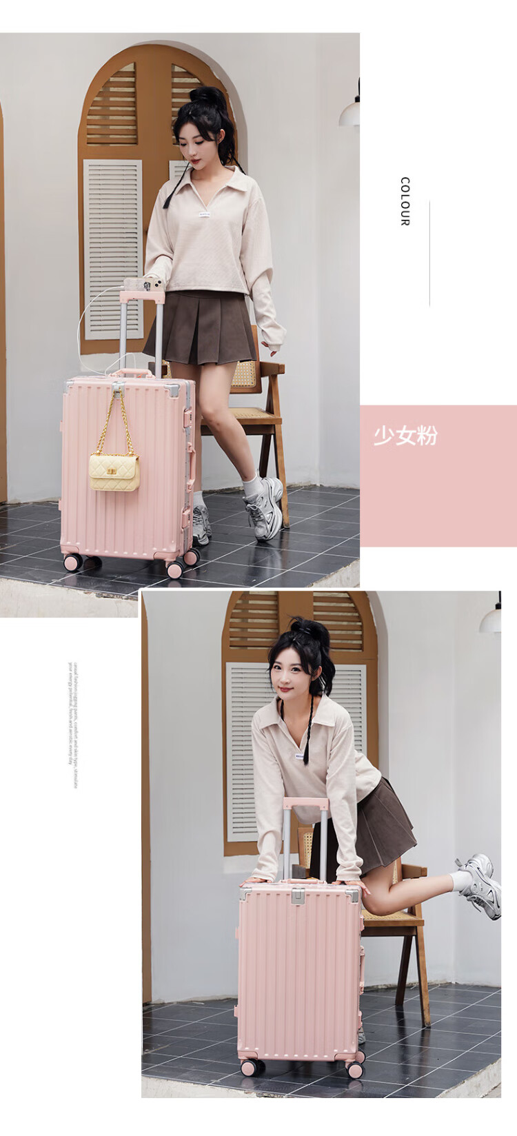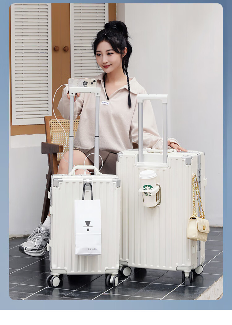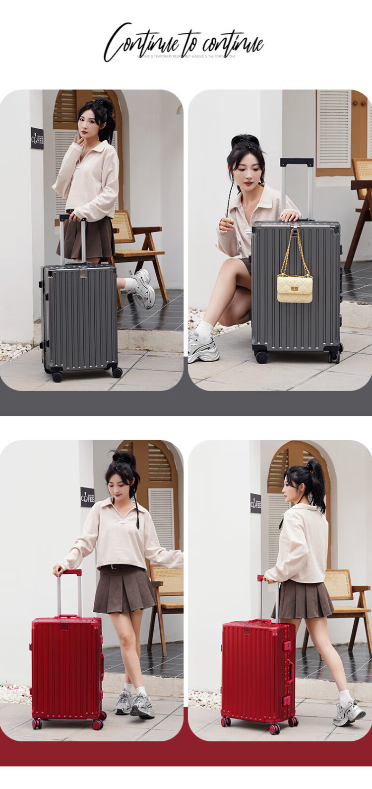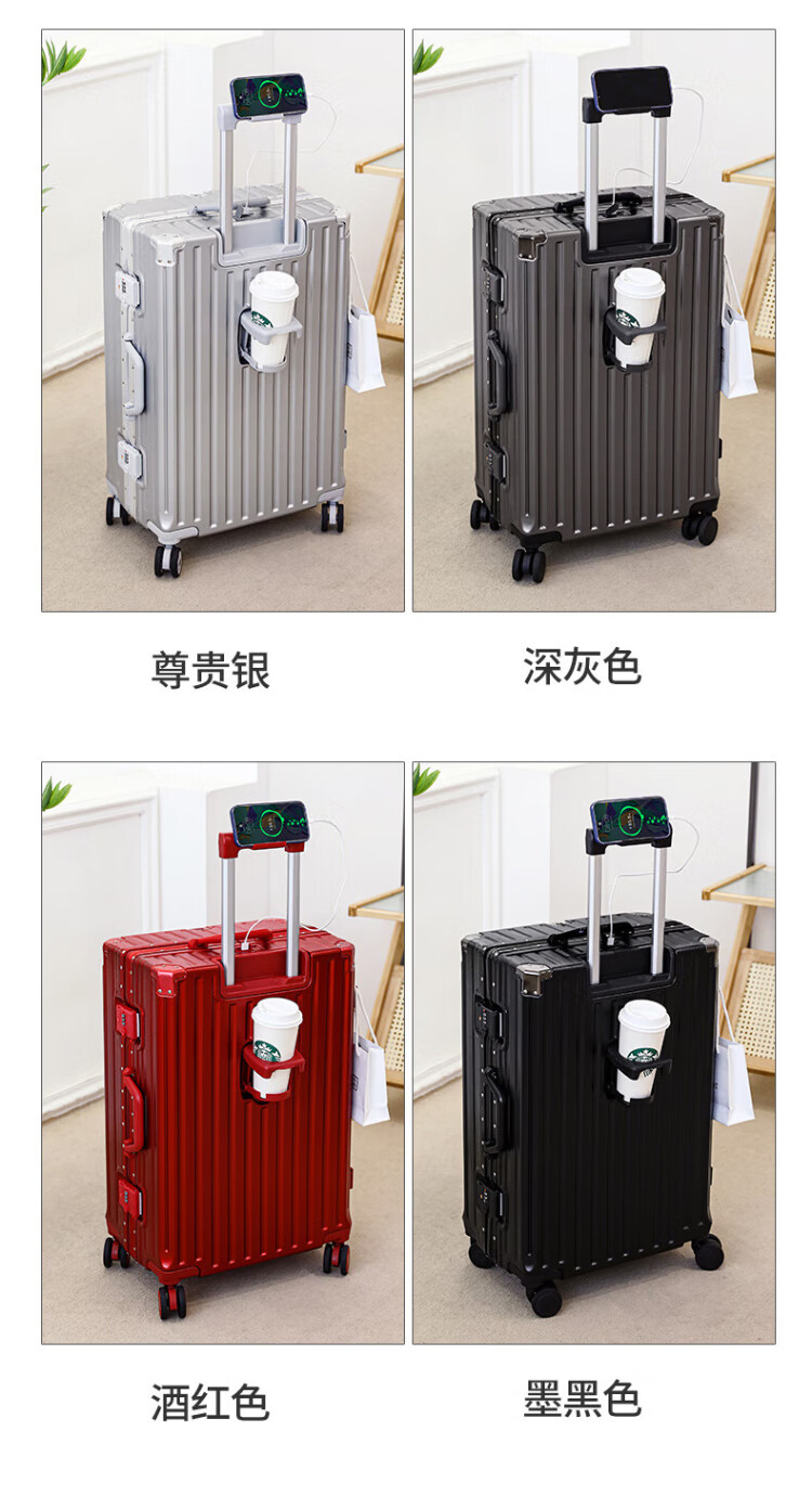 Yi Travel Suitcase Aluminum Frame Women's Multifunctional Trolley Case Charging Suitcase Large Capacity Case Password Case Leather Case Burgundy Buckle Cup Holder + USB + Wet and Dry Separation 20-inch Boarding Case