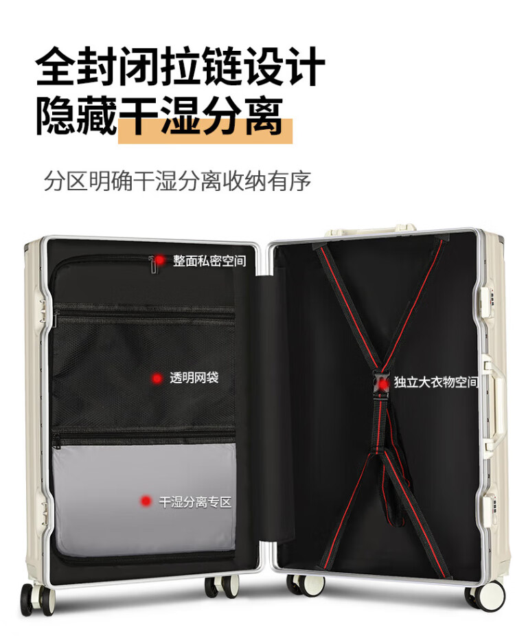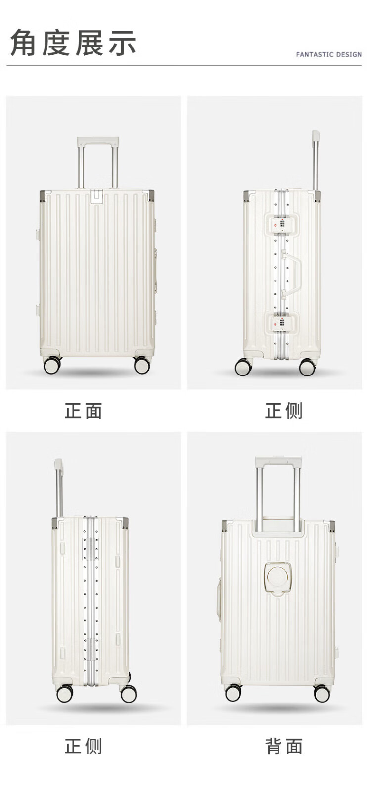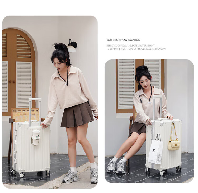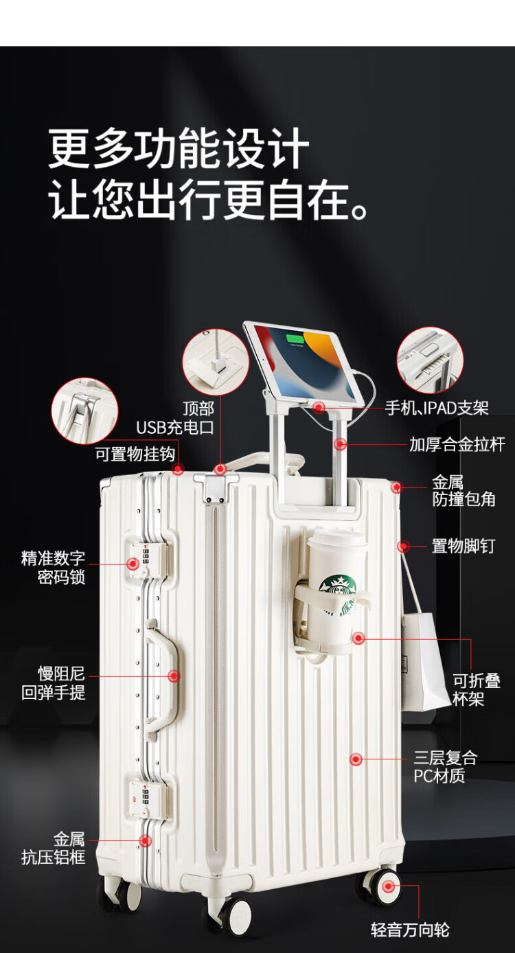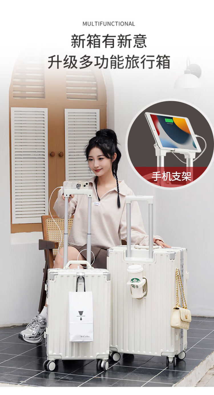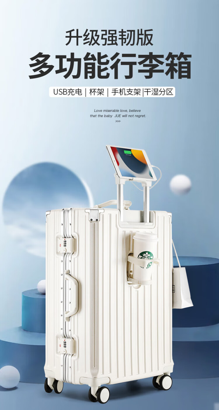 Yi Travel Suitcase Aluminum Frame Women's Multifunctional Trolley Case Charging Suitcase Large Capacity Case Password Case Leather Case Burgundy Buckle Cup Holder + USB + Wet and Dry Separation 20-inch Boarding Case