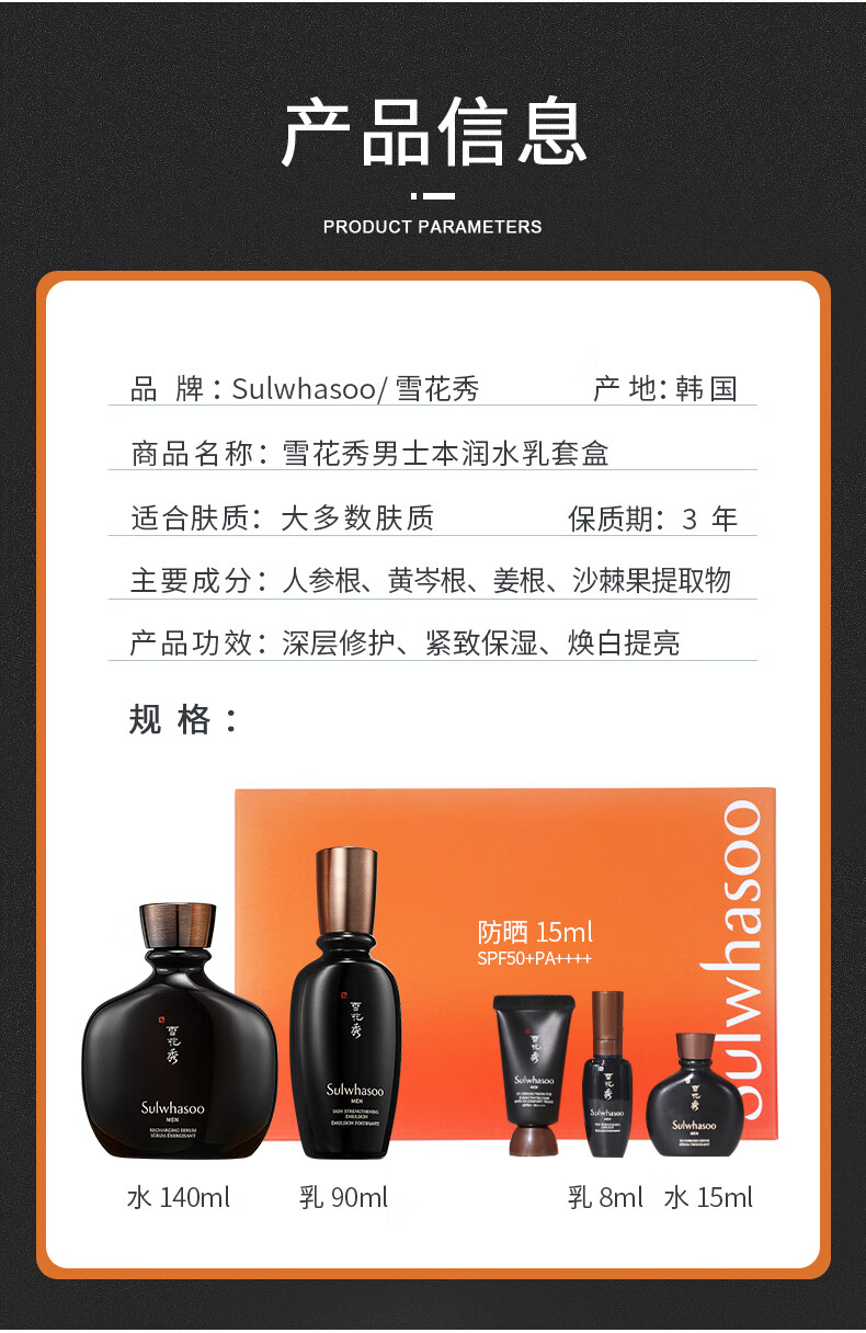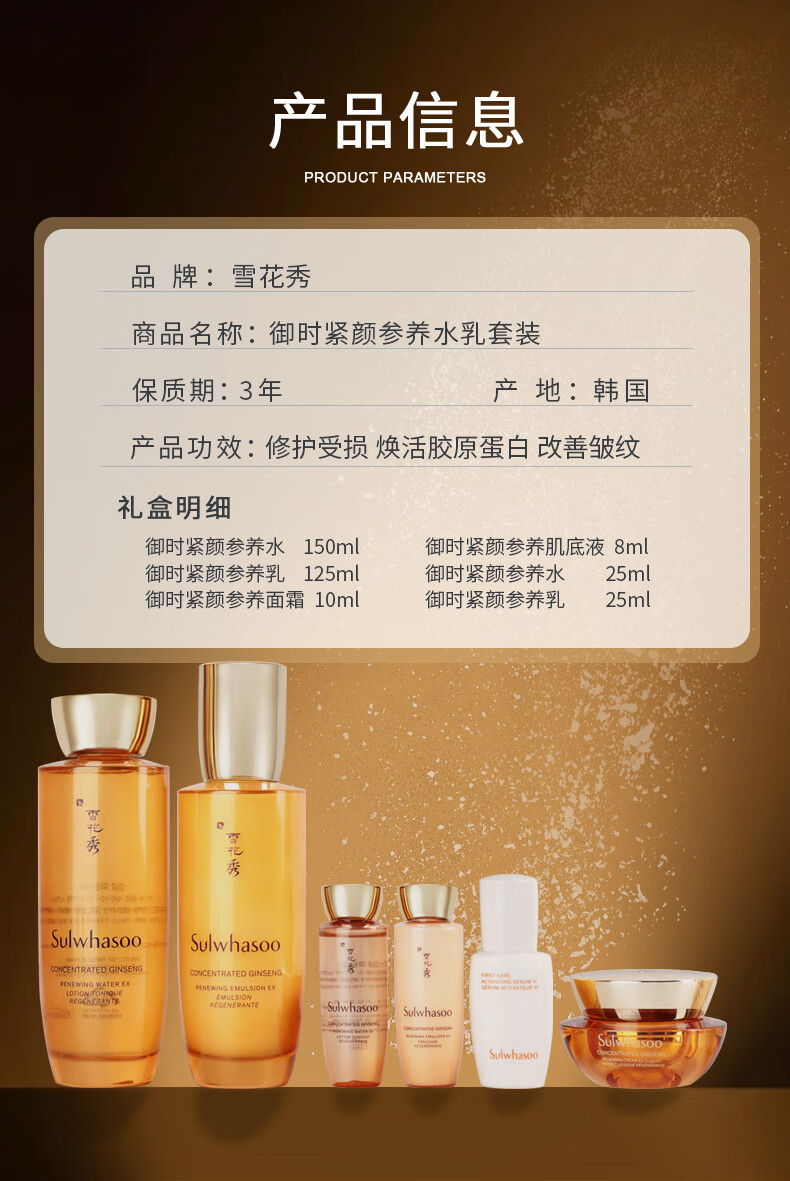 Sulwhasoo nourishing lotion set, new ladies set, ginseng anti-wrinkle firming women's skin care products, Sulwhasoo men's set, Sulwhasoo ladies lotion set with gift bag