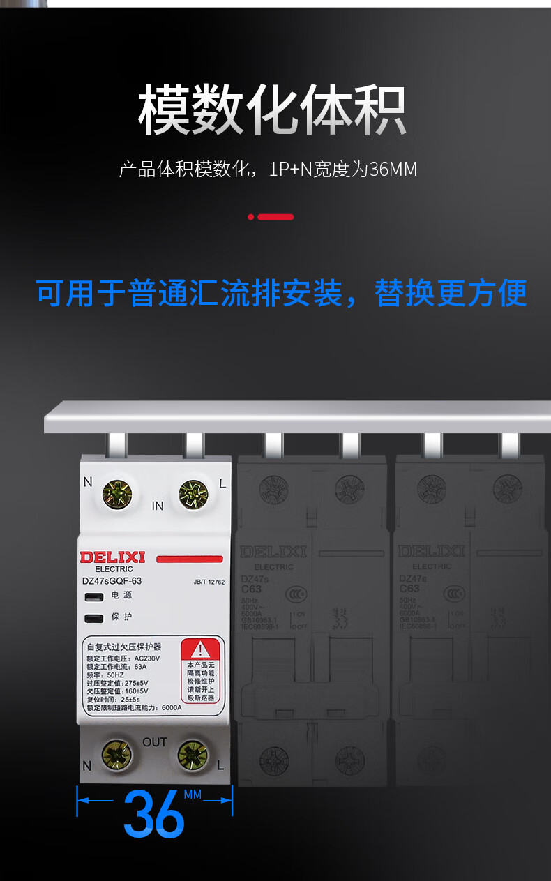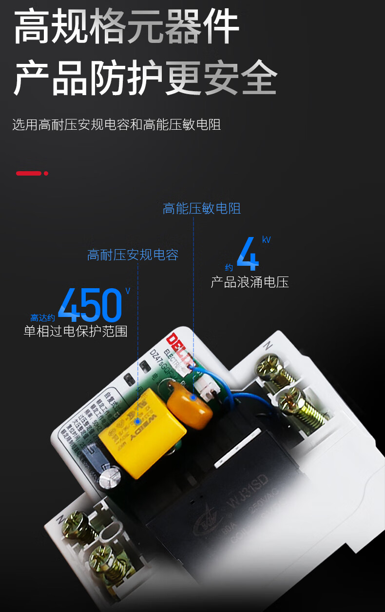 Delixi DZ47GQF overvoltage and undervoltage protector three-phase 32A40A63A self-resetting overvoltage and undervoltage 220V380V 32A
