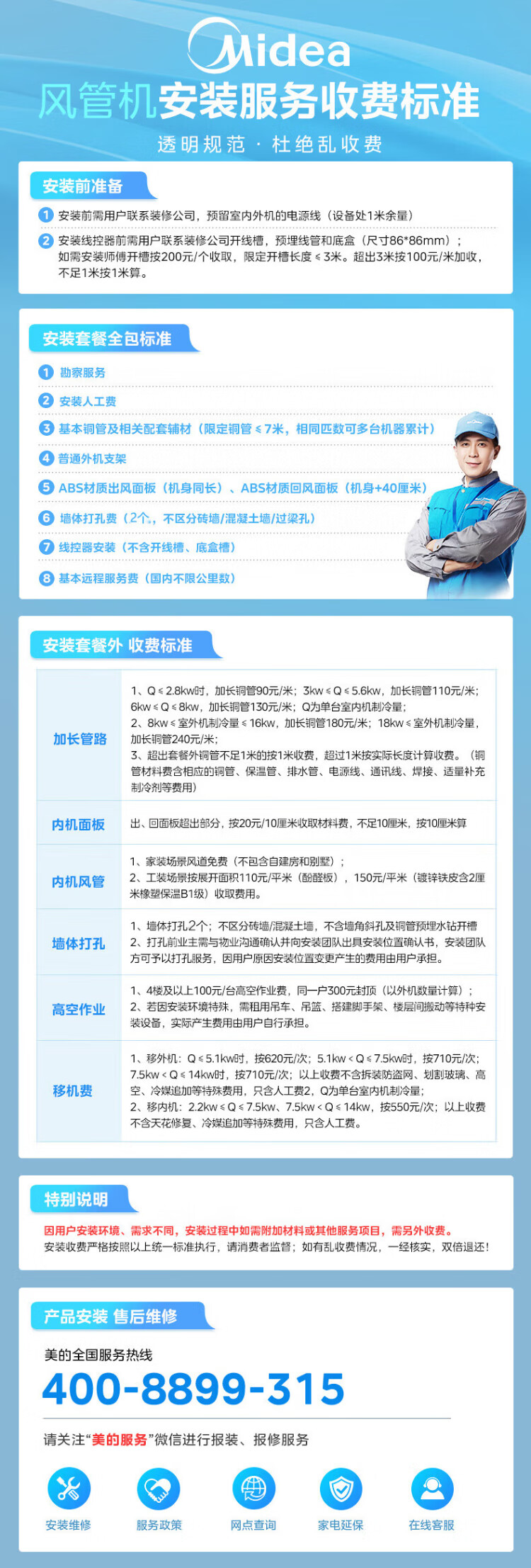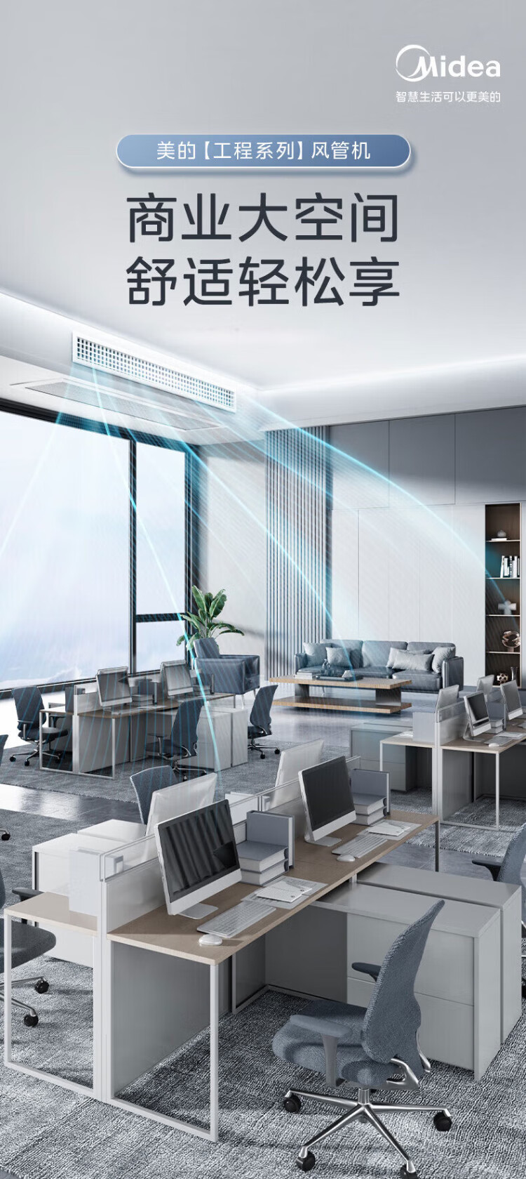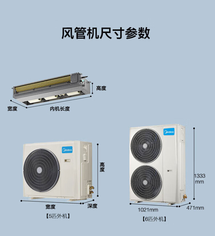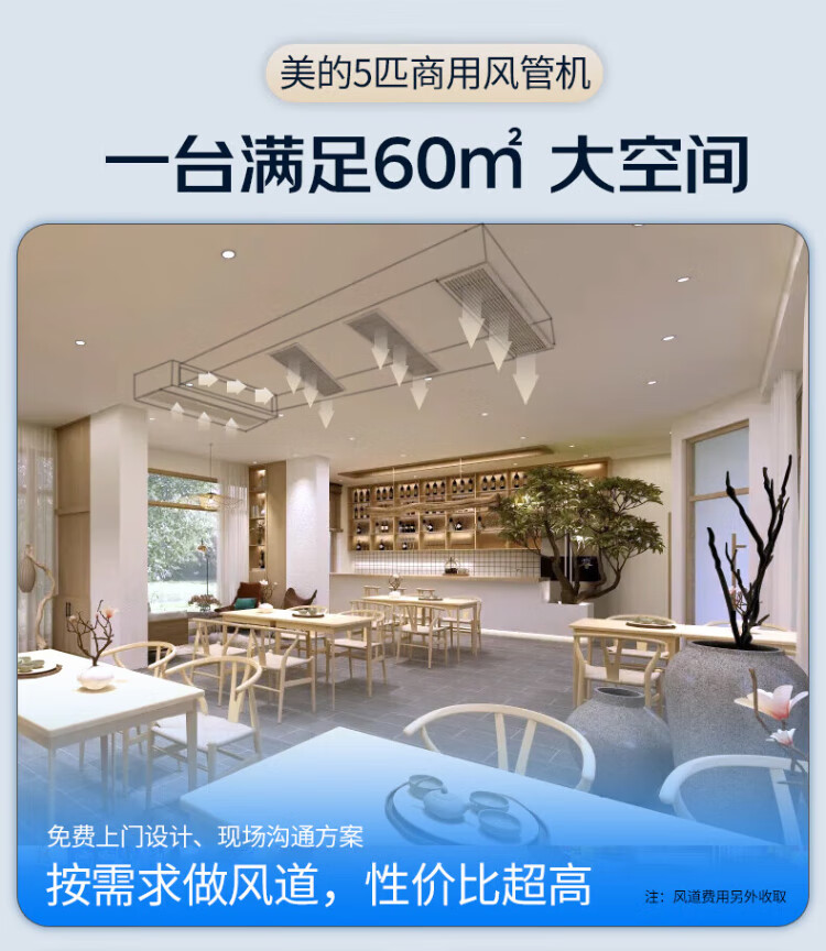 Midea 5 HP duct machine commercial central air conditioner 5p duct machine one-to-one shop milk tea shop pet shop office factory engineering commercial air conditioner 5 HP duct machine three-level energy efficiency installation included