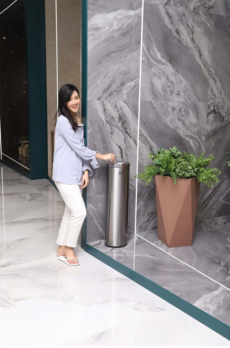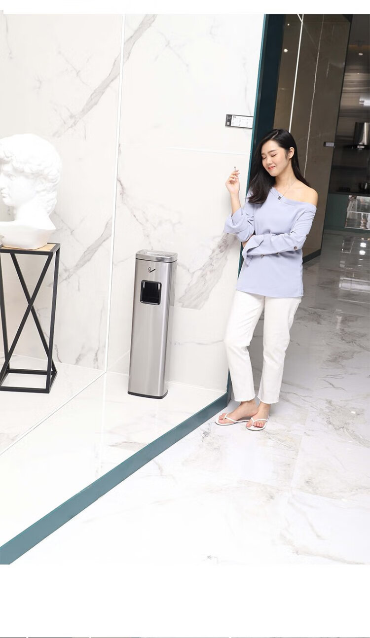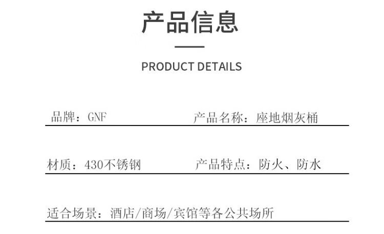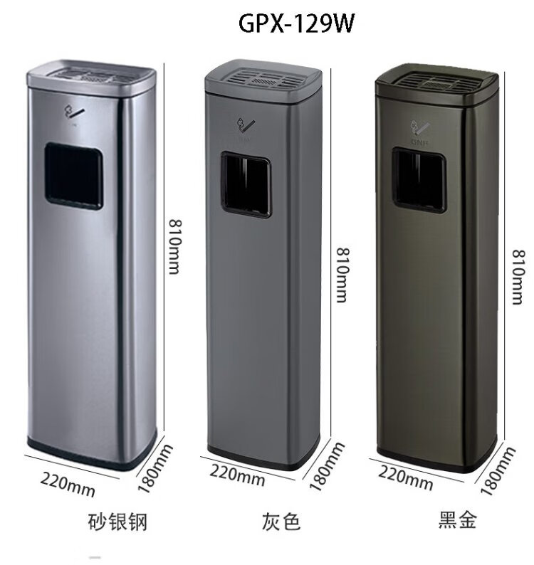 GNF square stainless steel vertical ash column indoor cigarette butt column smoking area elevator entrance ashtray trash can GPX-229L white