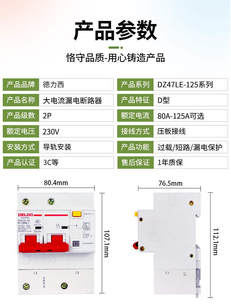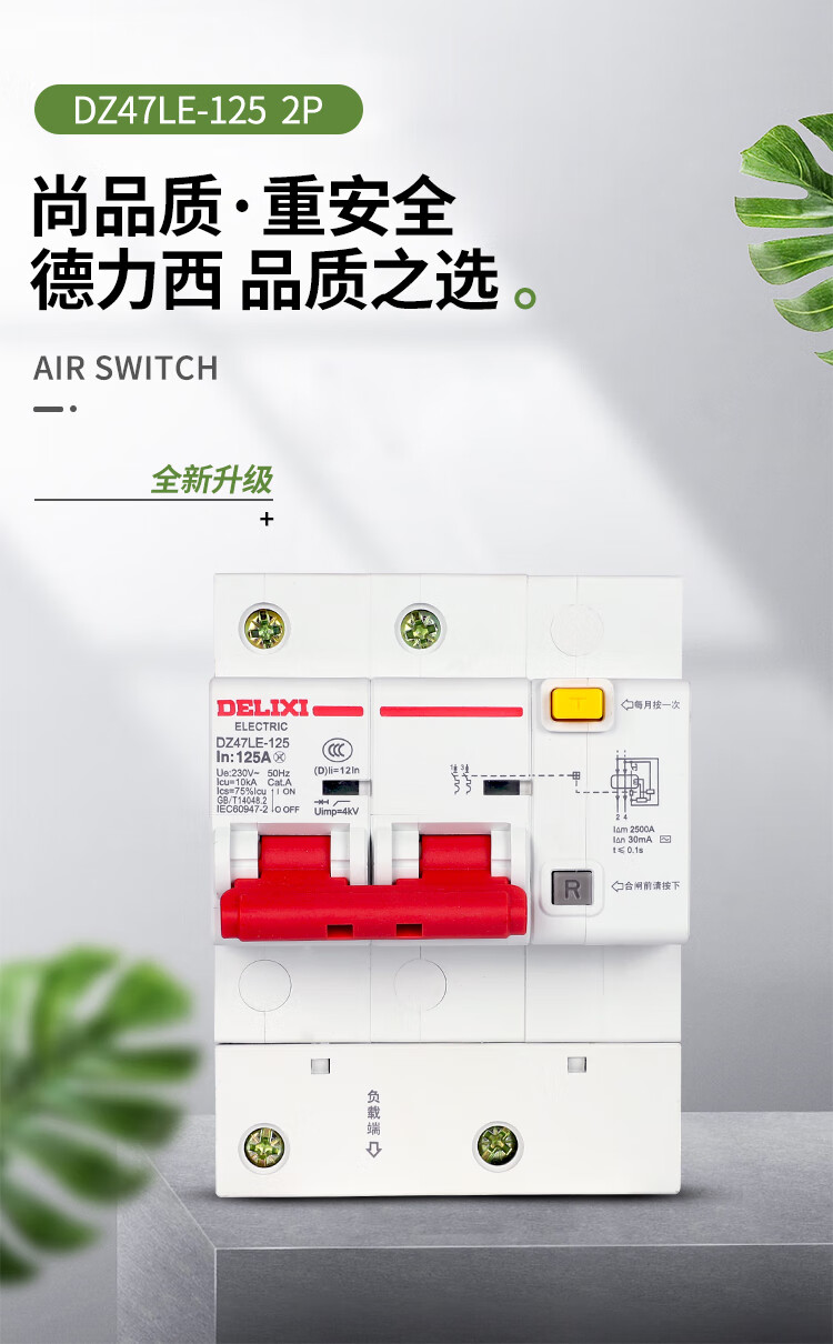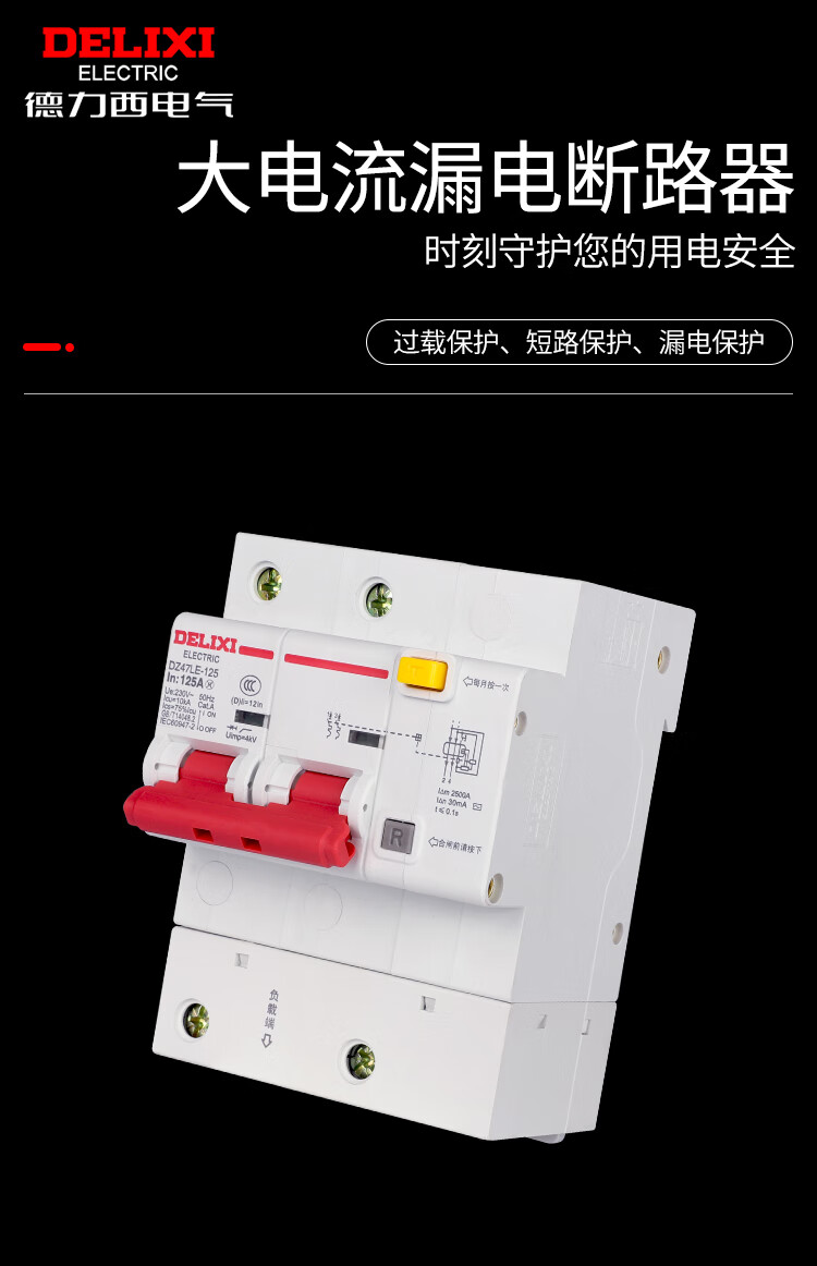 Delixi high current leakage circuit breaker 2P 80A100A 125A leakage protection DZ47LE-125 single and double phase 100A 2P