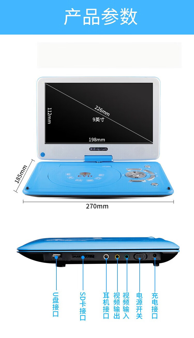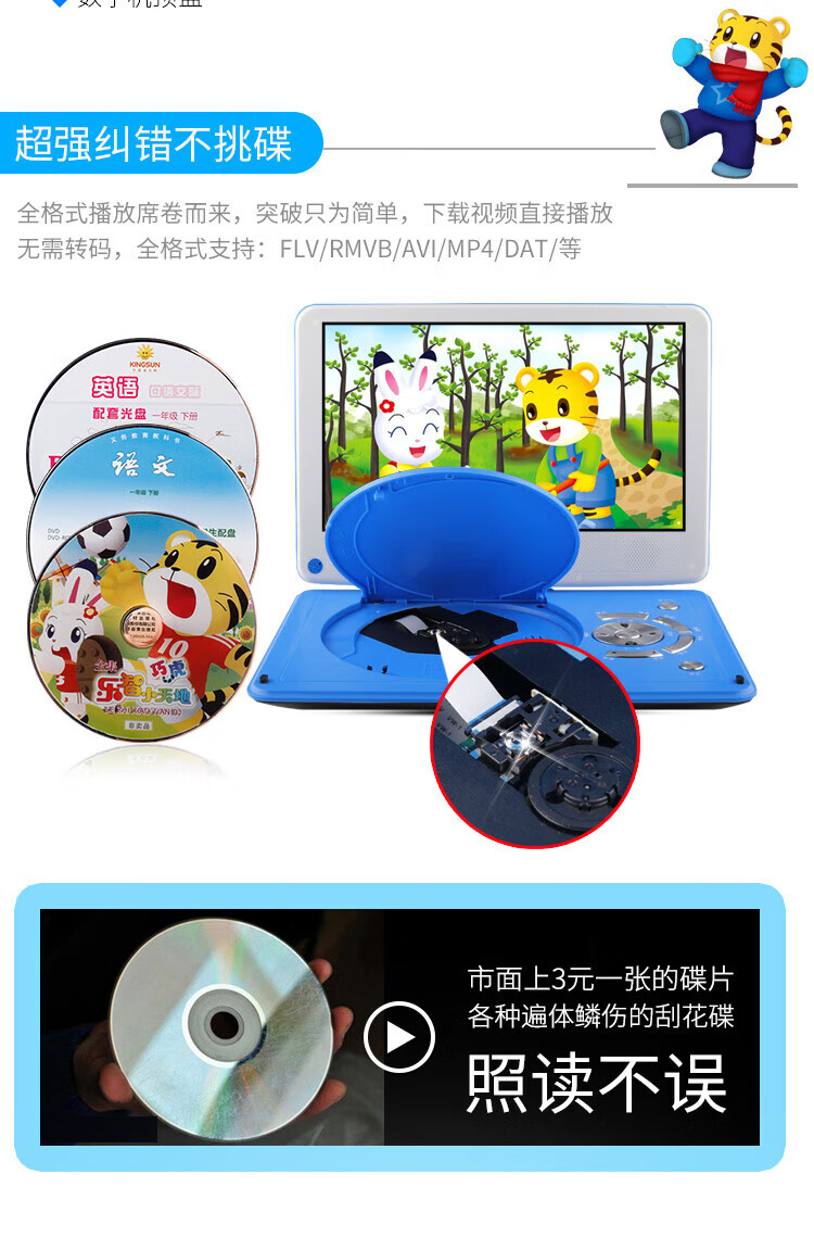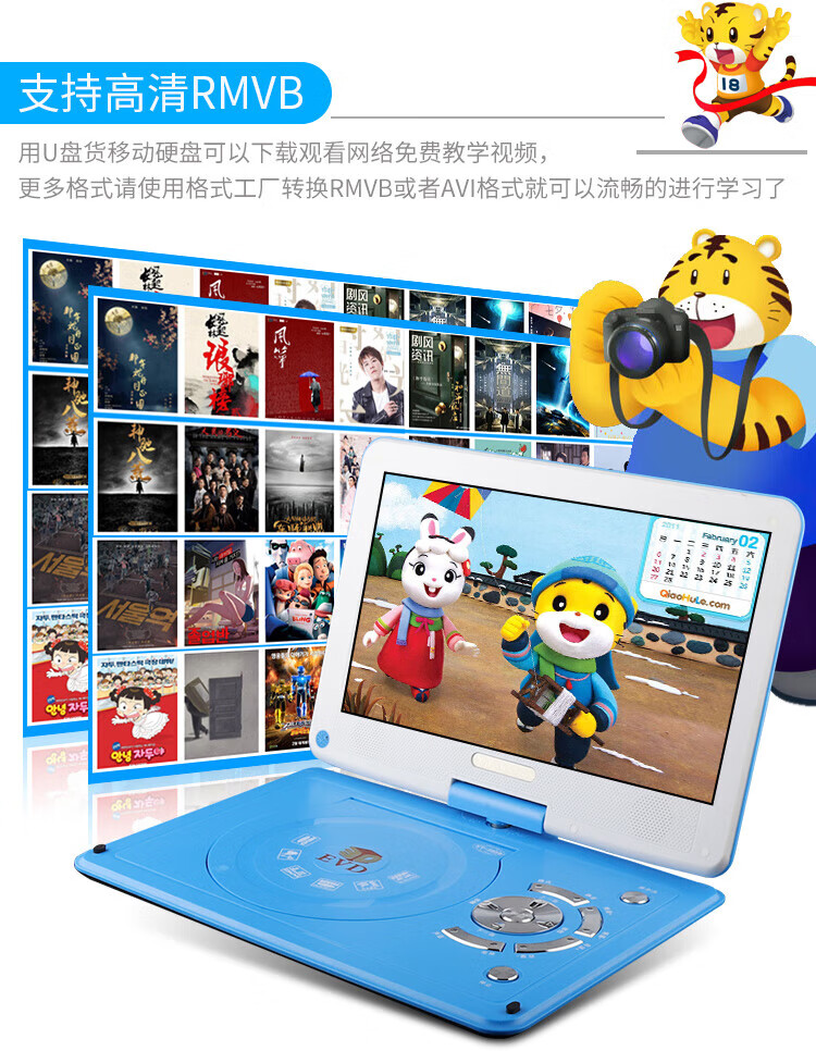 Jinzheng high-definition dvd player mobile DVD disc integrated video player portable mobile TV evd children's small TV vcd player watch cd player 22# network WiFi flagship version standard