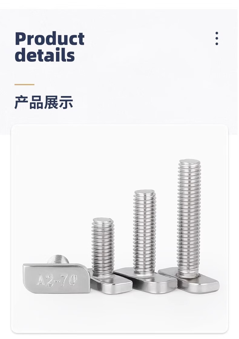 Fengji 304 stainless steel T-shaped screw T-shaped bolt aluminum profile photovoltaic slot square head screw 23 head type M8M10mm M8*25 2 pieces