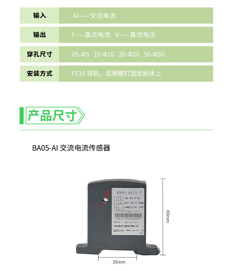 BA20 intelligent current sensor DC signal output conversion module BA20-AI/I