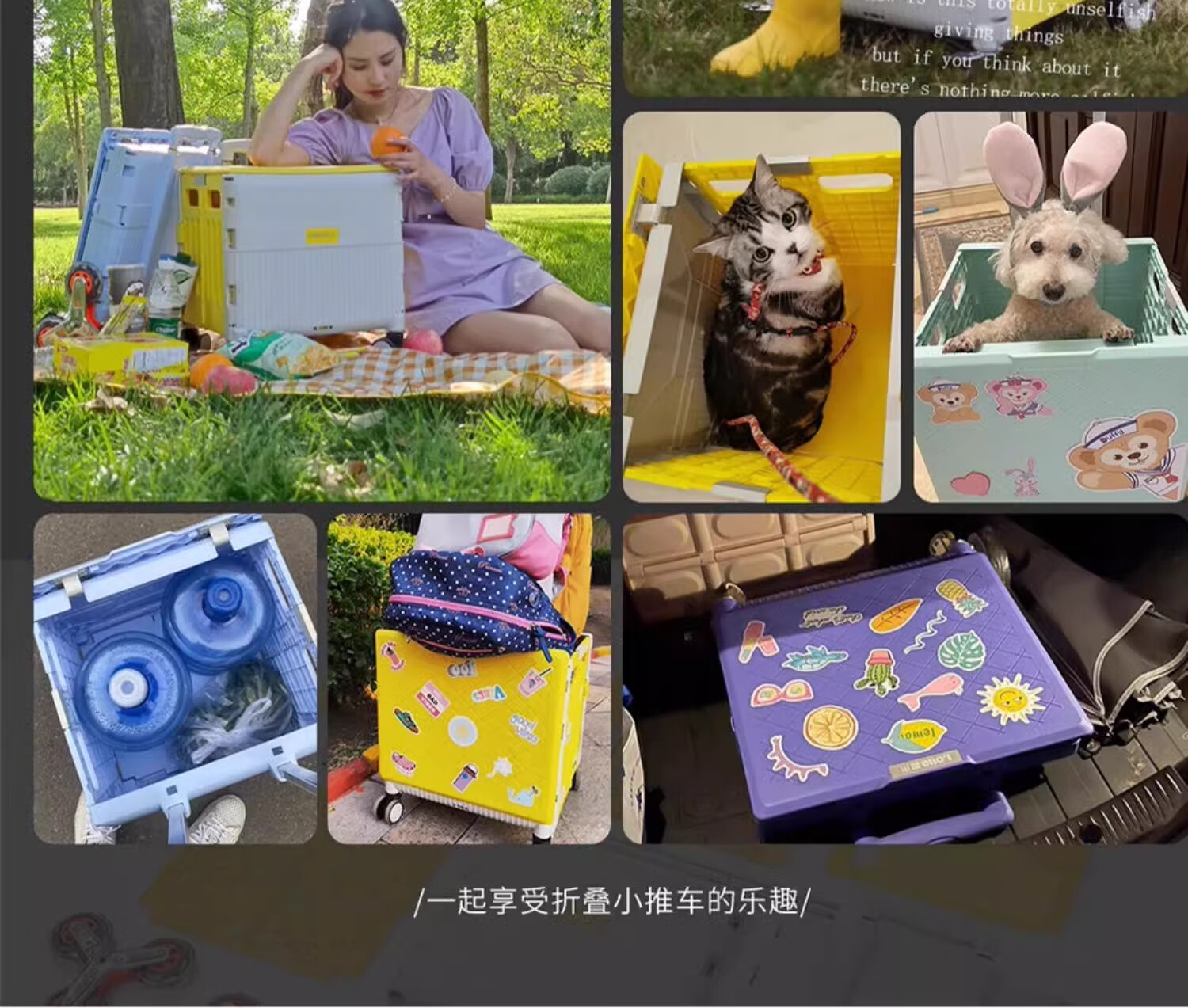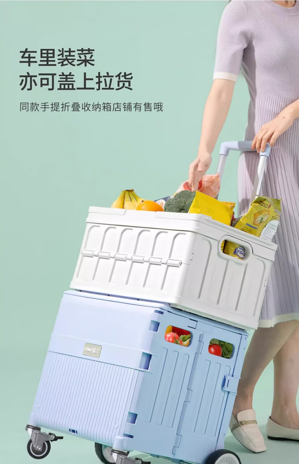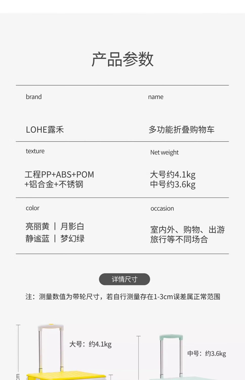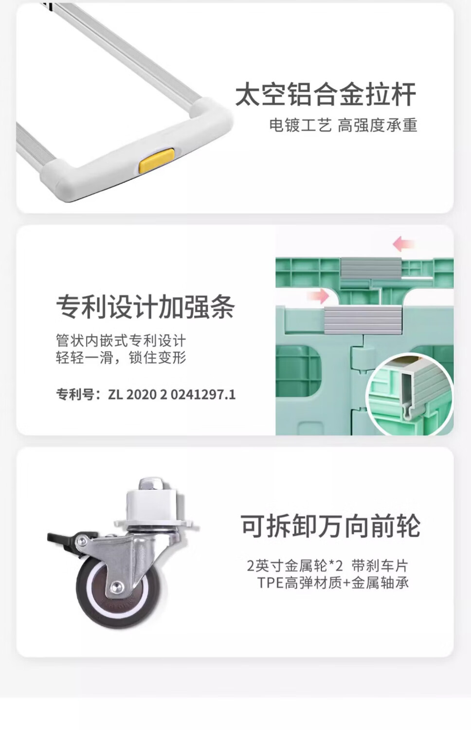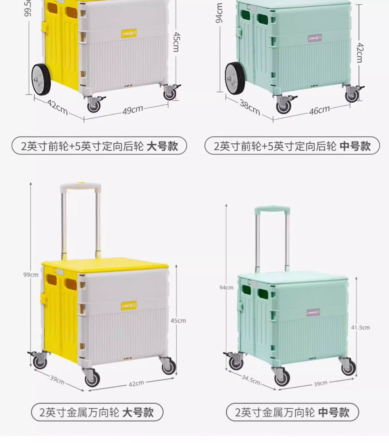 Luhe Shopping Cart Folding Outdoor Camping Cart Picnic Car Camp Trailer Trolley Cart Home Grocery Cart 42*49*45cm Large Directional Wheel Dream Green