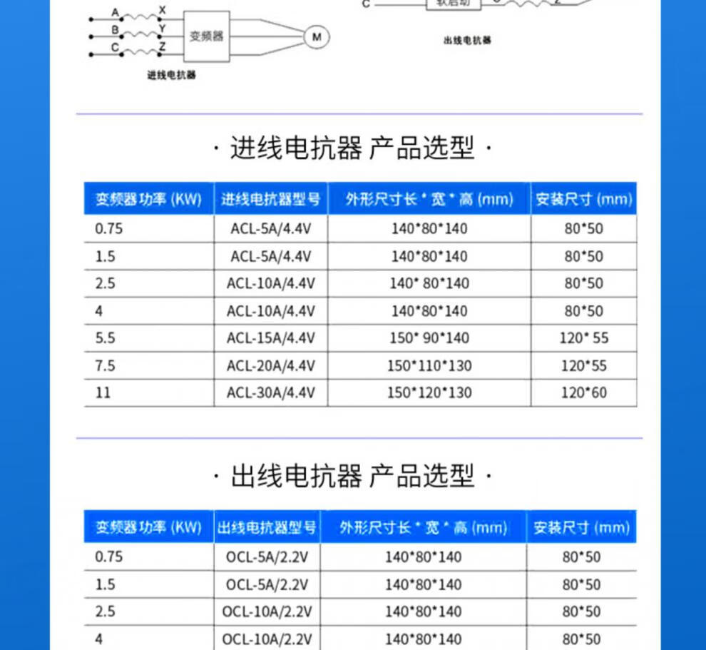 Frequency converter reactor input and output DC filter three-phase reactor 90KW75KW315KW400KW Color classification 45KW-125A Aluminum input (incoming line)