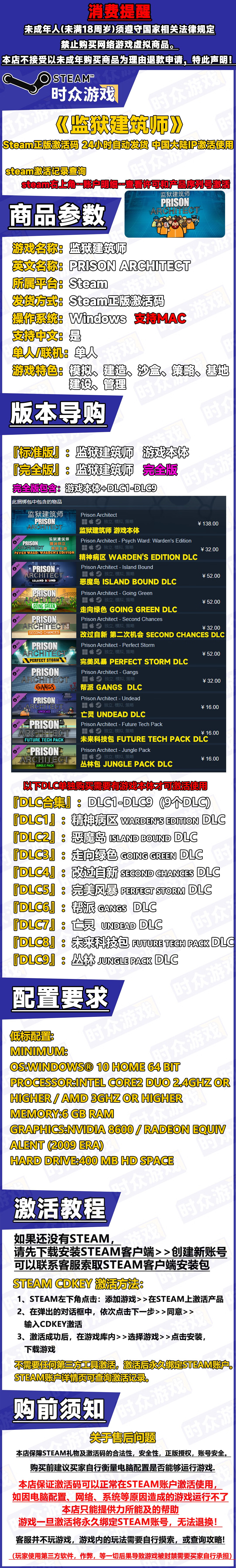 Steam genuine game Prison Architect PC terminal KEY activation code DLC available for sale Prison Architect game body