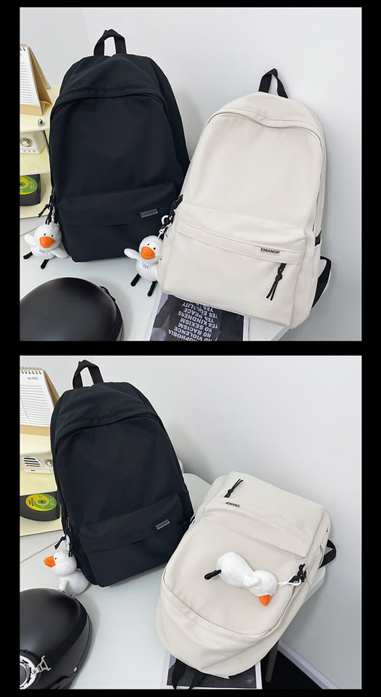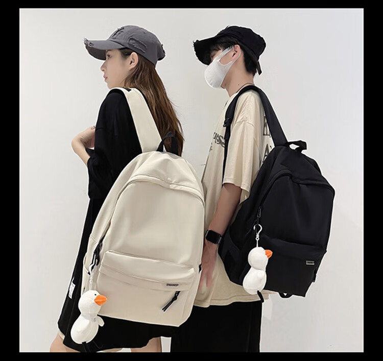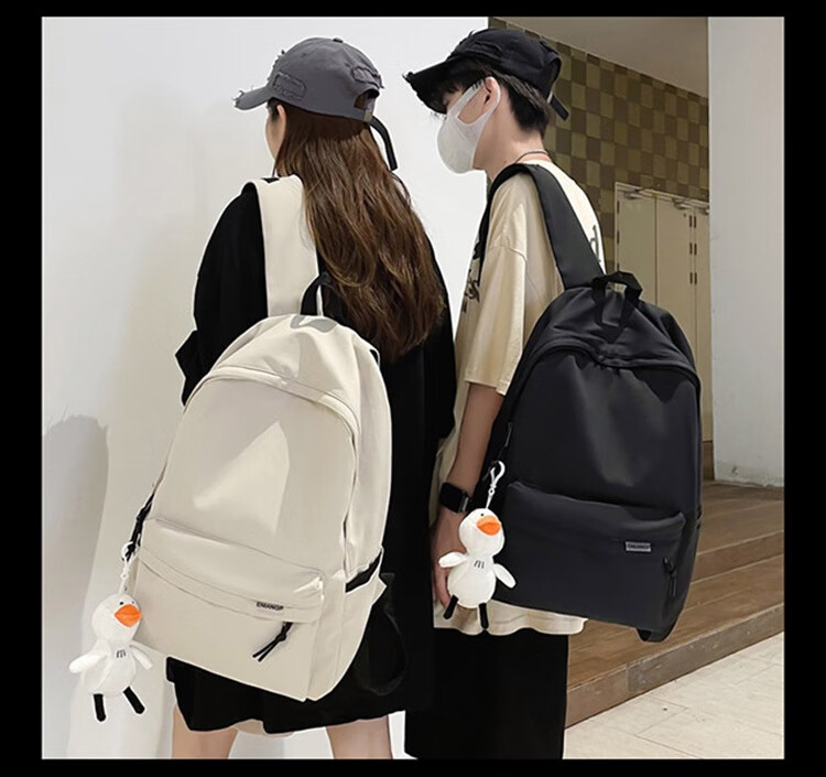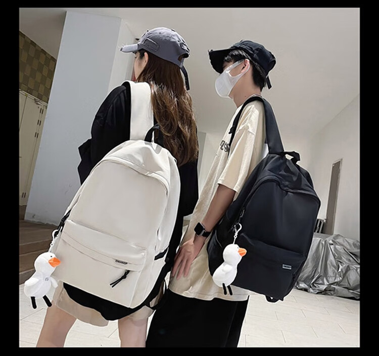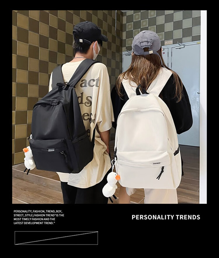 Pengjing Simple School Bag Men's Backpack Junior High School Women's Backpack Good-looking Large Capacity High School College Student Sports Computer Bag Simple School Bag-Simple White Single Bag