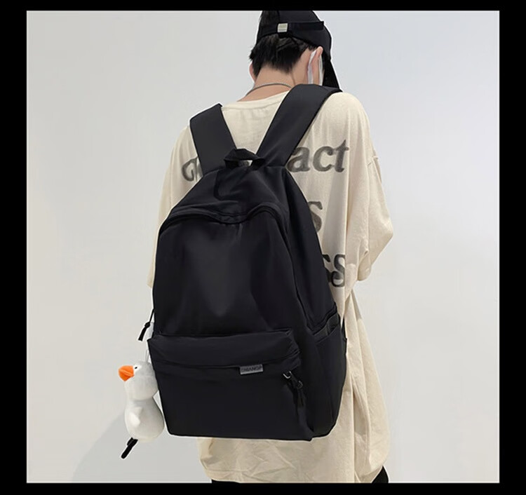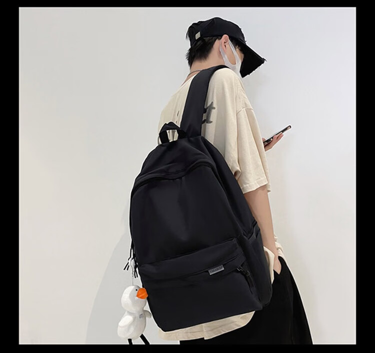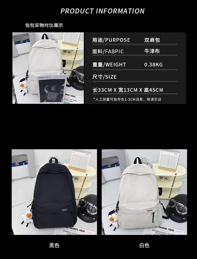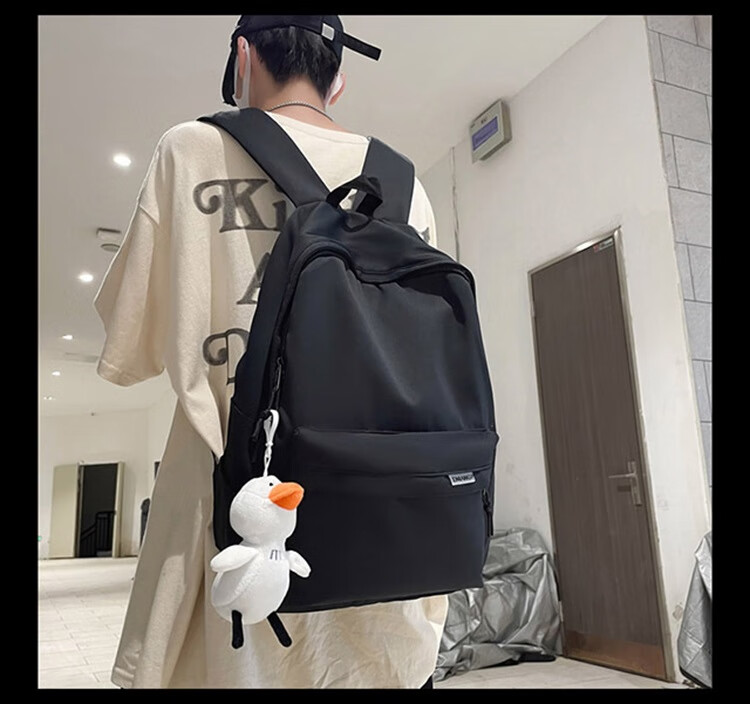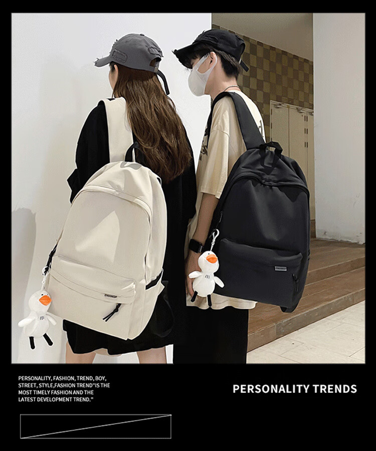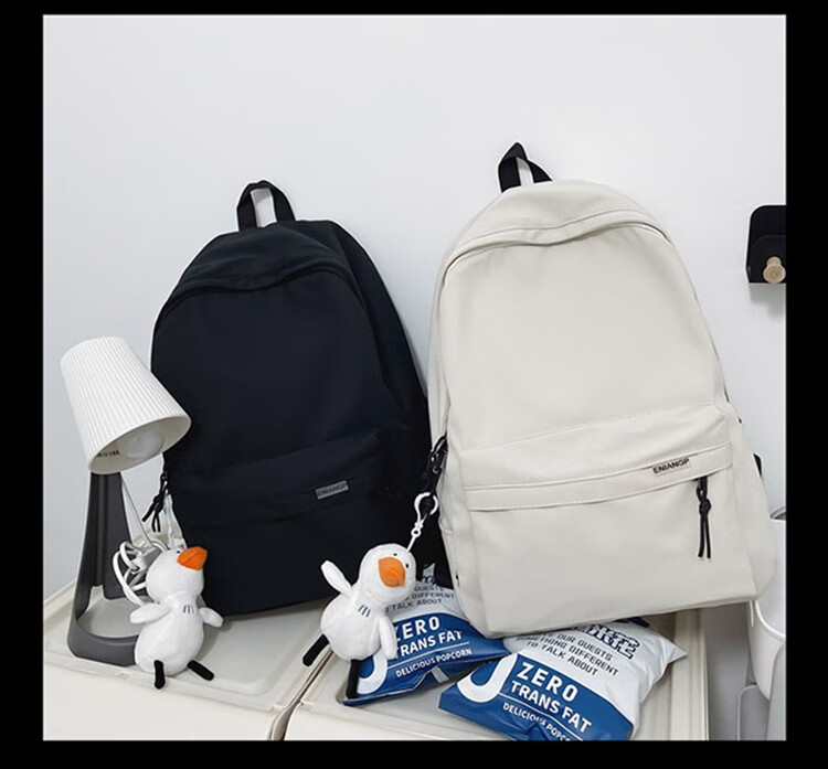 Pengjing Simple School Bag Men's Backpack Junior High School Women's Backpack Good-looking Large Capacity High School College Student Sports Computer Bag Simple School Bag-Simple White Single Bag