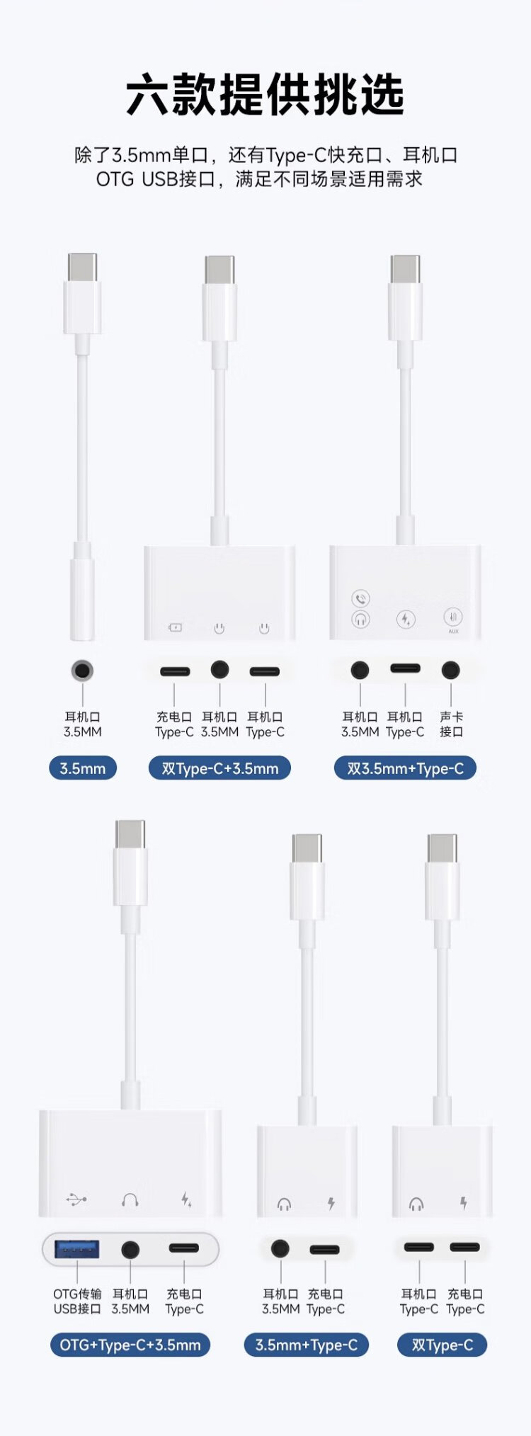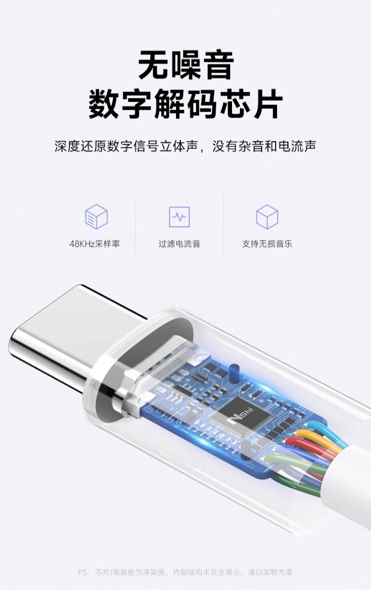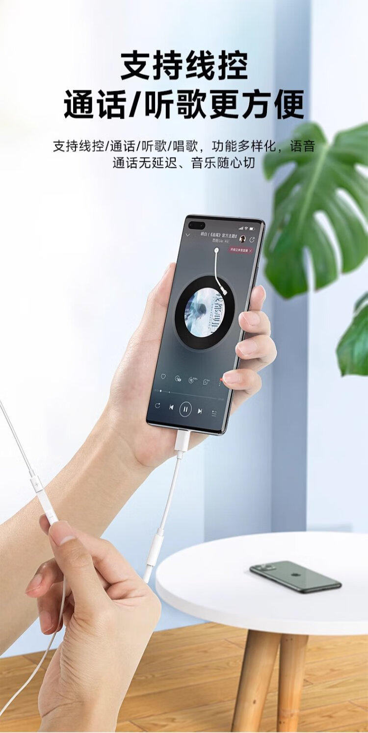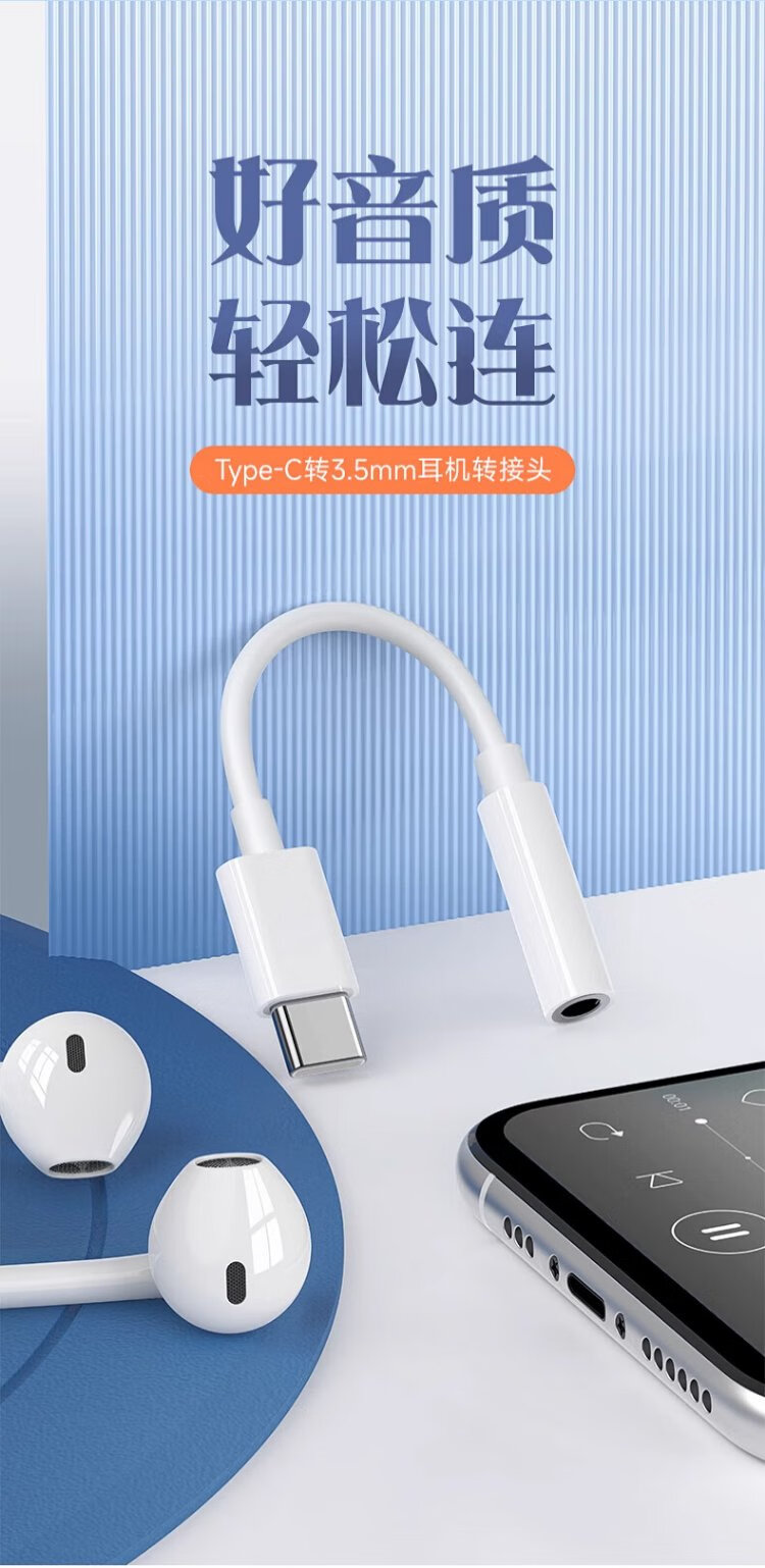 That thing Type-c headphone adapter 3.5mm Android tpyec interface usb converter typc wired tpc audio round hole suitable for Huawei vivo Xiaomi Apple 15 mobile phone three-in-one interface TypeC+TypeC+3.5mm