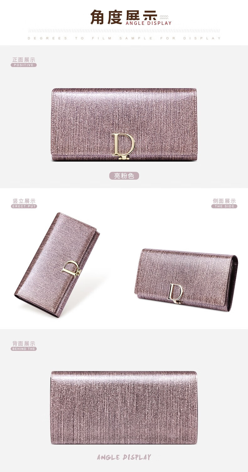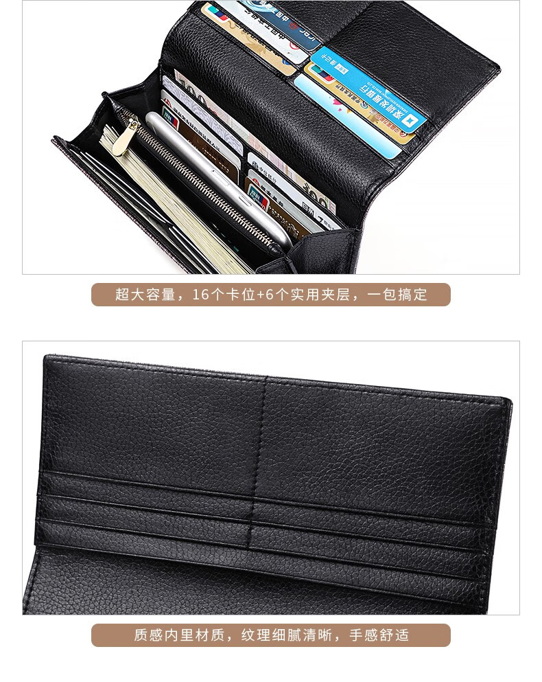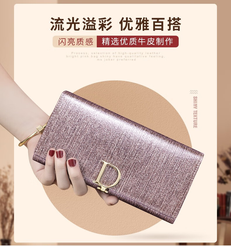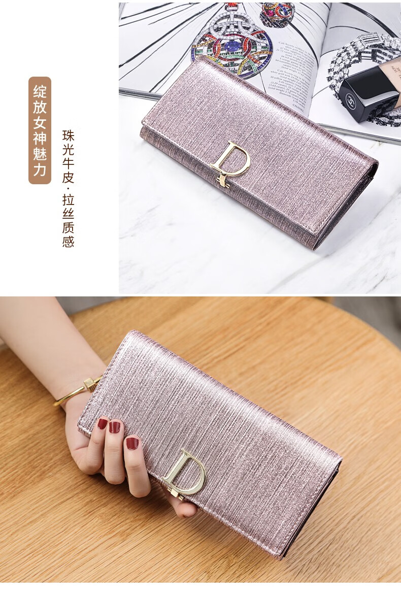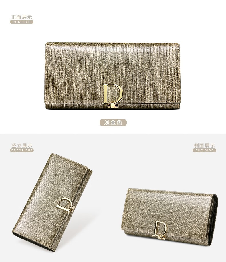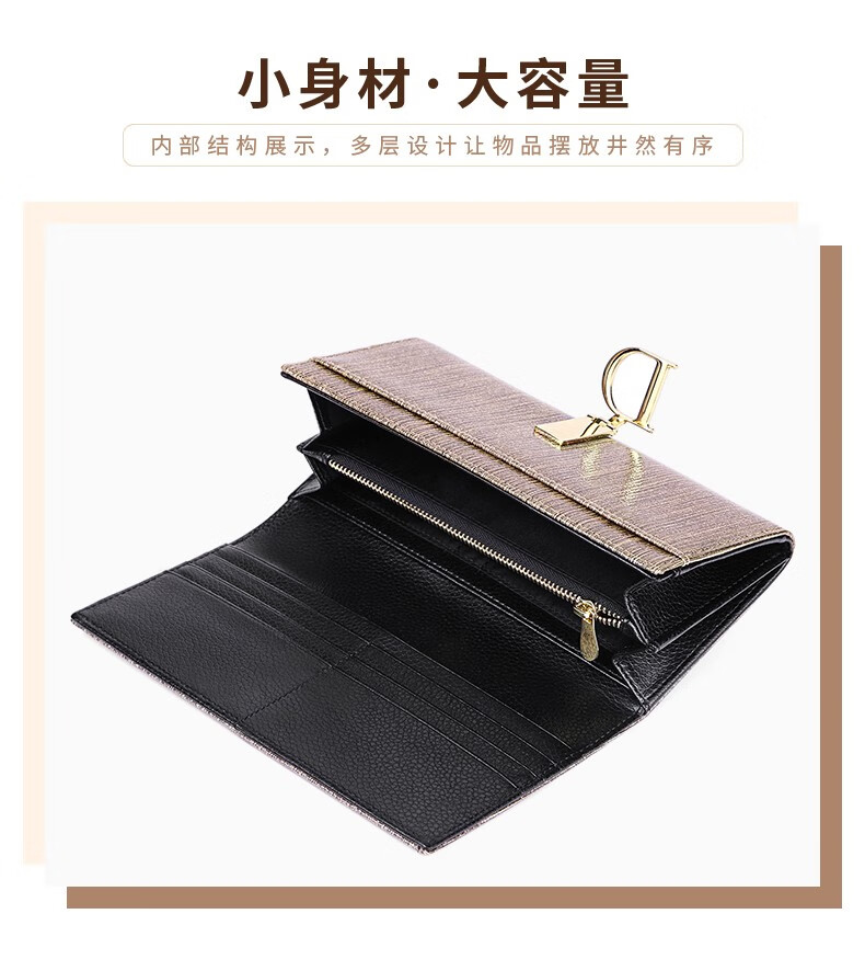 Kangaroo (KANGAROO) 2024 New Fashion Women's Wallet Women's Long Large Capacity Card Slot Genuine Leather Women's Hand Wallet Clutch Bright Gold-Anti-Theft Brush