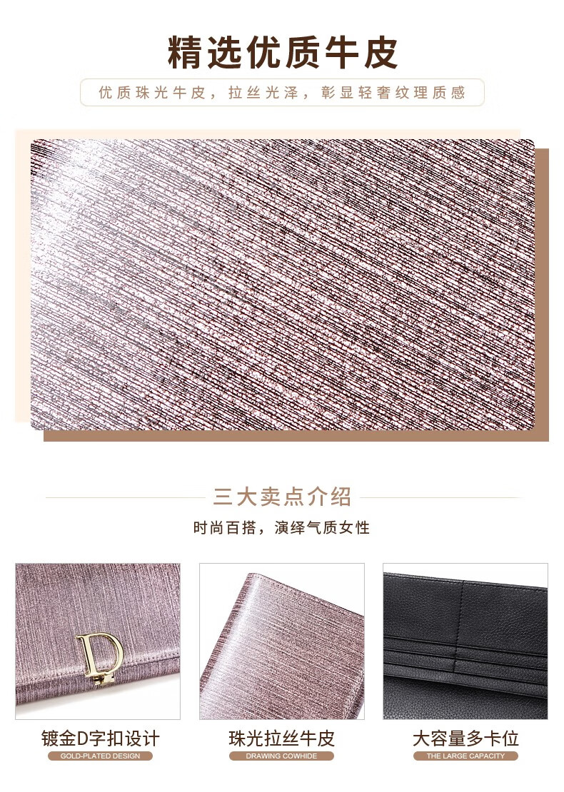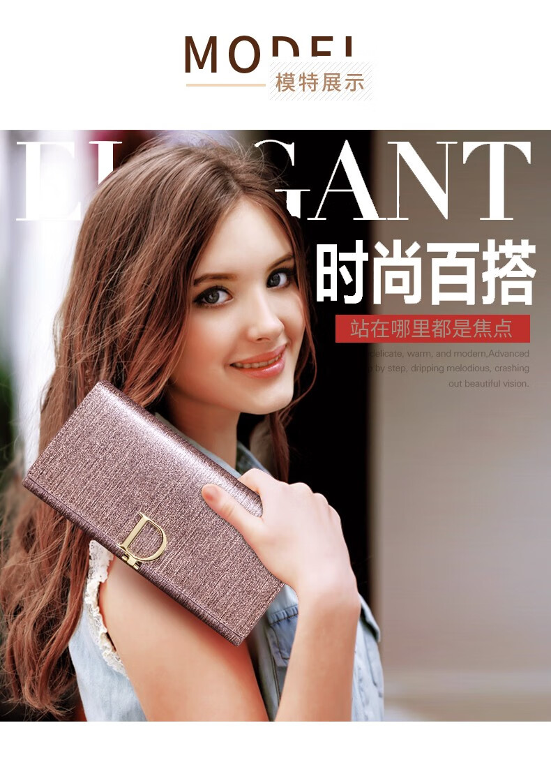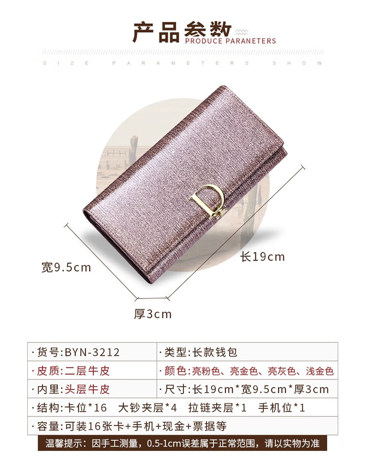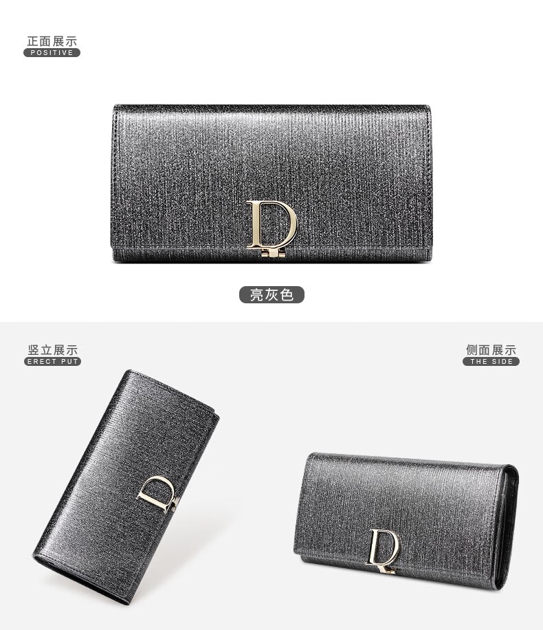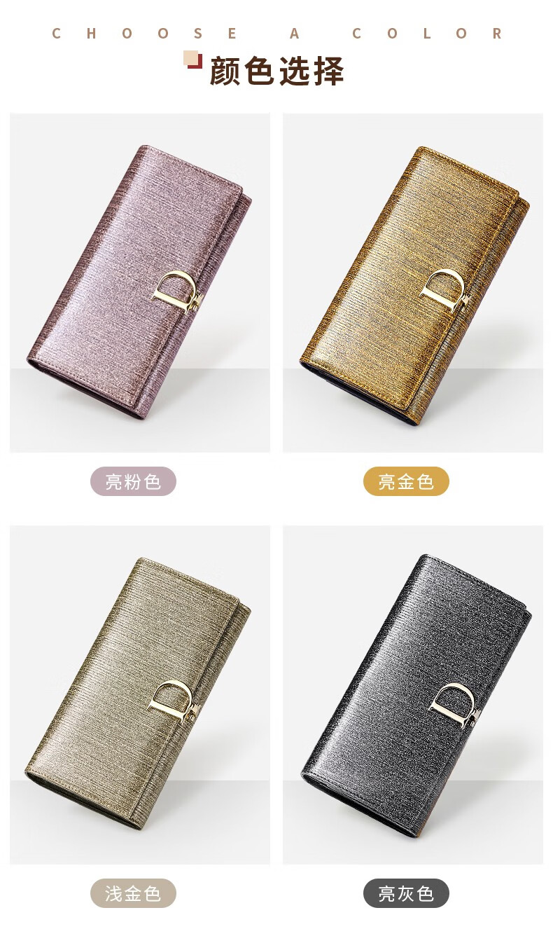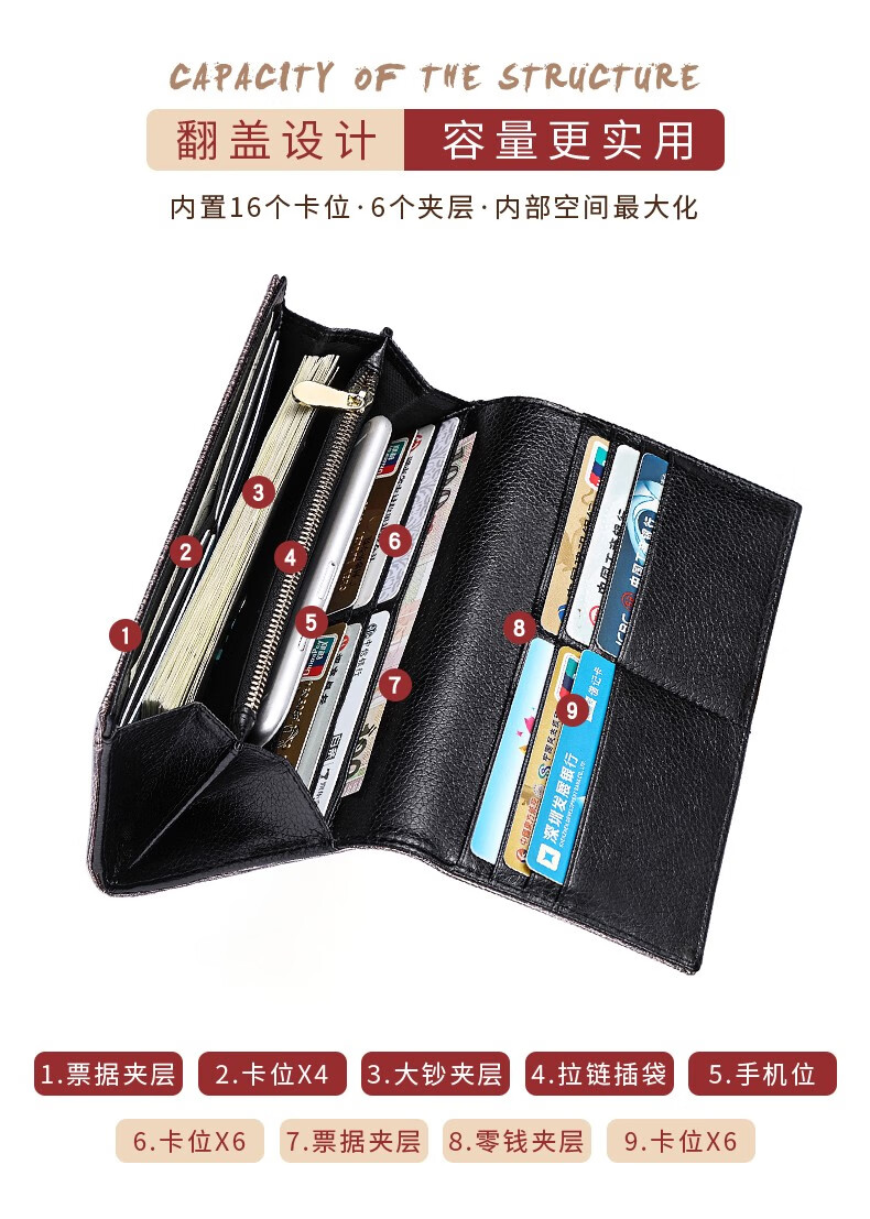 Kangaroo (KANGAROO) 2024 New Fashion Women's Wallet Women's Long Large Capacity Card Slot Genuine Leather Women's Hand Wallet Clutch Bright Gold-Anti-Theft Brush