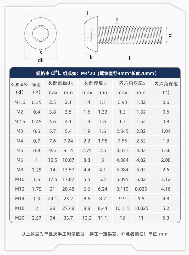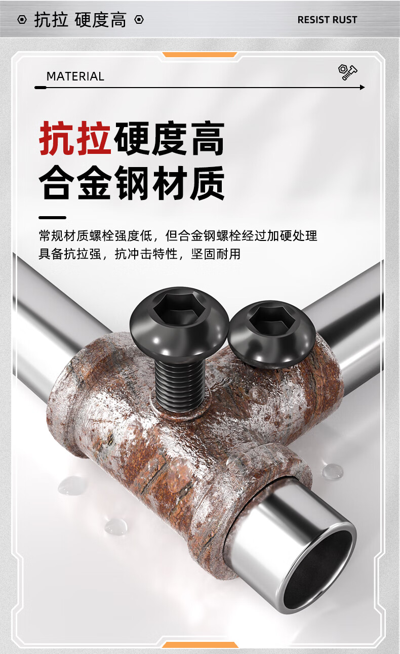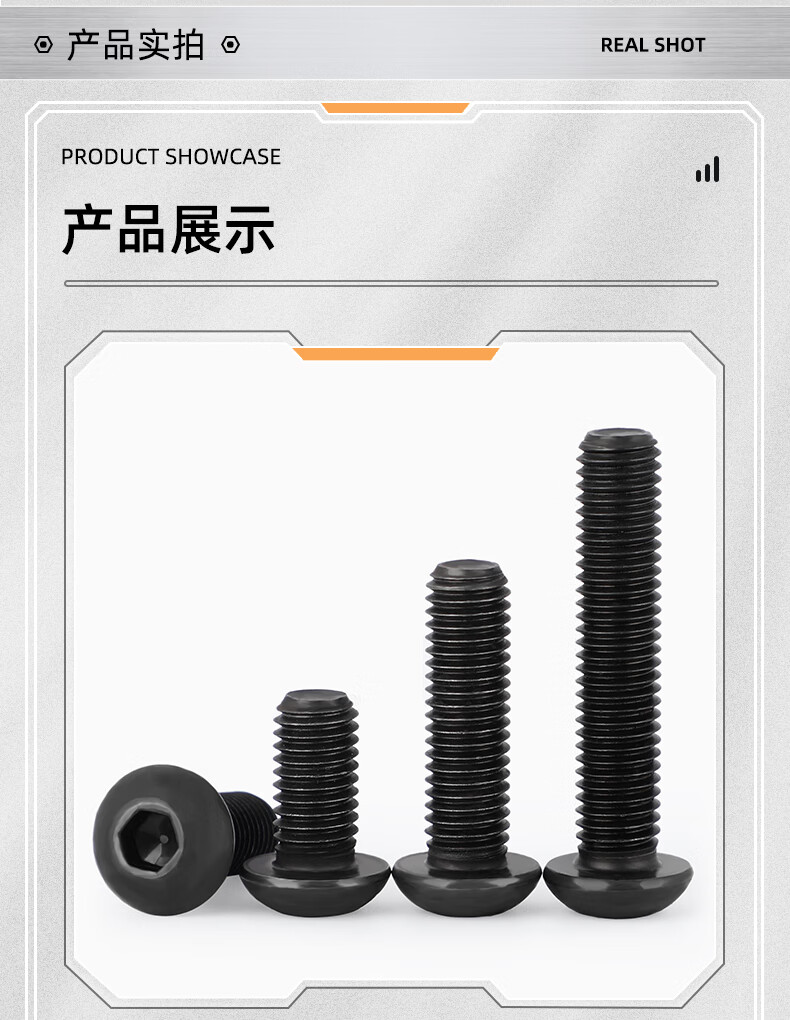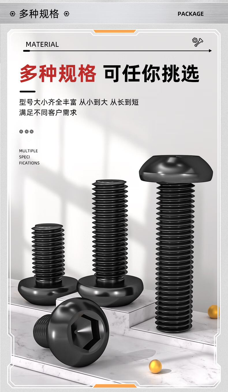 Fengji grade 12.9 high-strength pan head semi-round head hexagonal screw round head cup screw bolt M3M4M5M6M8M10 M5*12 50 pieces