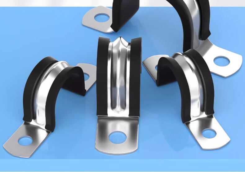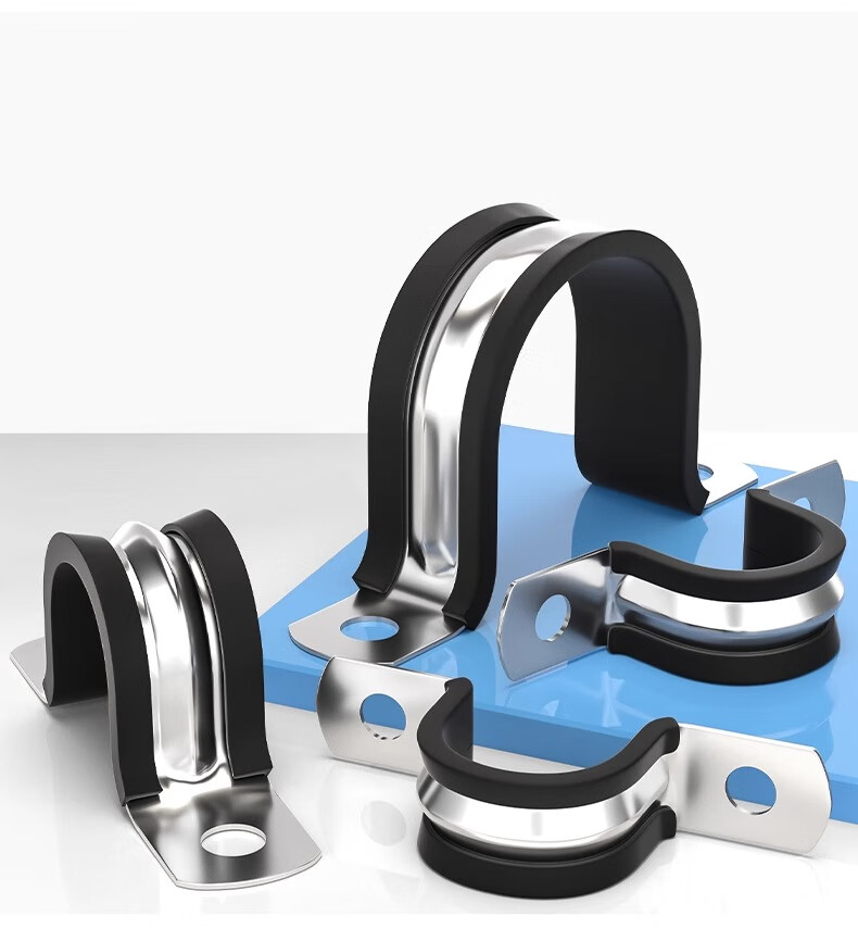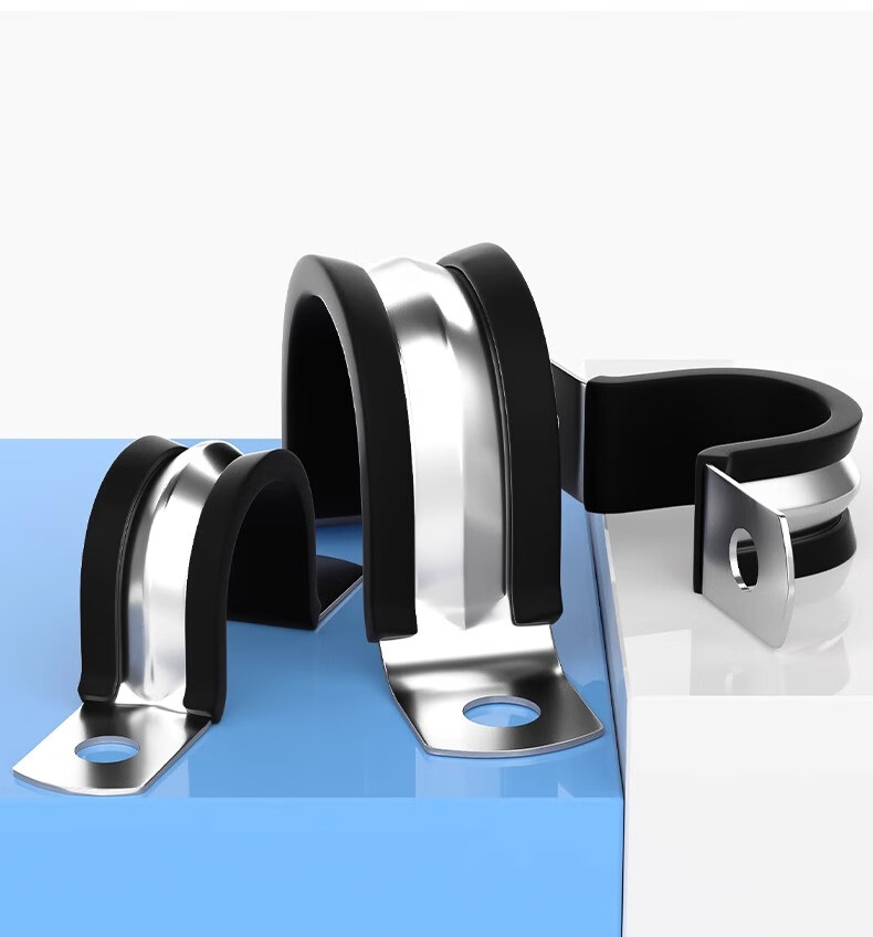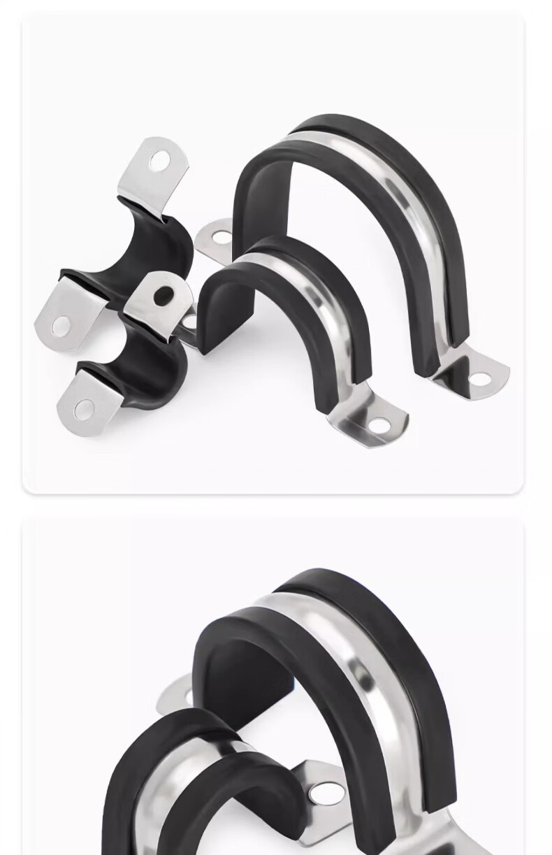 Fengji 304 stainless steel U-shaped belt with adhesive strip riding card steel pipe buckle clamp hoop pipe clamp fixed cable hoop locking M6mm-5 pieces