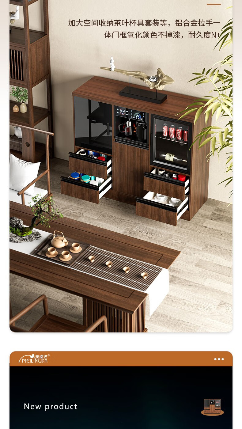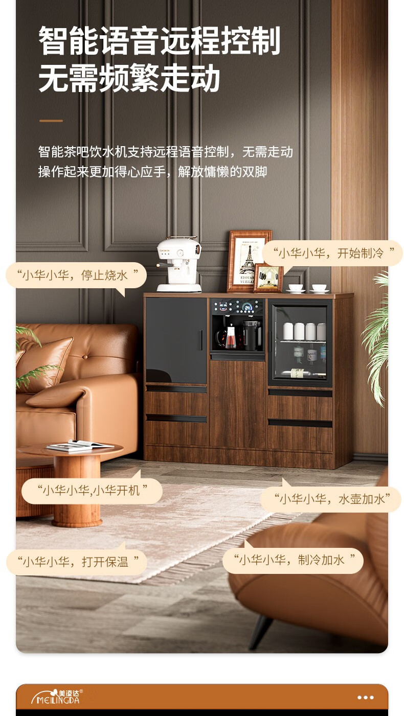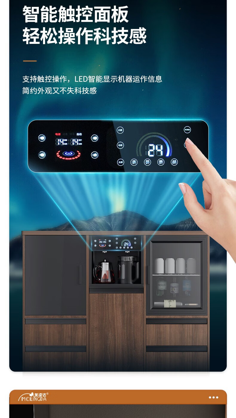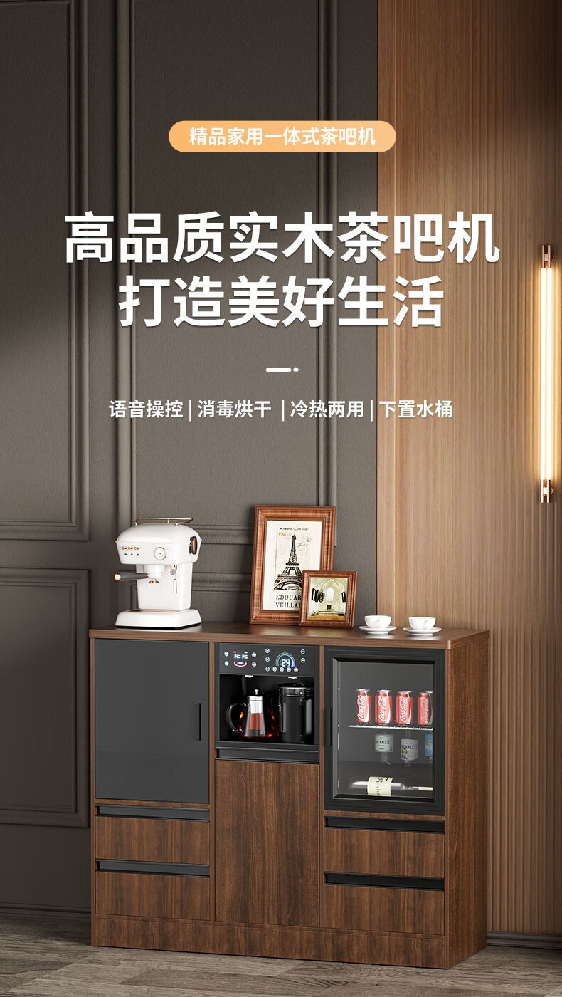 MEILINGDA high-end new solid wood tea bar machine fully automatic intelligent remote control multi-functional ice and hot water dispenser bottle disinfection cabinet living room tea and water integrated cabinet sideboard cooling and heating solid wood 837 (refrigerator refrigerated) ice warm