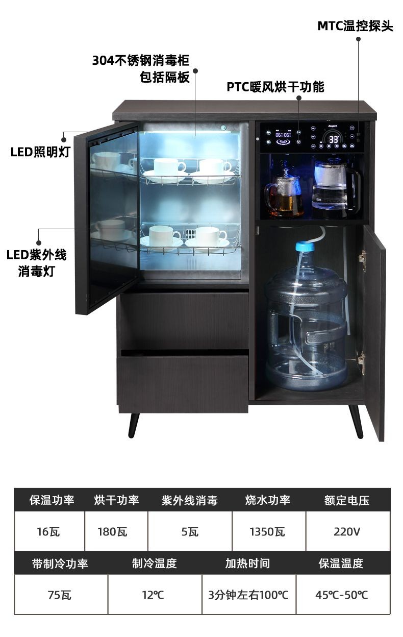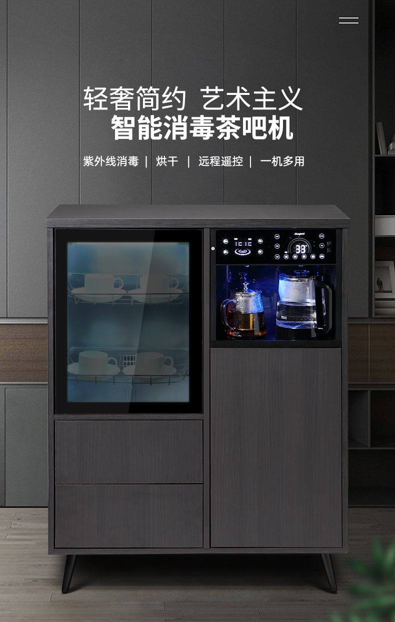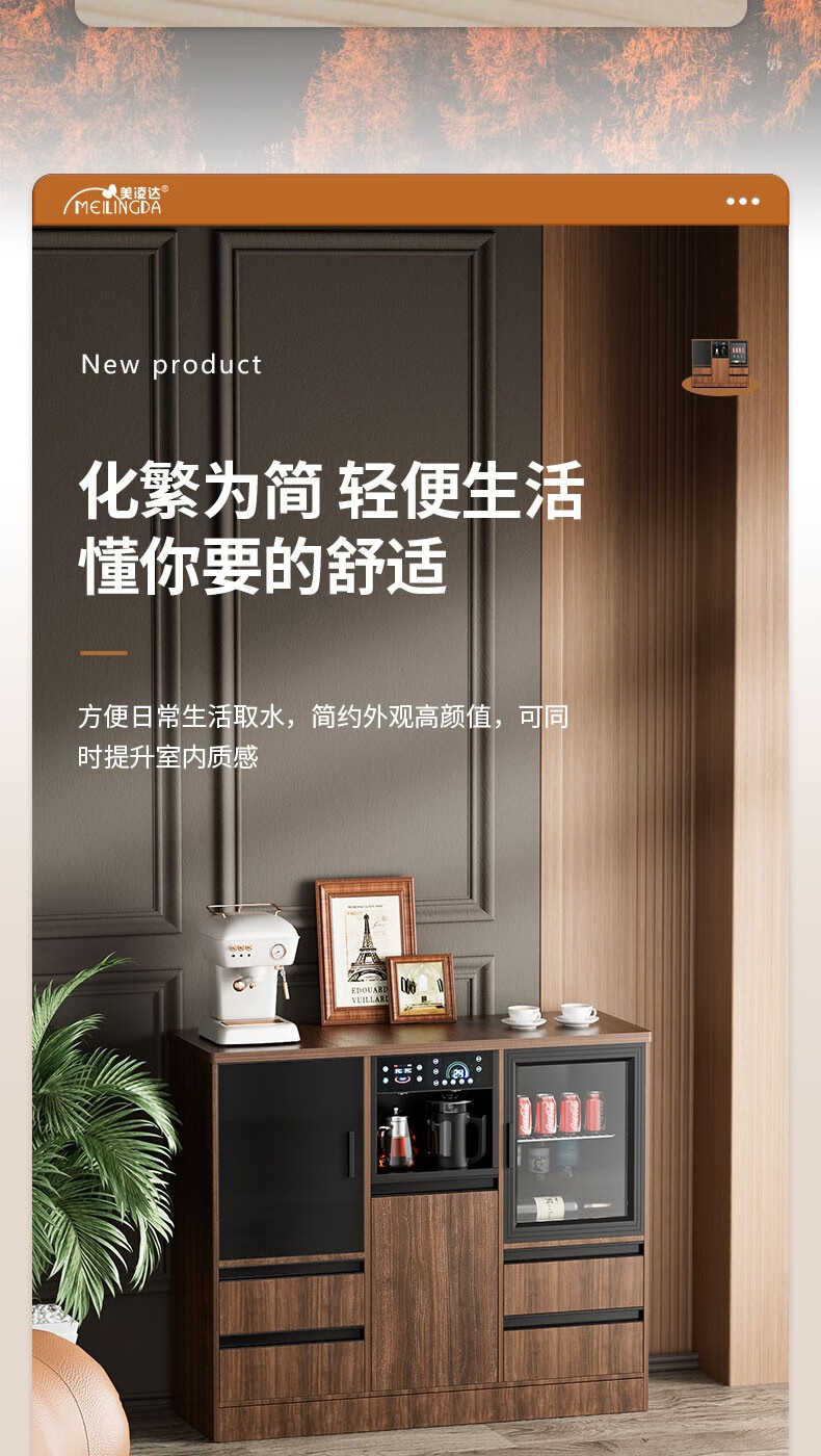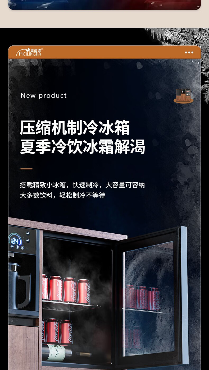 MEILINGDA high-end new solid wood tea bar machine fully automatic intelligent remote control multi-functional ice and hot water dispenser bottle disinfection cabinet living room tea and water integrated cabinet sideboard cooling and heating solid wood 837 (refrigerator refrigerated) ice warm