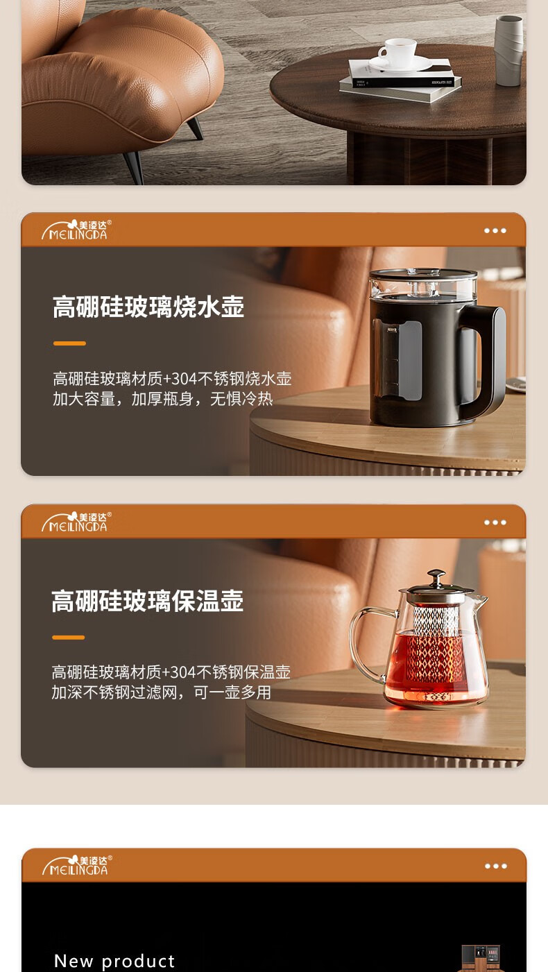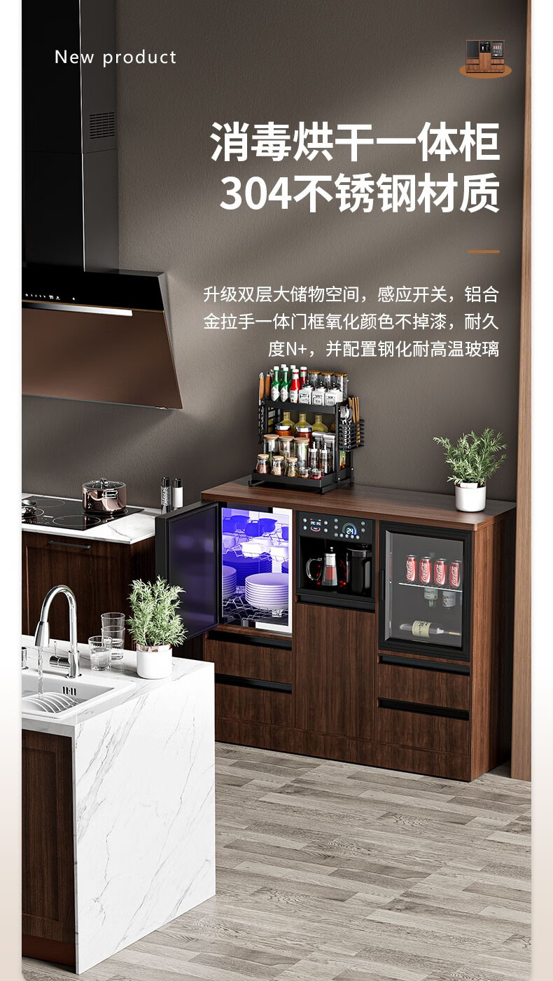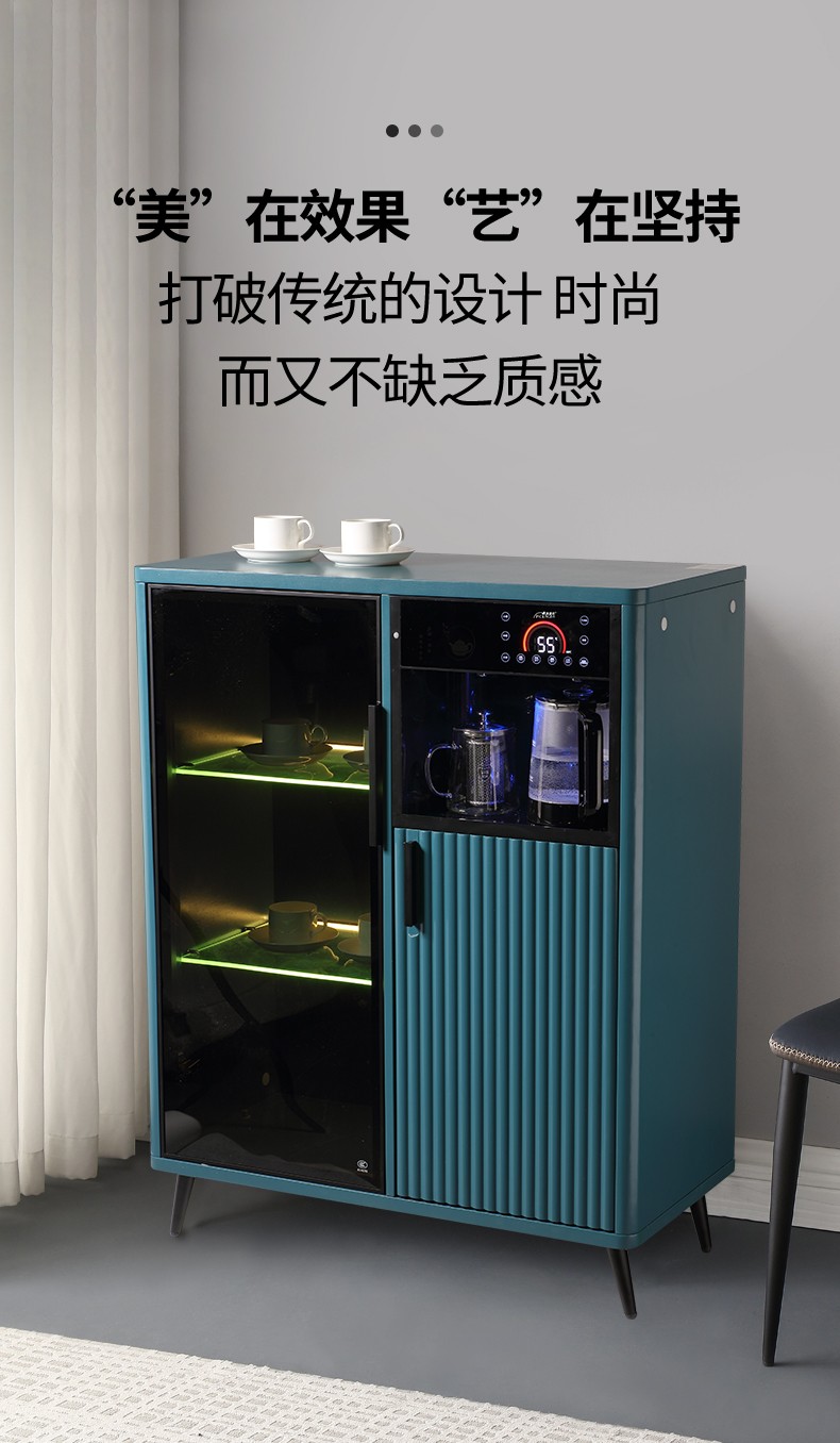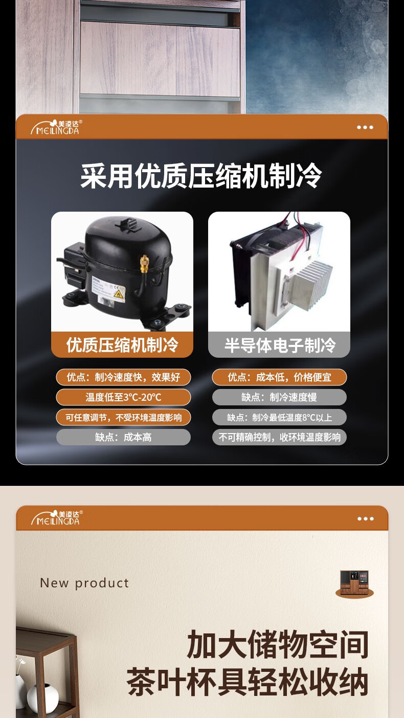 MEILINGDA high-end new solid wood tea bar machine fully automatic intelligent remote control multi-functional ice and hot water dispenser bottle disinfection cabinet living room tea and water integrated cabinet sideboard cooling and heating solid wood 837 (refrigerator refrigerated) ice warm