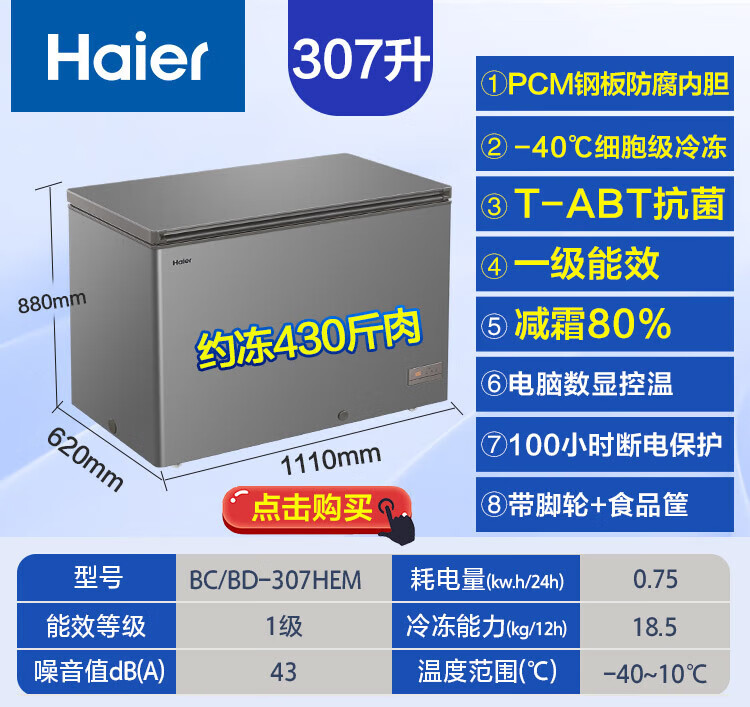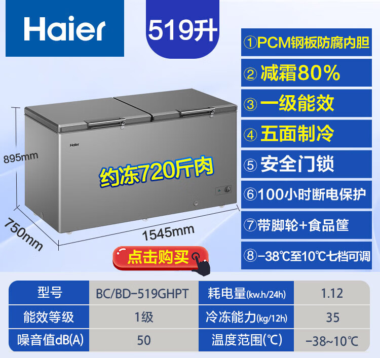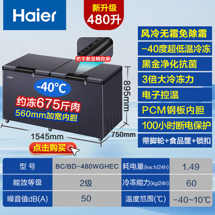 Haier Freezer Home Commercial Large Capacity Deep Freezing Quick Freezing Ultra Low Temperature Energy Saving Frost Reducing Full Freezing Refrigerator Dual-Purpose Conversion Freezer 300/400/500 Liters or More Same Style in Physical Store丨-38 Quick Freezing丨PCM Steel Plate Liner丨 429L