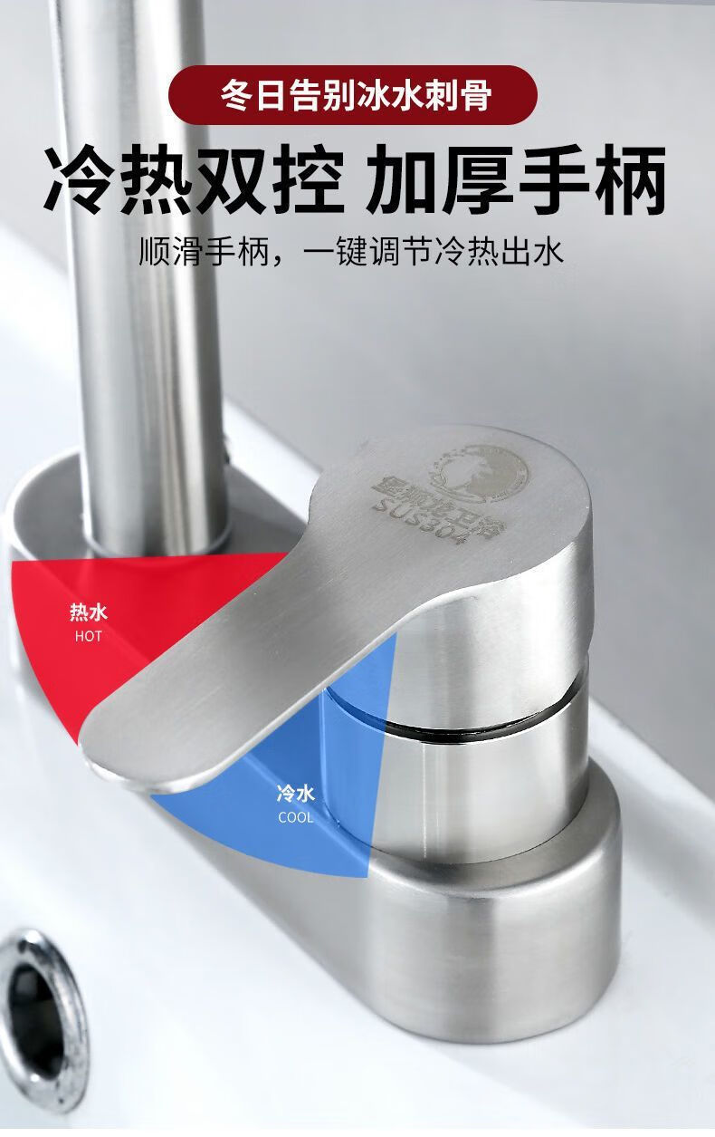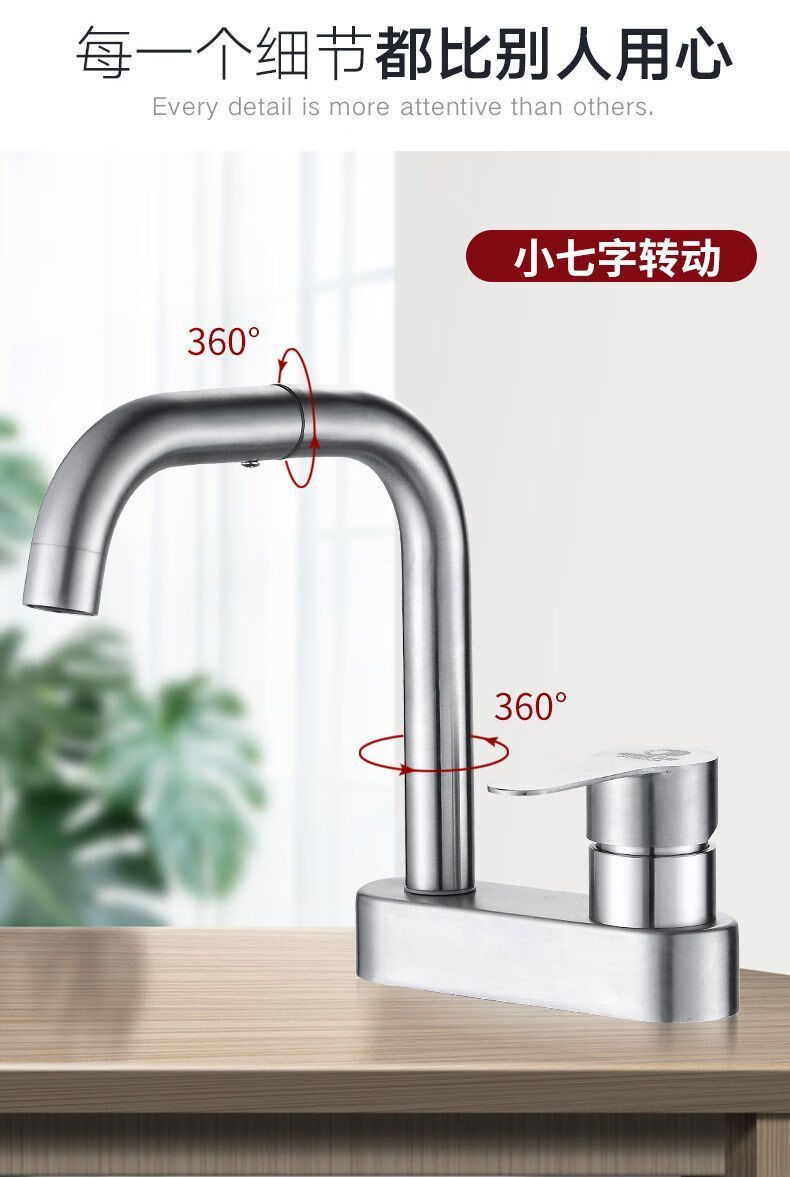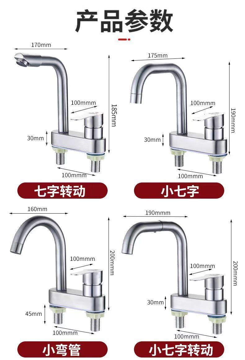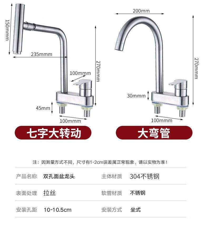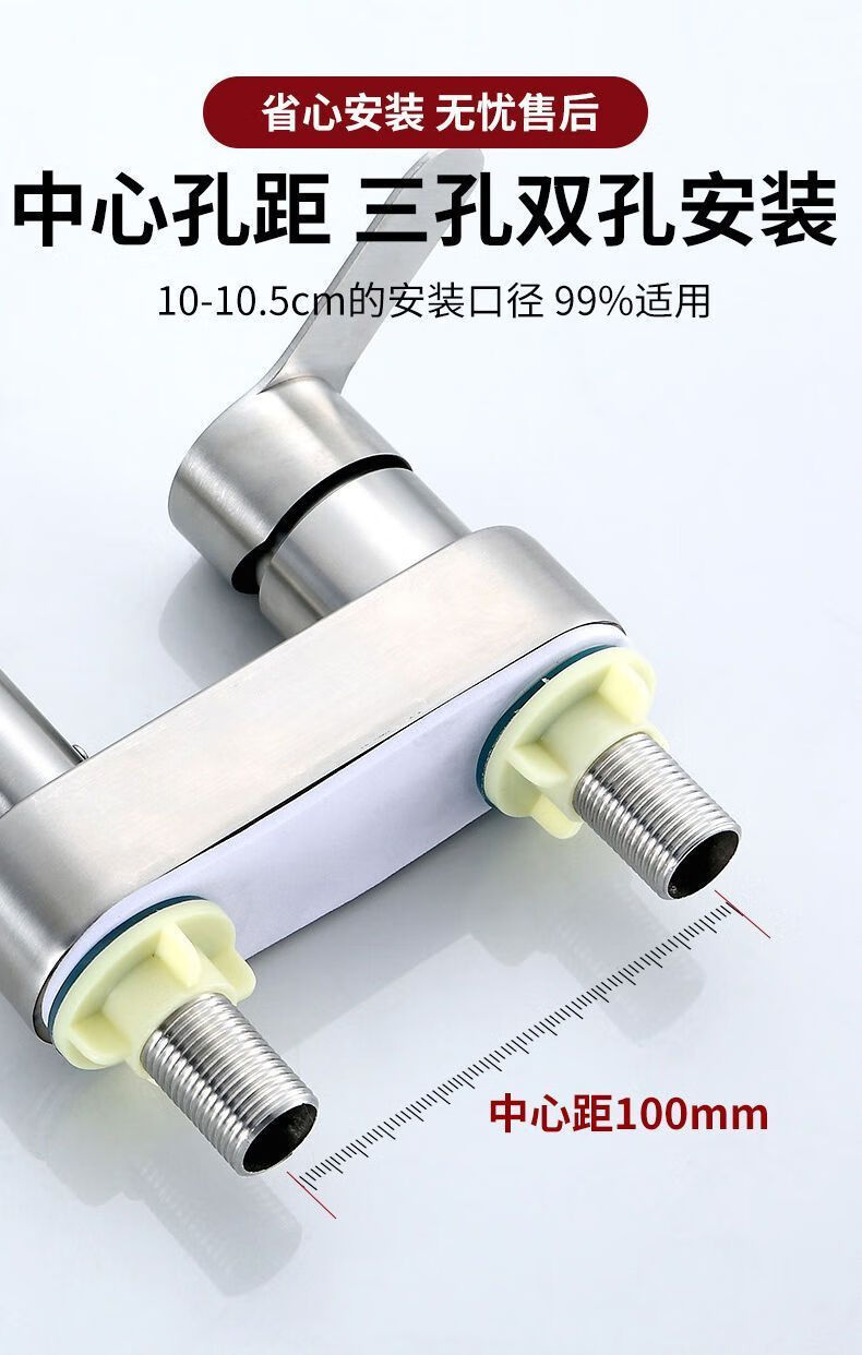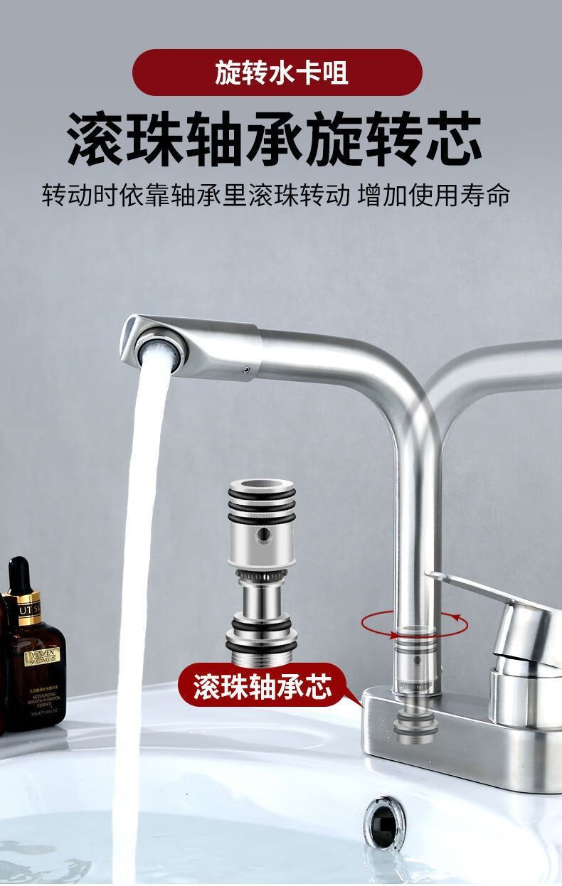 Jiumu Wangshijia 304 stainless steel double-hole hot and cold faucet can rotate and mix bathroom washbasin sink faucet 304 Sailuo double-hole two-connected