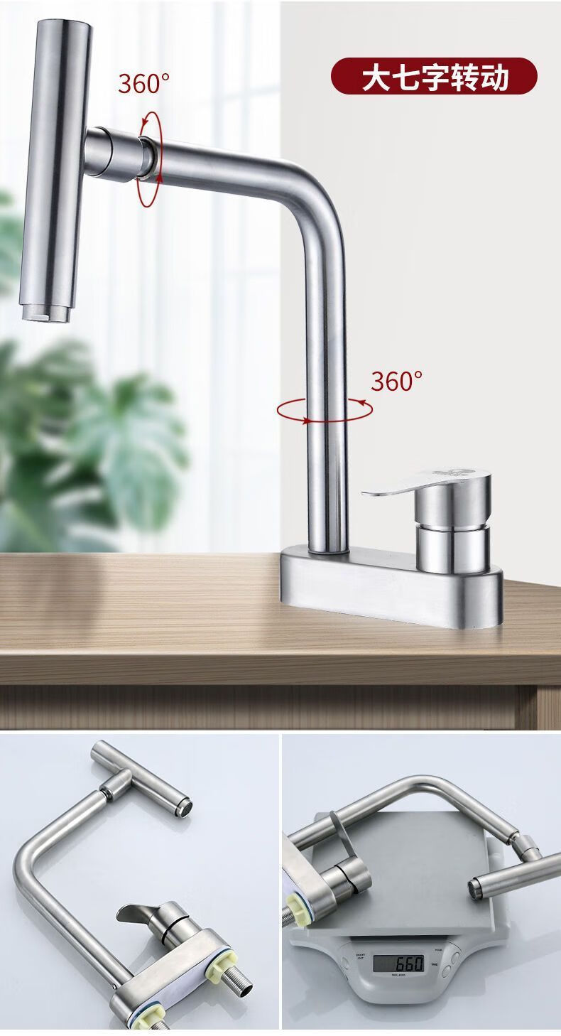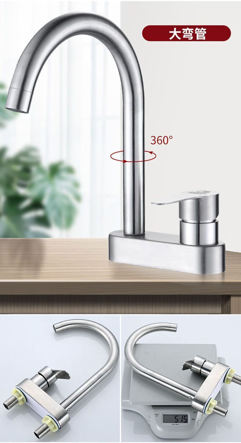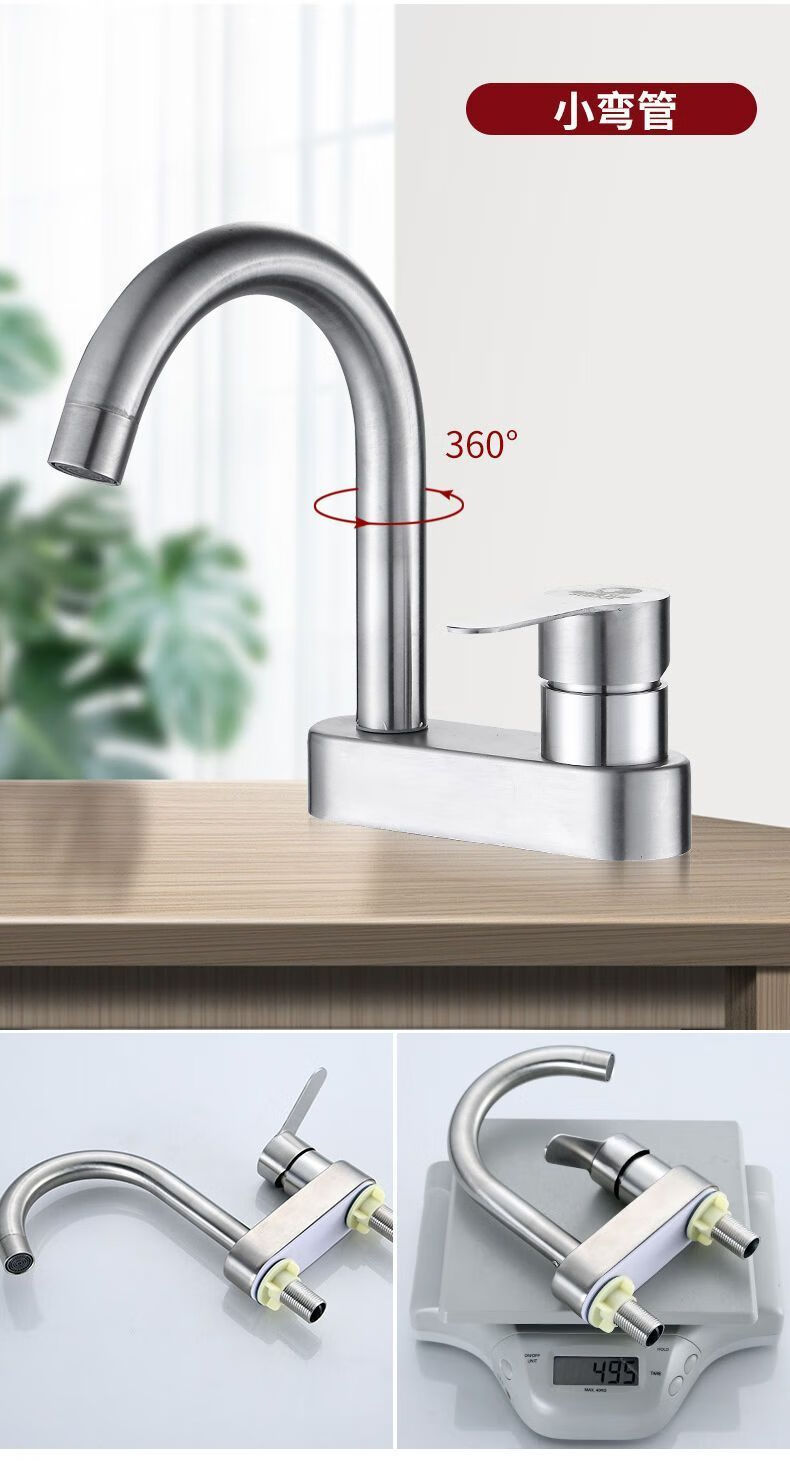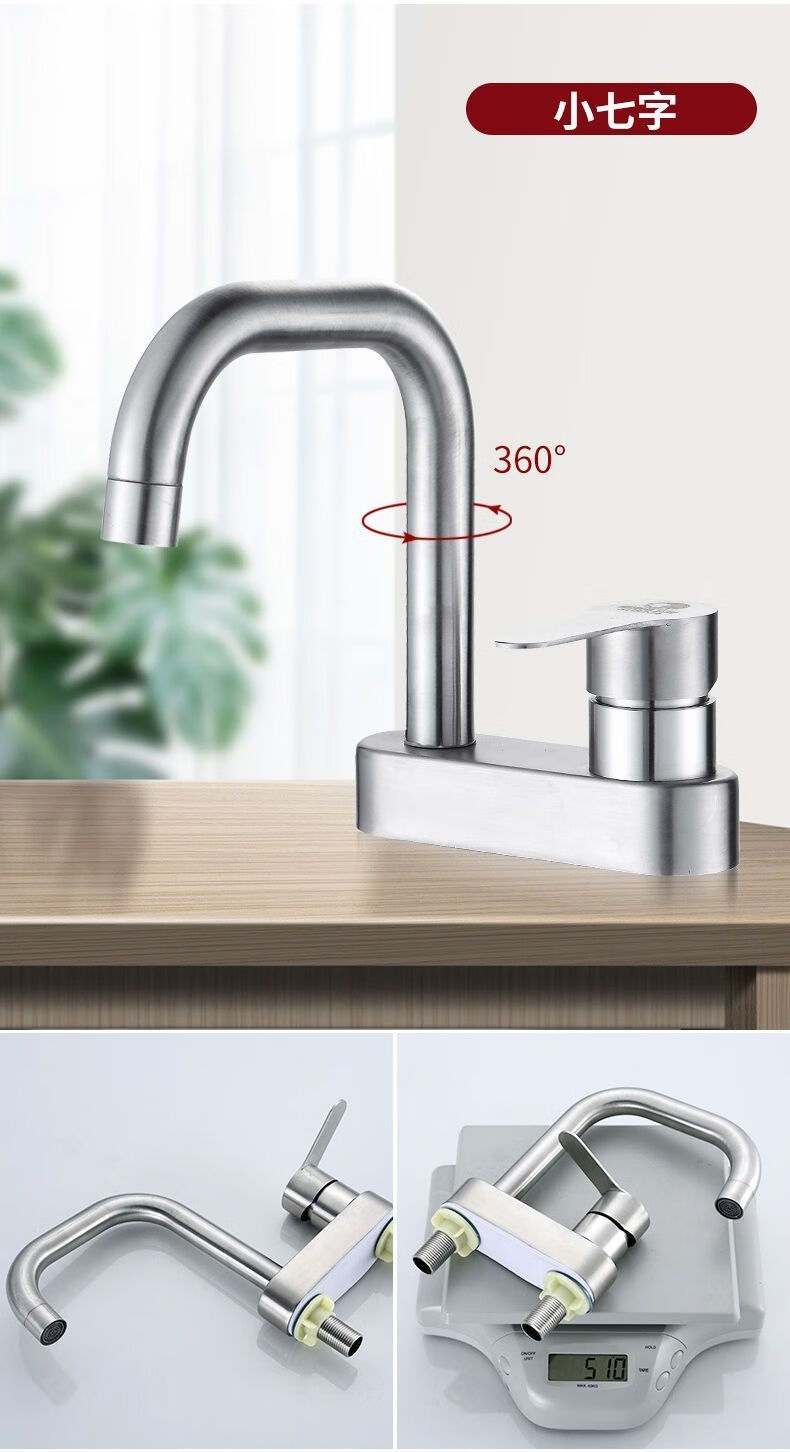 Jiumu Wangshijia 304 stainless steel double-hole hot and cold faucet can rotate and mix bathroom washbasin sink faucet 304 Sailuo double-hole two-connected