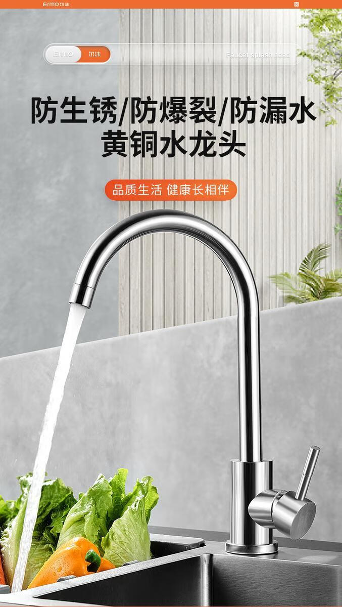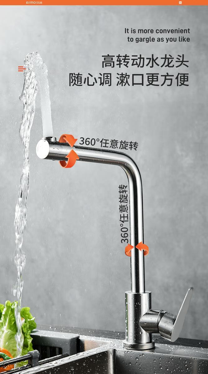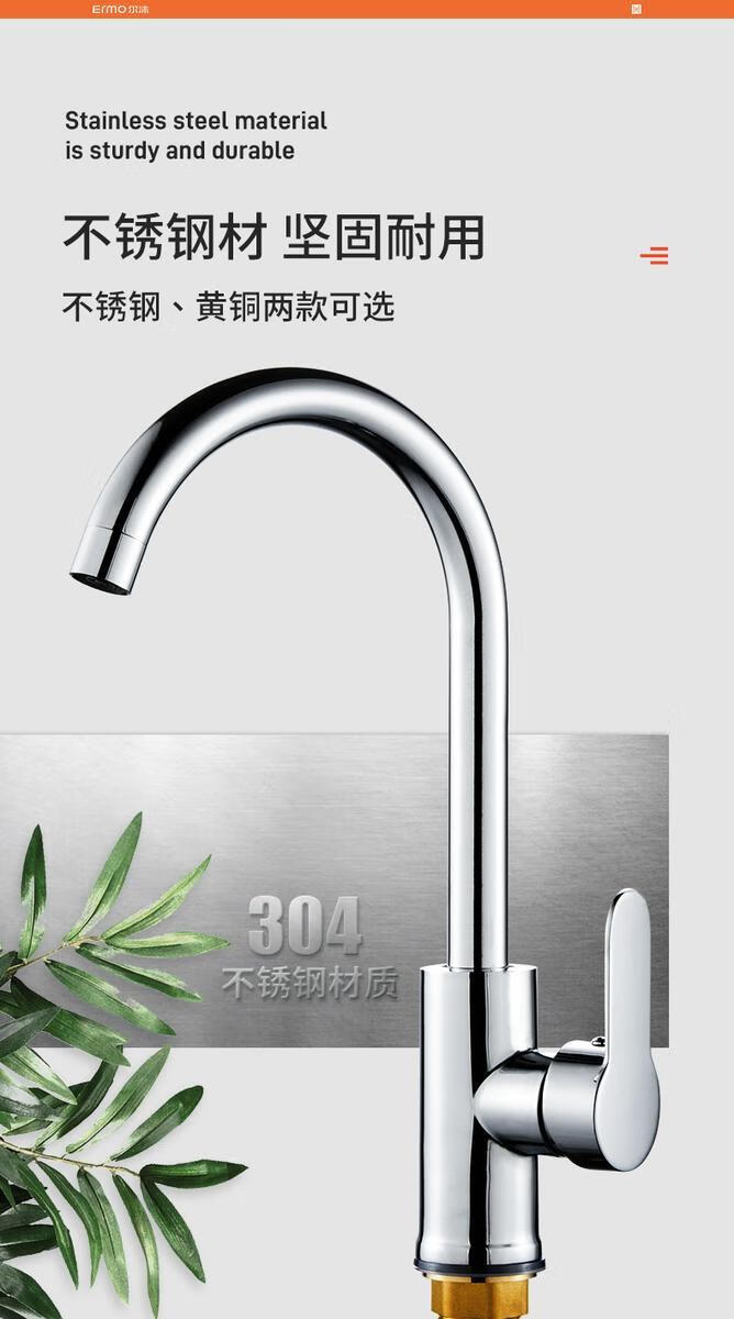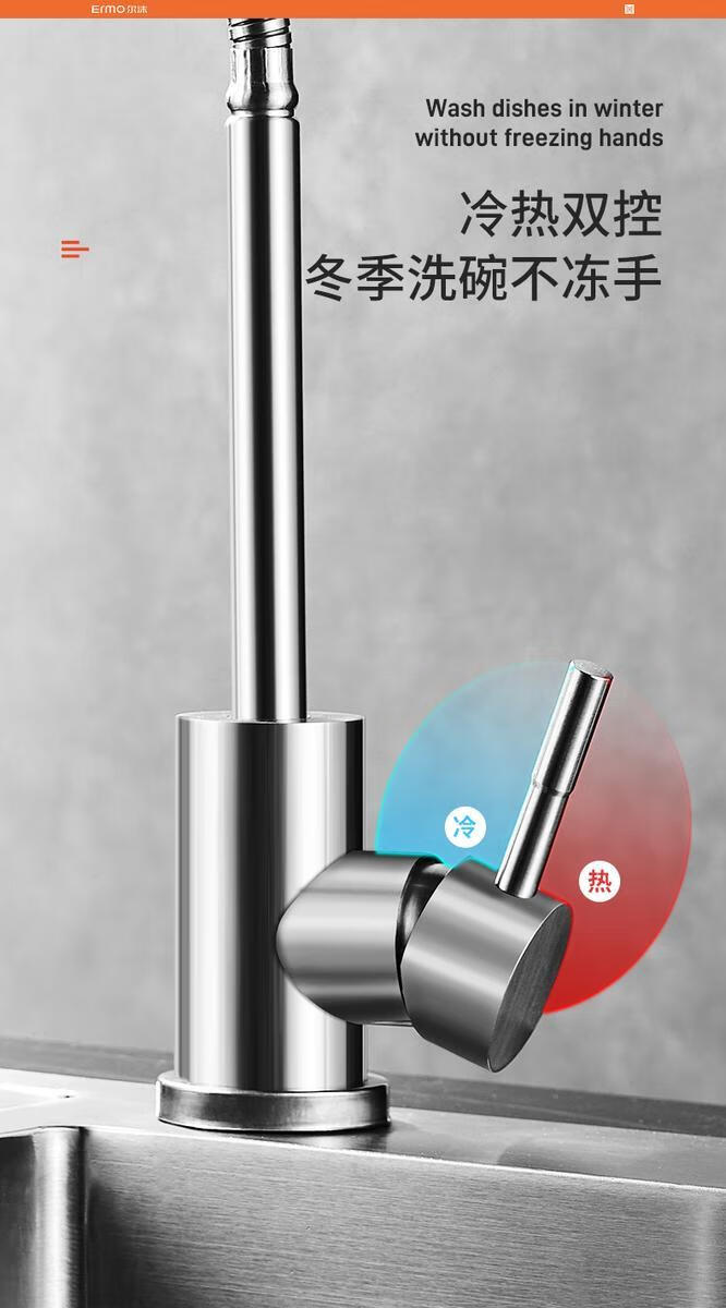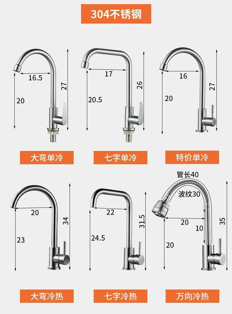 Jiumu Wangshijia 304 stainless steel kitchen faucet bathroom hot and cold water head anti-splash vegetable basin single cold washbasin sink thickened 304 stainless steel large curved single cold