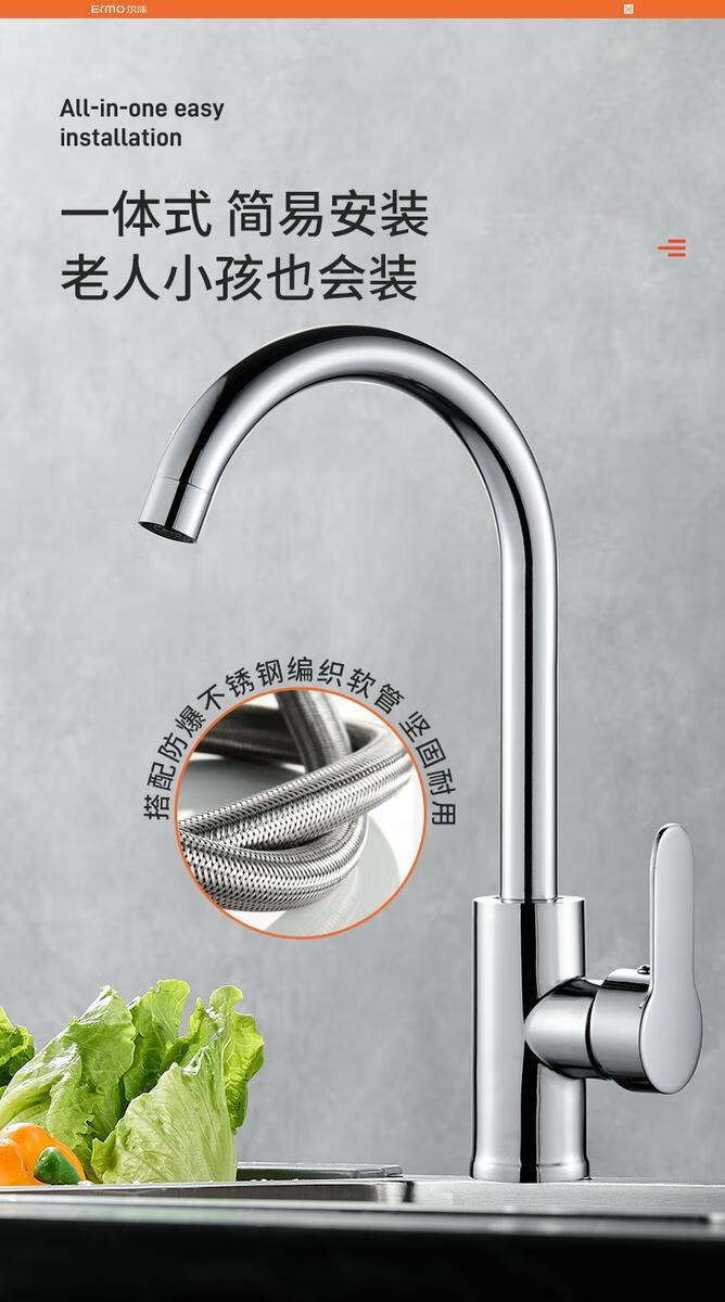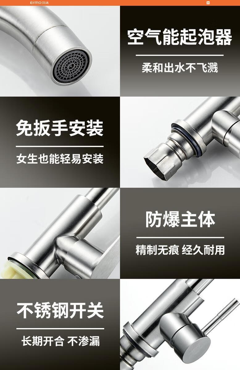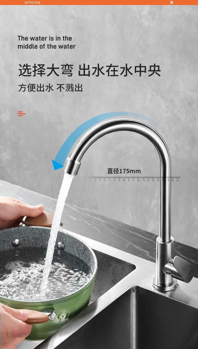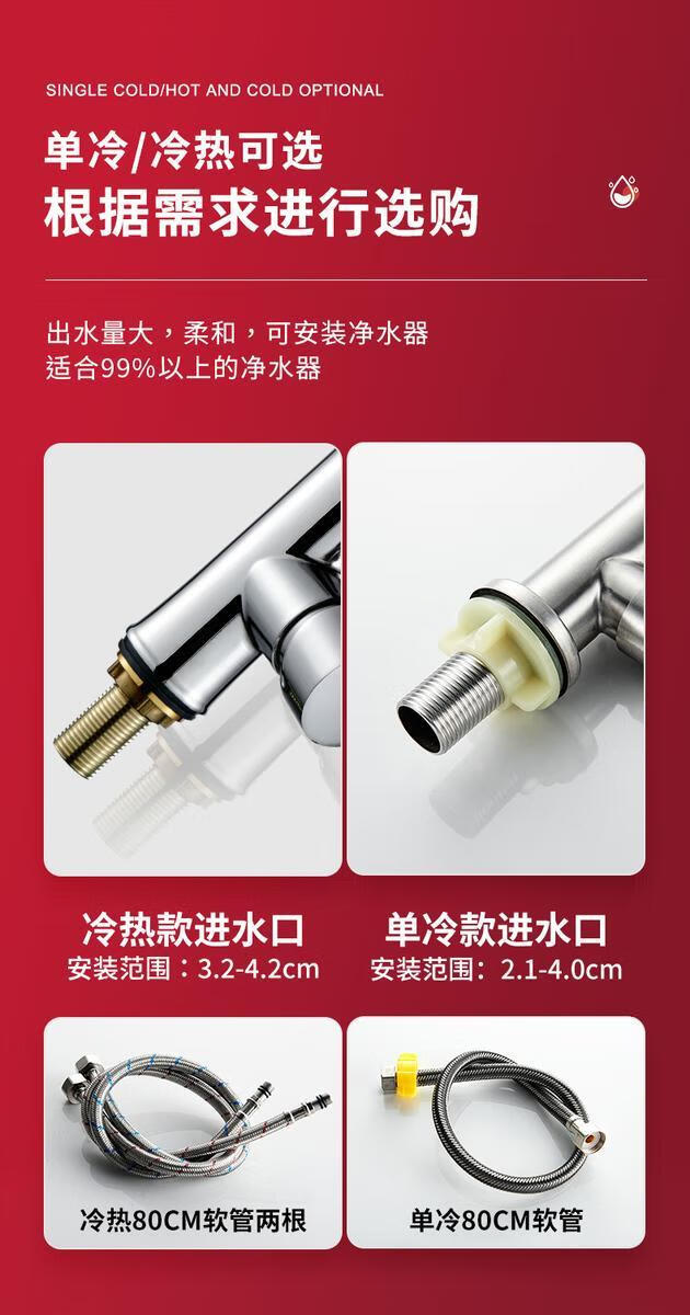 Jiumu Wangshijia 304 stainless steel kitchen faucet bathroom hot and cold water head anti-splash vegetable basin single cold washbasin sink thickened 304 stainless steel large curved single cold