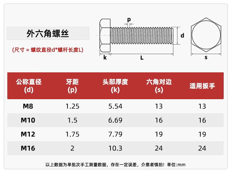 Fengji 321 stainless steel external hexagonal bolt 0Cr18Ni10Ti titanium screw screw screw M8M10M12M16mm M12*35-5 only