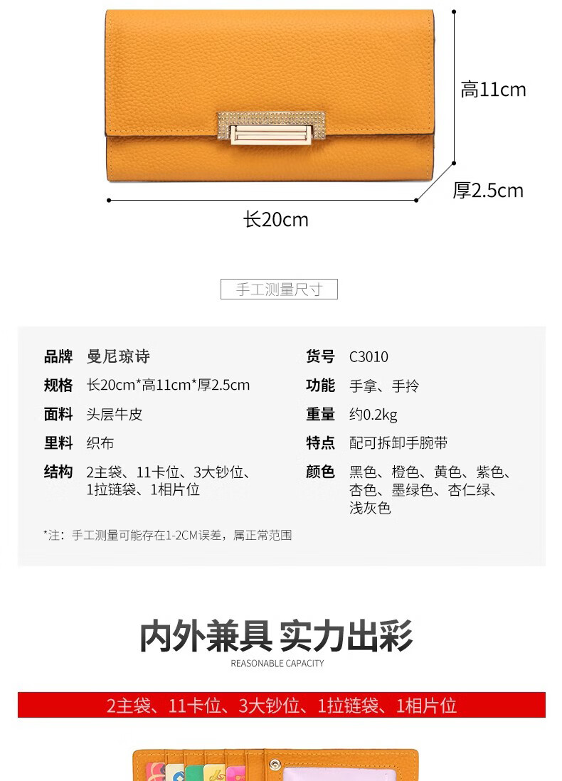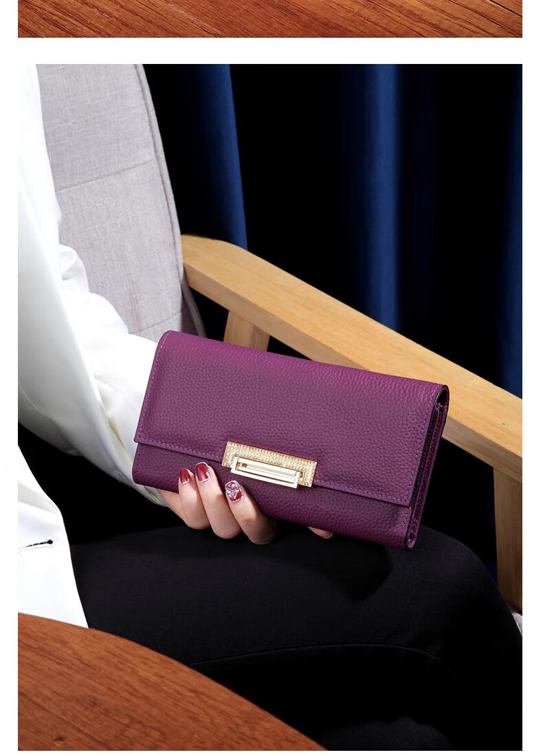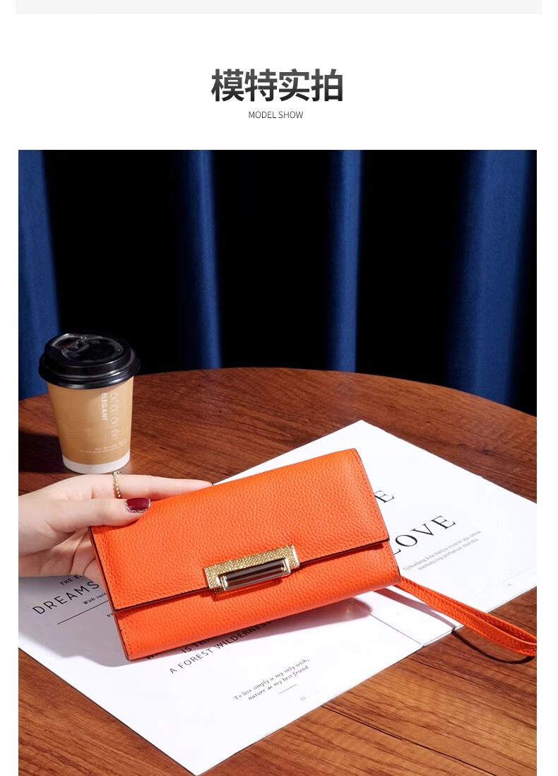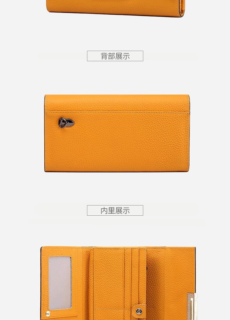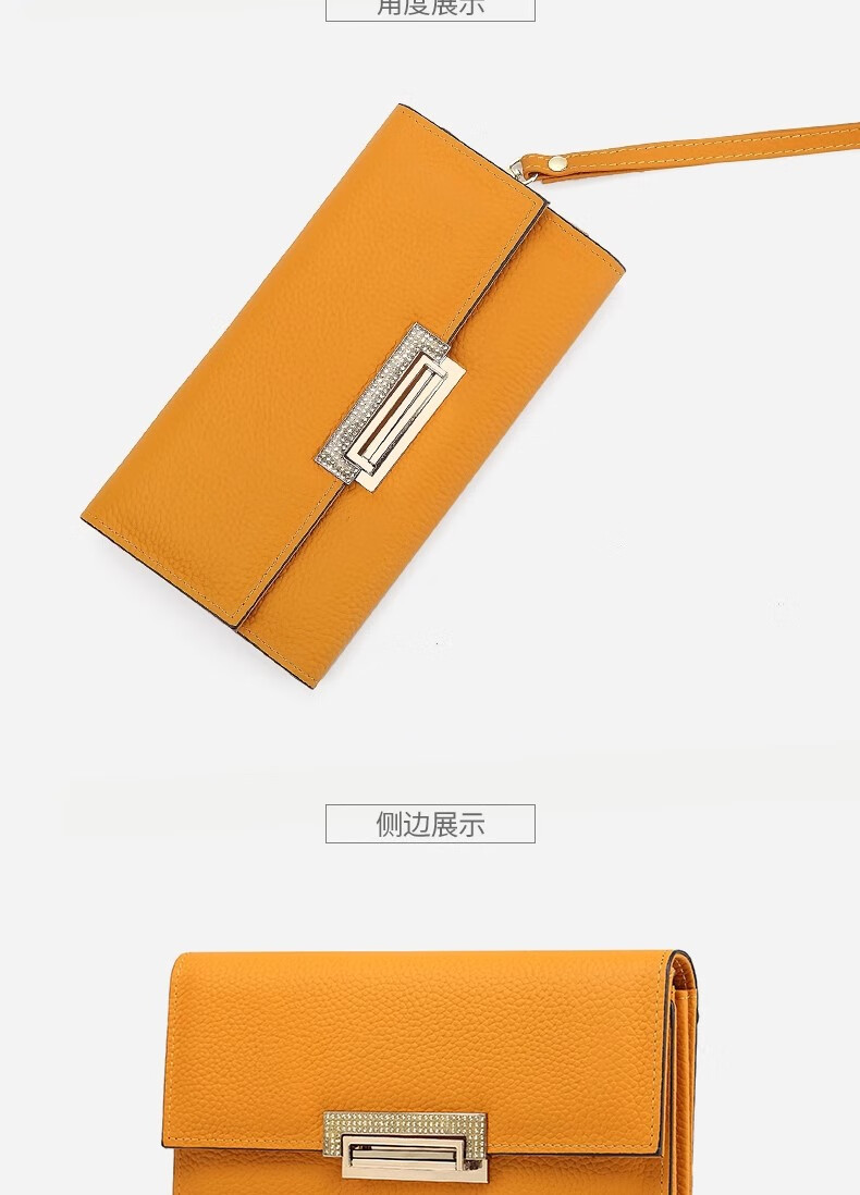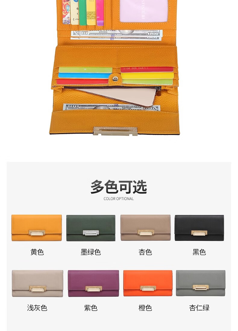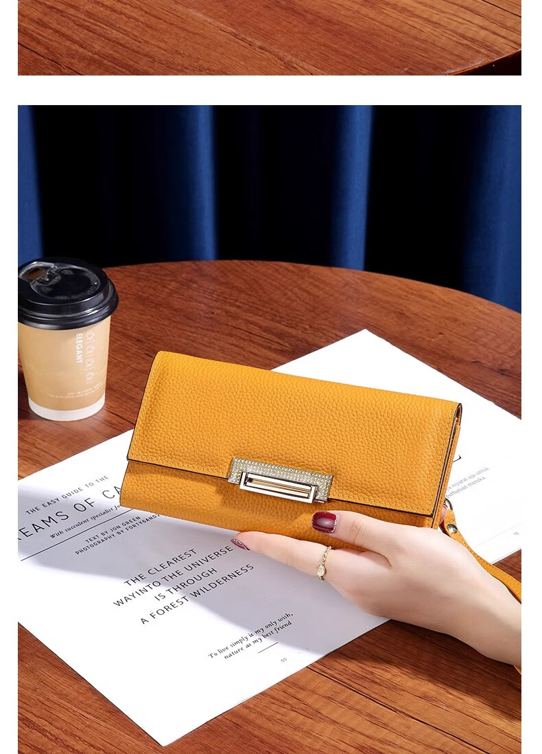 VUNIQSON long wallet for women genuine leather large capacity clutch bag fashionable folding wallet bag for mobile phone versatile hand wallet for women yellow