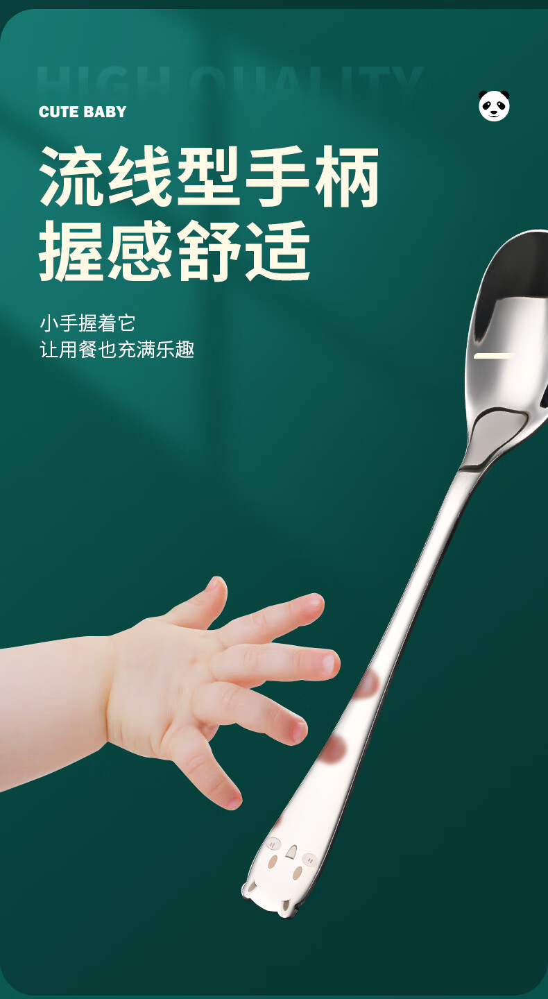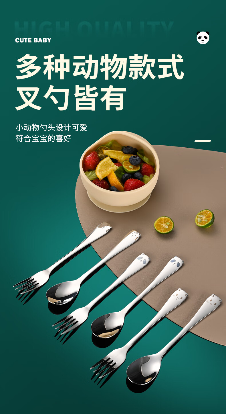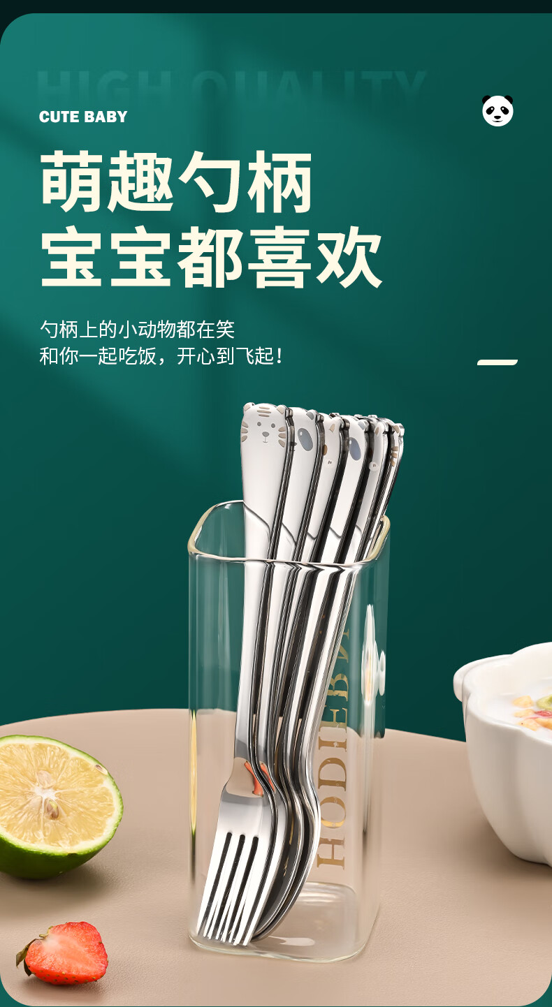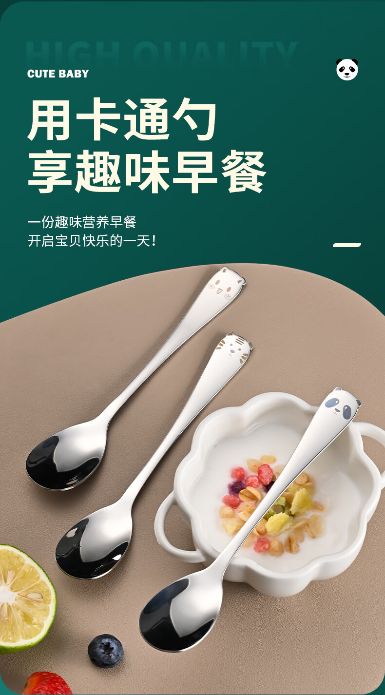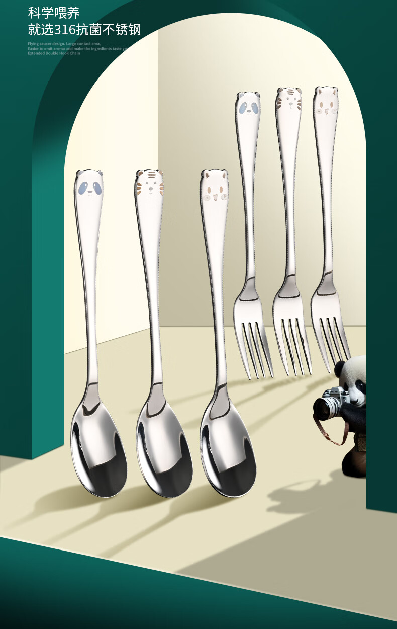 HUYO316 stainless steel spoon children's eating spoon household cartoon spoon fork tableware baby special long handle spoon 316 steel tiger fork