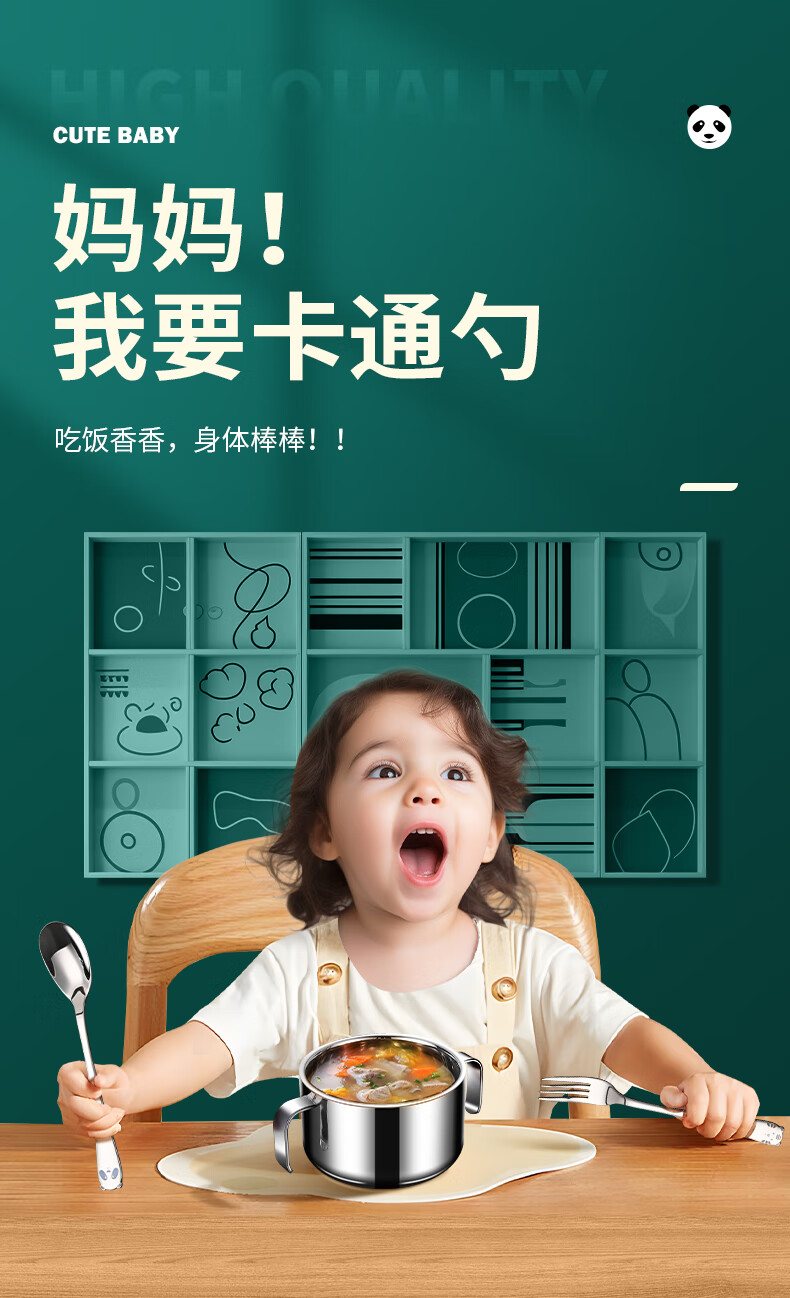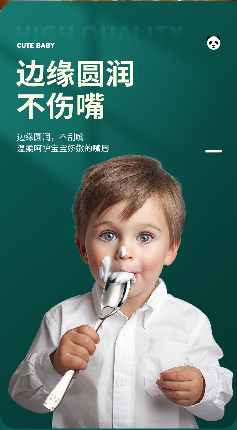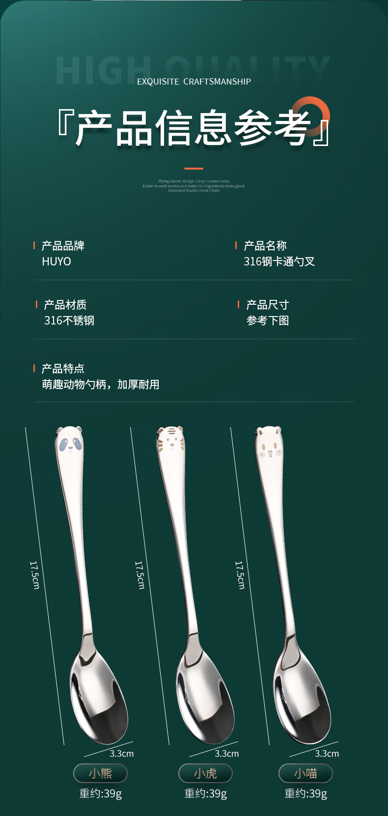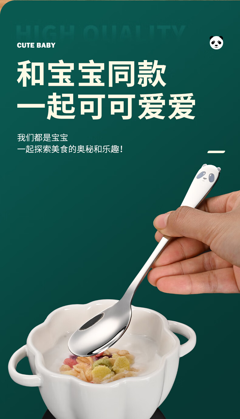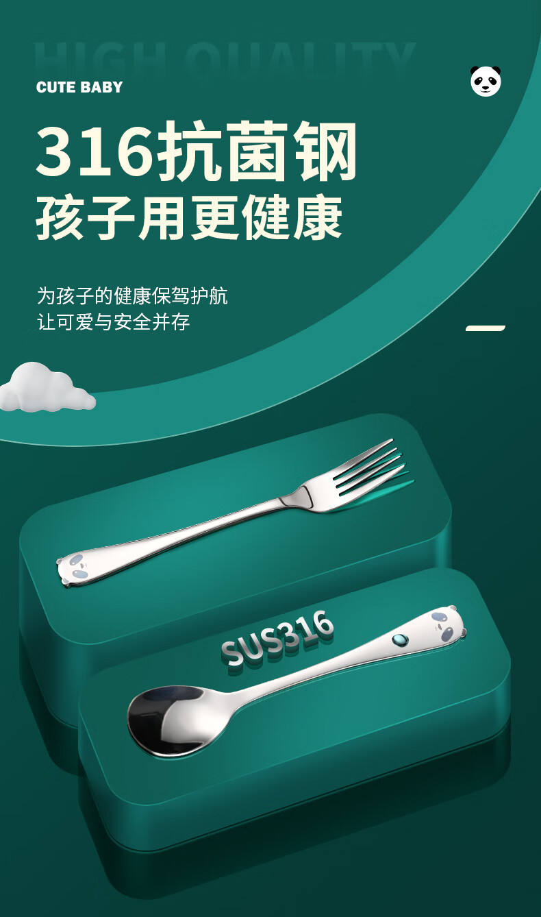 HUYO316 stainless steel spoon children's eating spoon household cartoon spoon fork tableware baby special long handle spoon 316 steel tiger fork