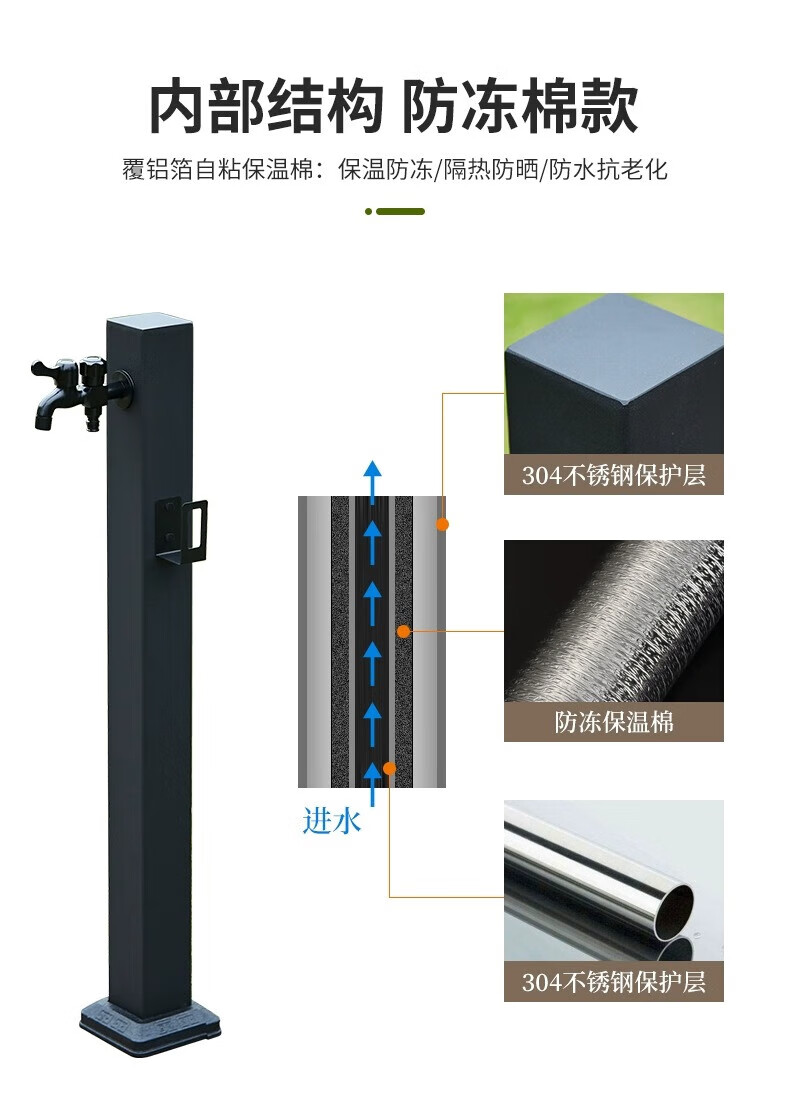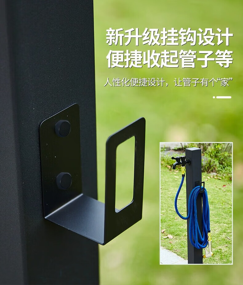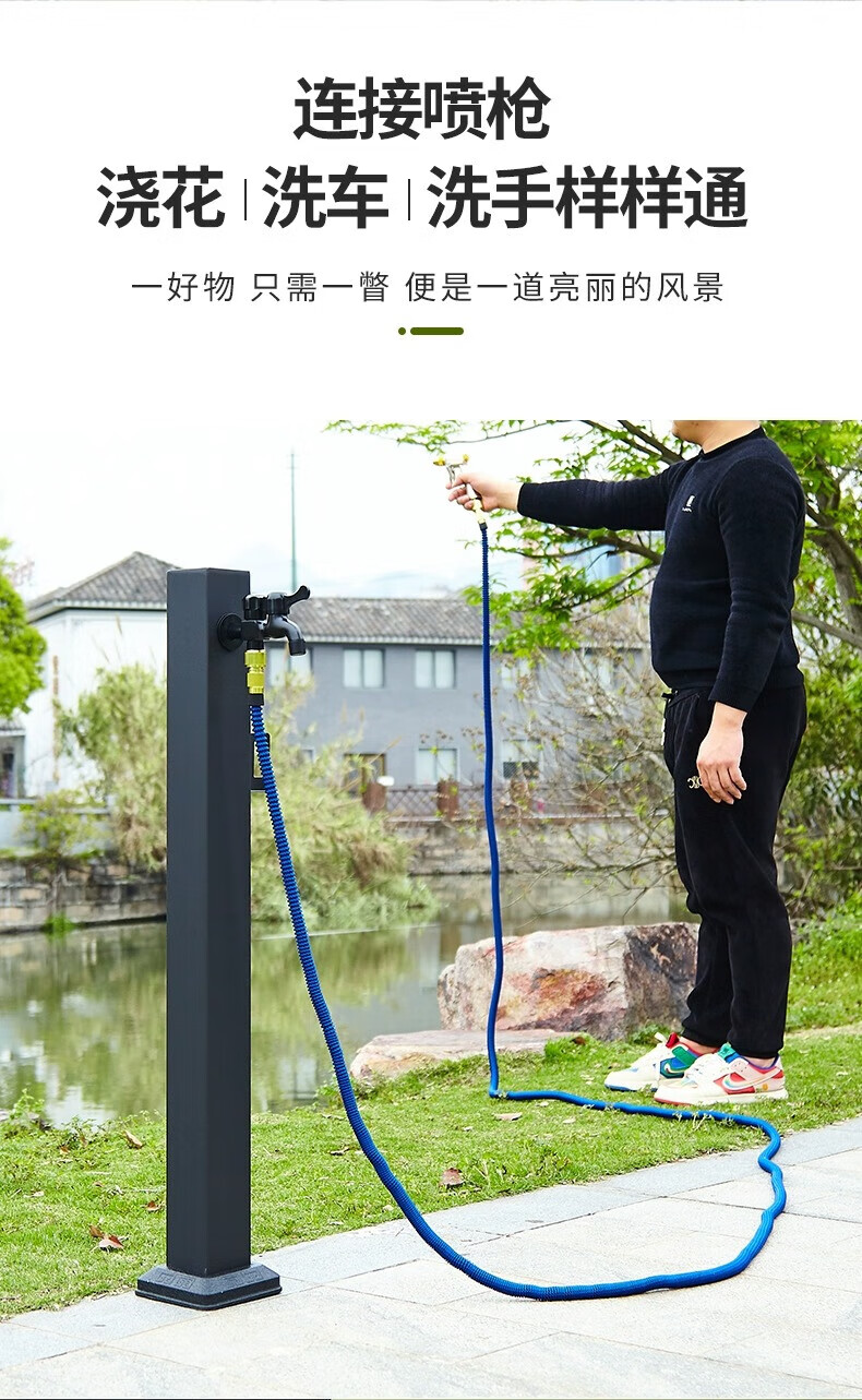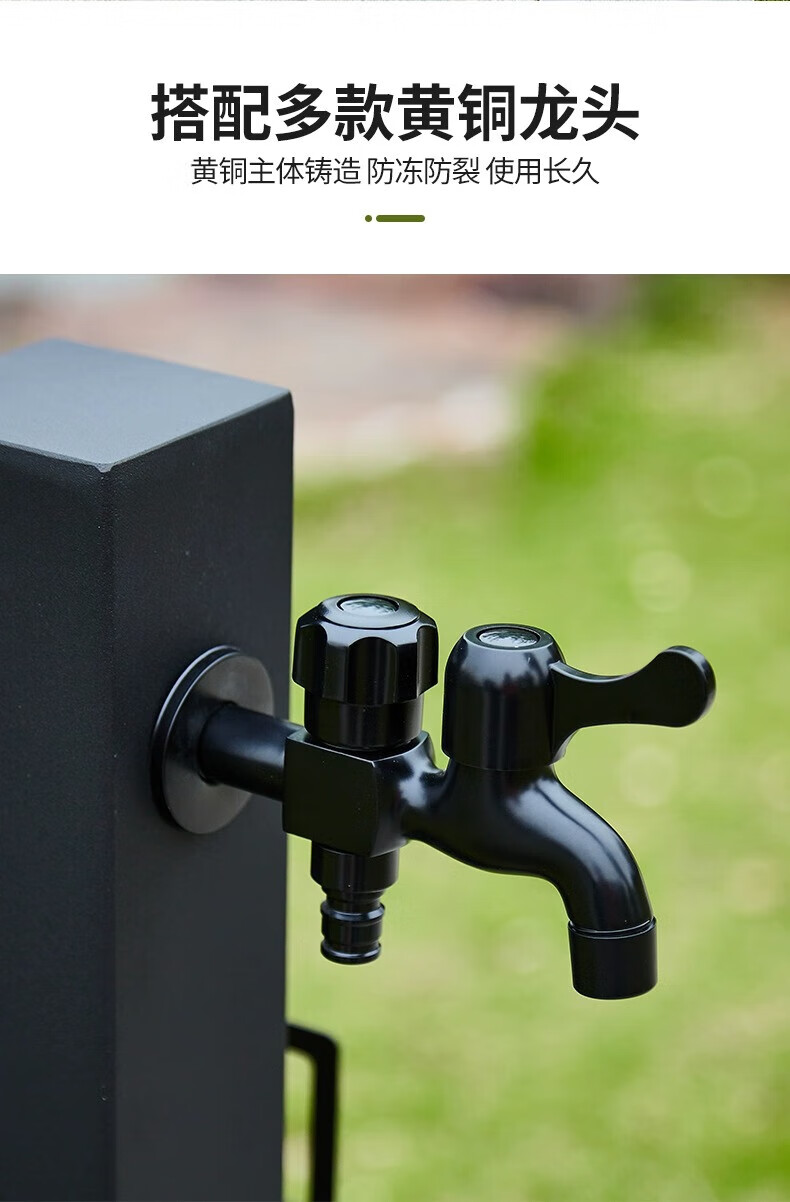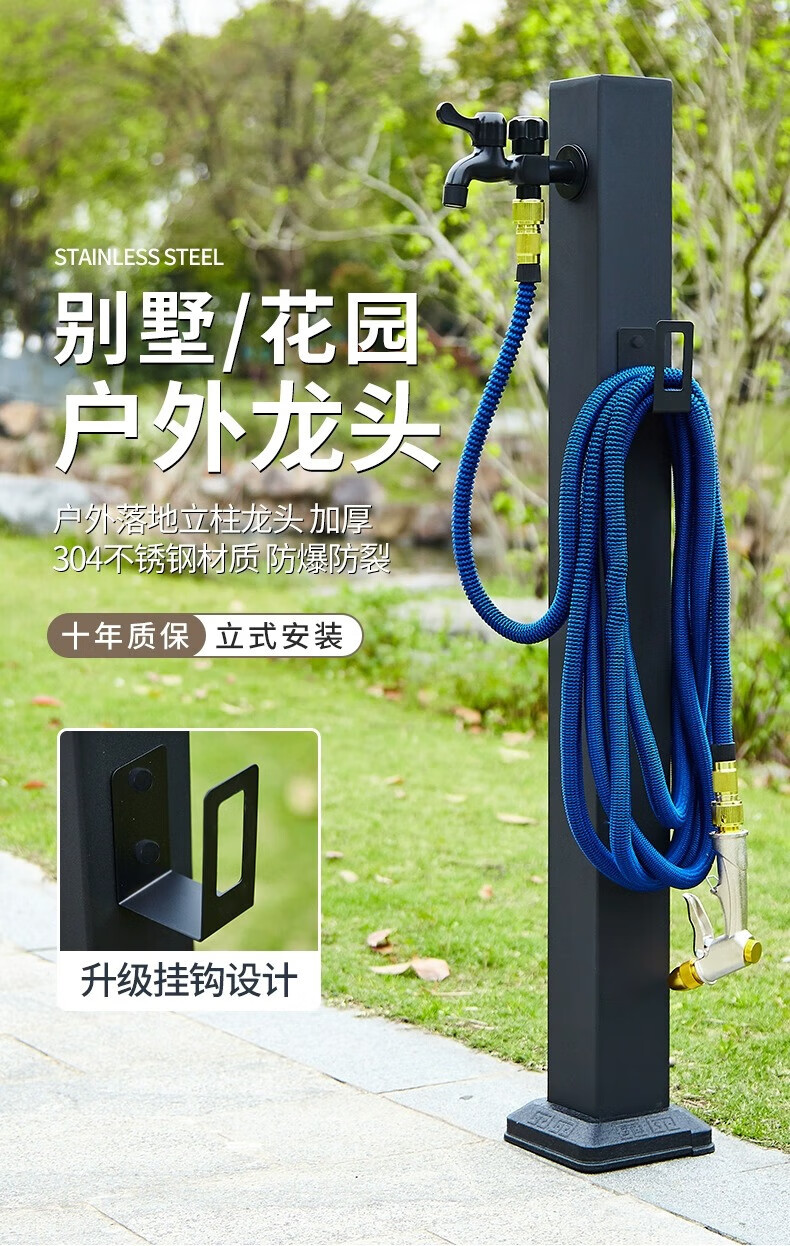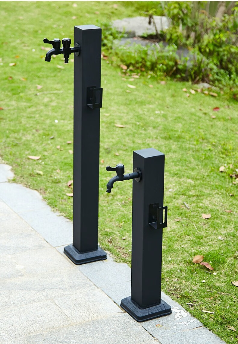 Capello Black Simple Stainless Steel Outdoor Antifreeze Faucet Column Outdoor Courtyard Villa Garden Antifreeze Cracked Water Faucet Black Stainless Steel Square Tall - Spray Gun Double Faucet