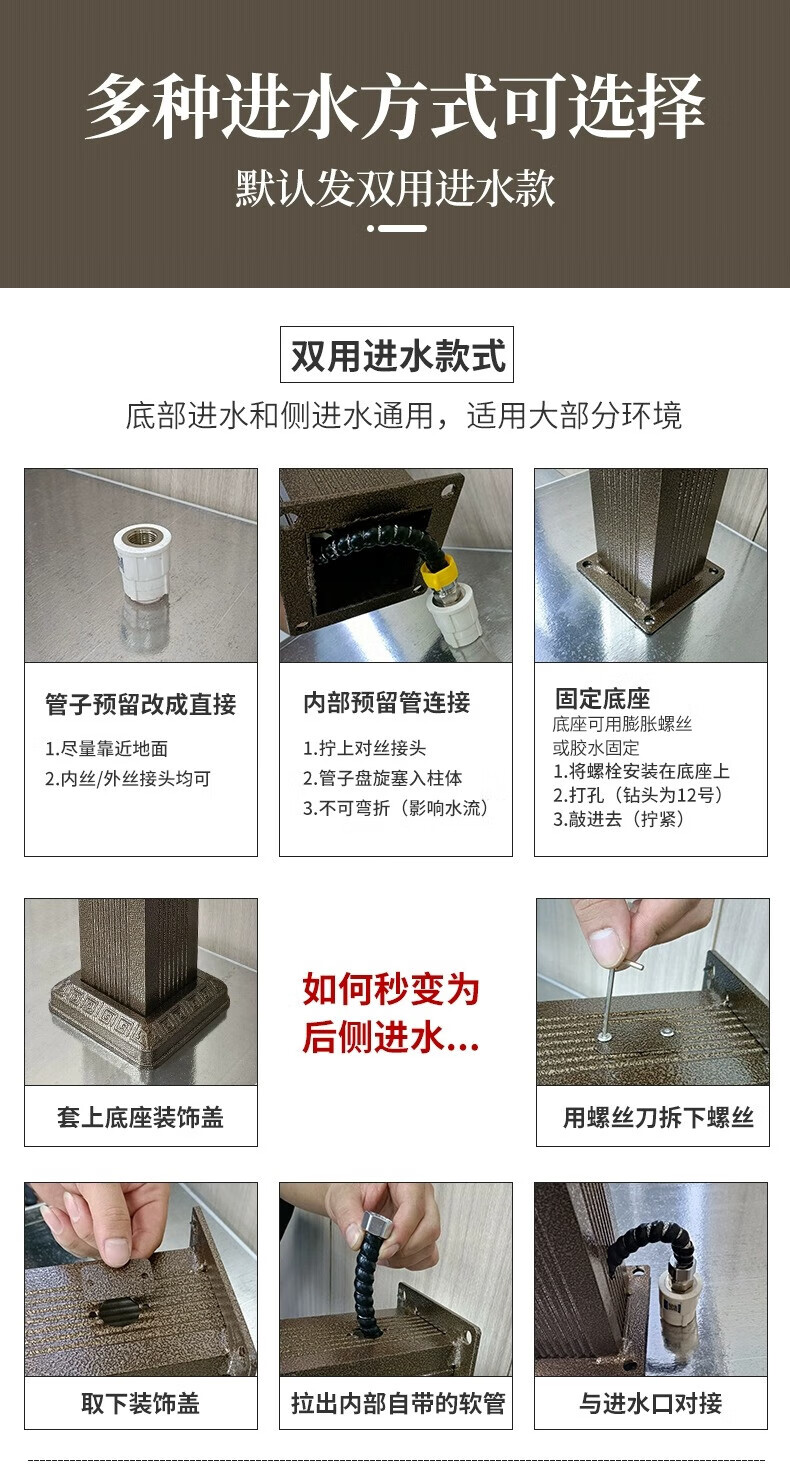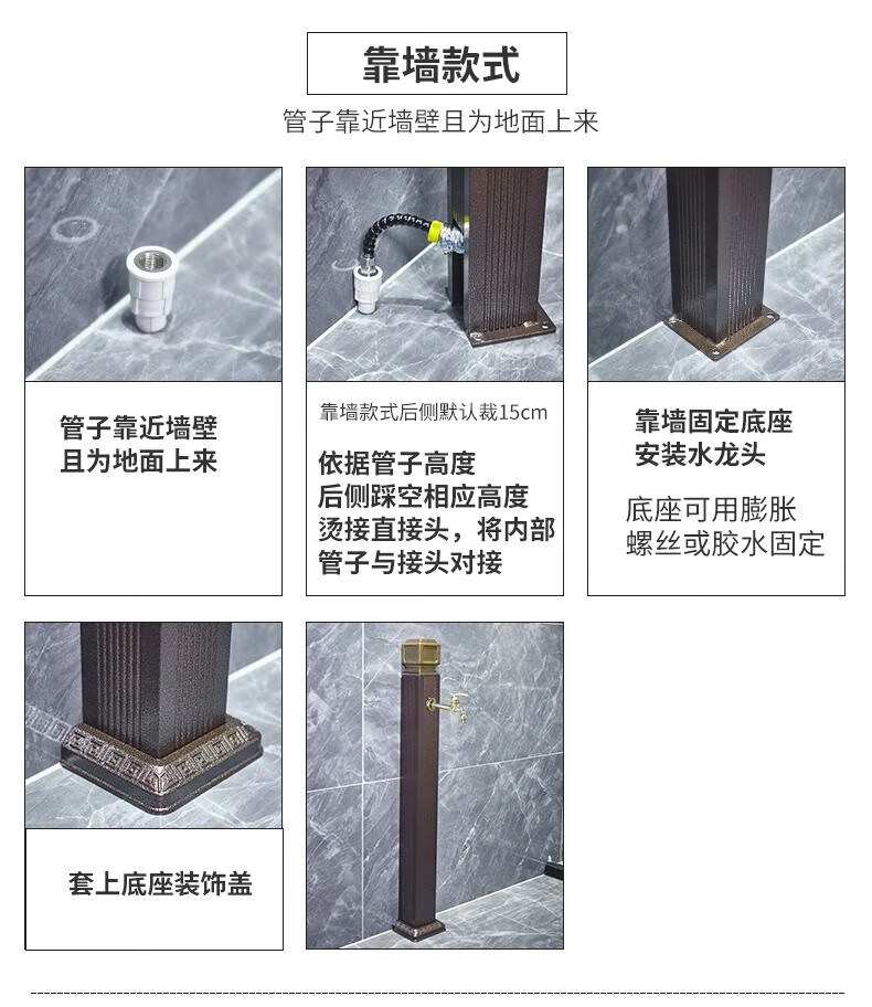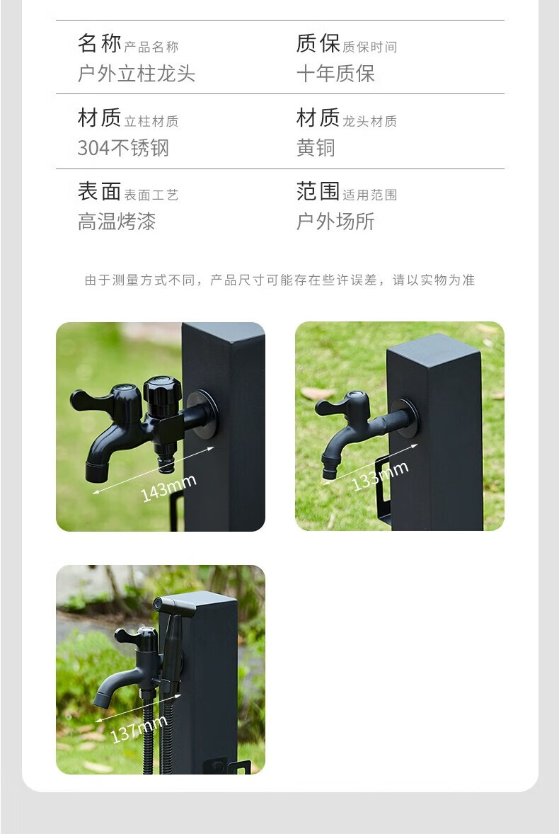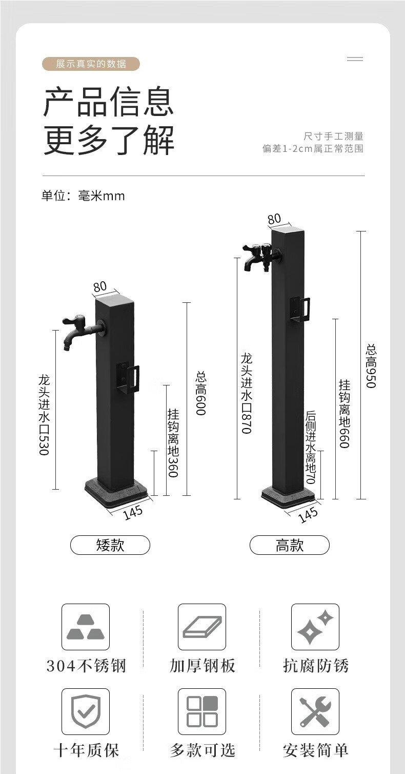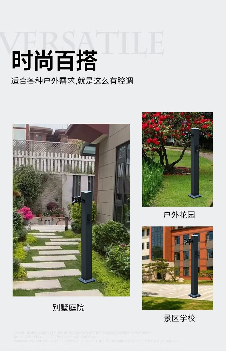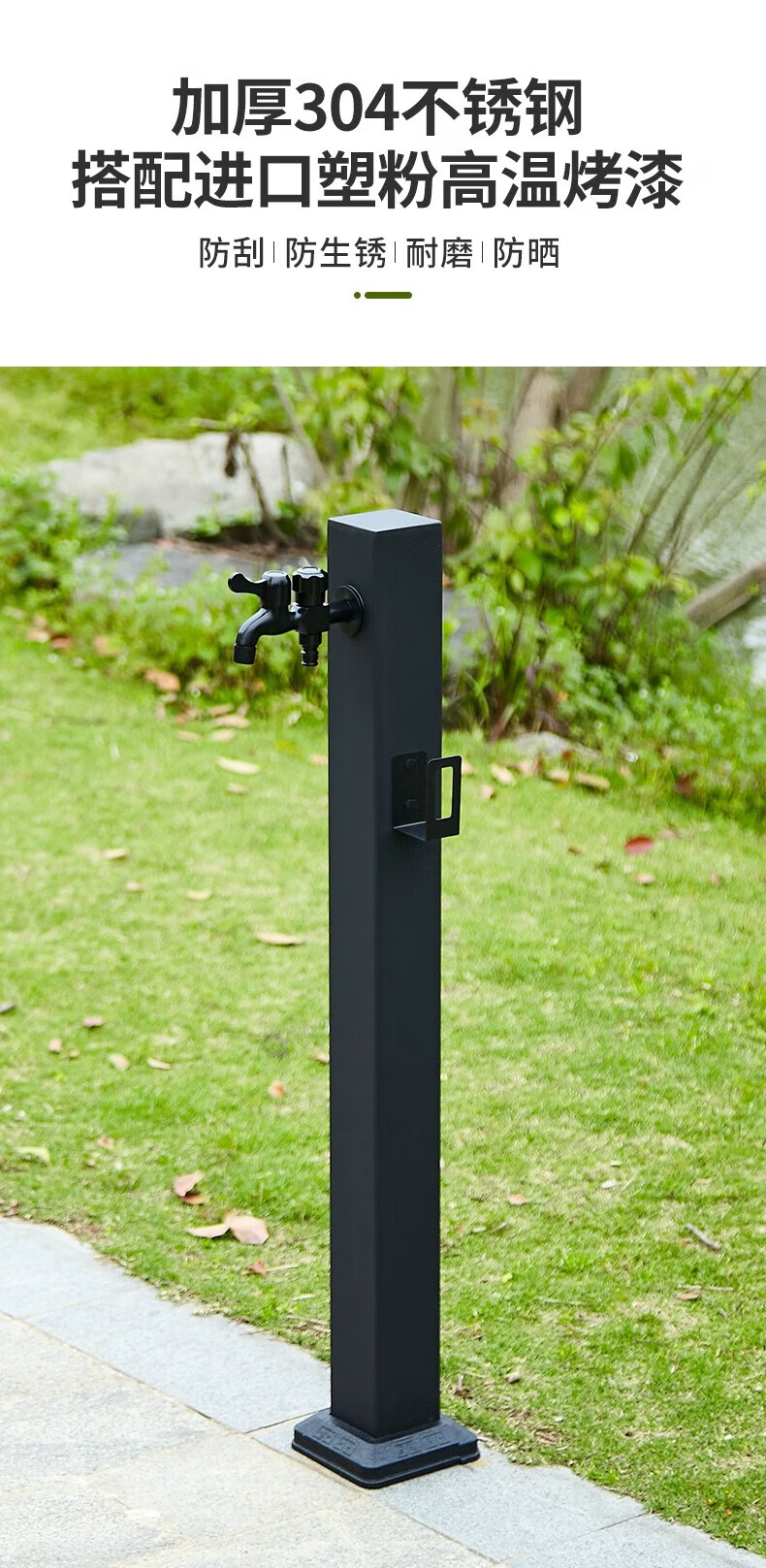 Capello Black Simple Stainless Steel Outdoor Antifreeze Faucet Column Outdoor Courtyard Villa Garden Antifreeze Cracked Water Faucet Black Stainless Steel Square Tall - Spray Gun Double Faucet