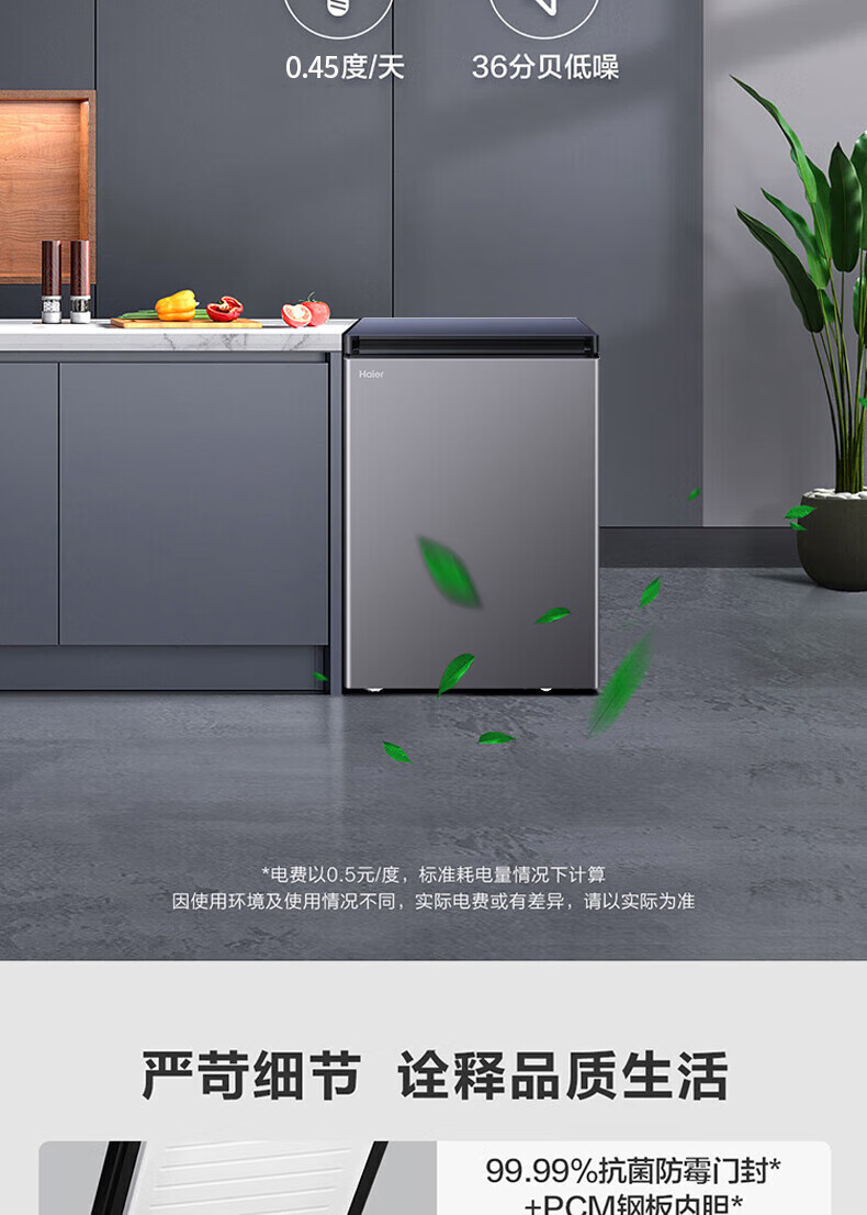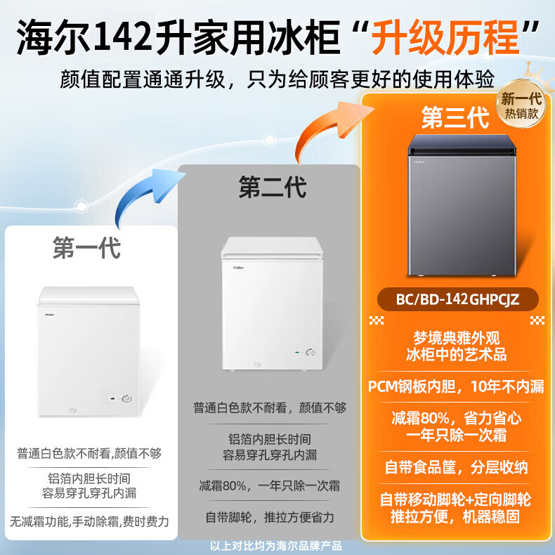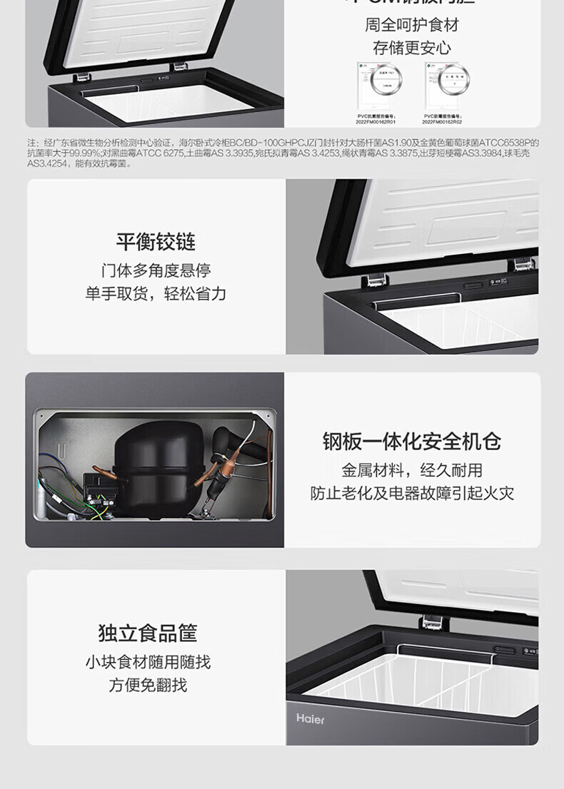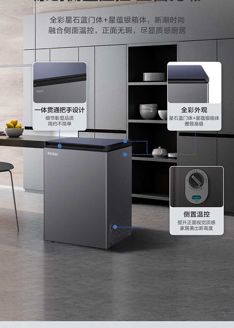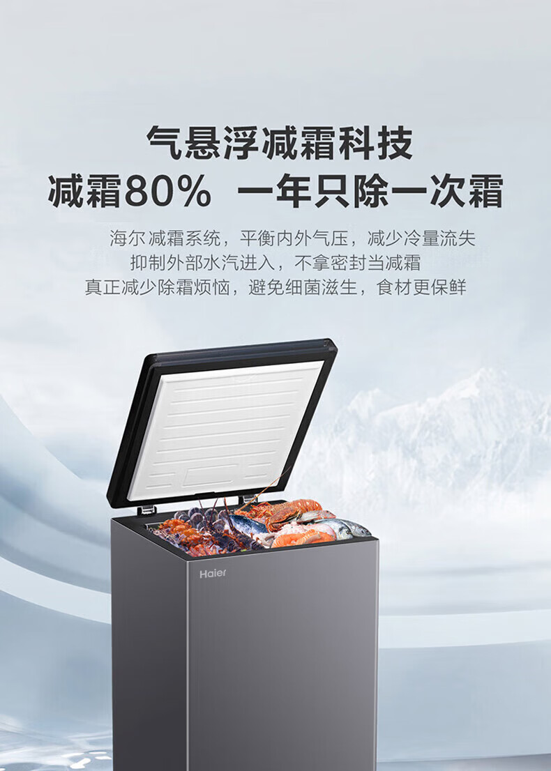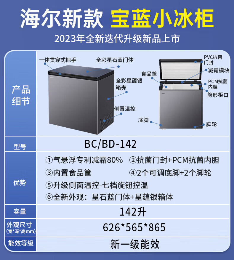 Haier household freezer small horizontal freezer top-opening seafood meat freezer vegetable refrigeration and fresh-keeping cabinet first-class energy efficiency top-level first-class energy efficiency-35 142L