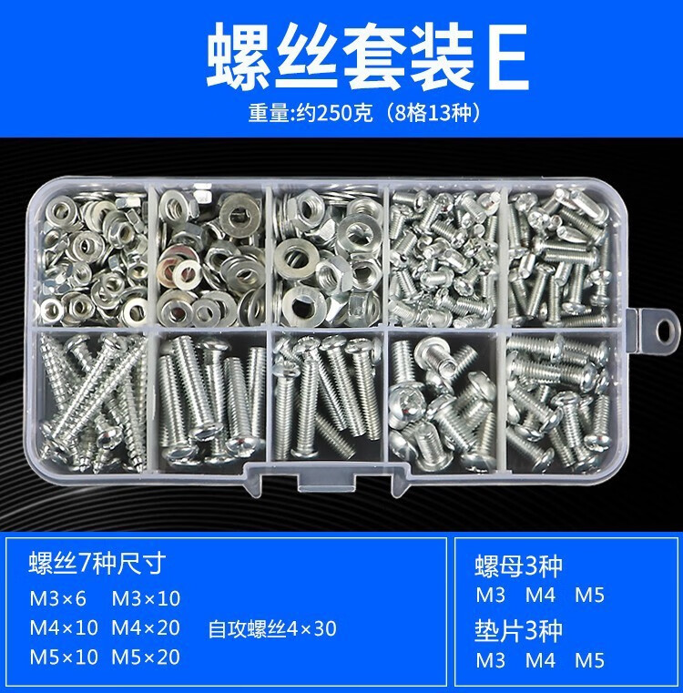 Haiduo round head self-tapping screw set cross pan head nut nut screw washer combination screw M3M4M5M6 13 kinds about 250 grams