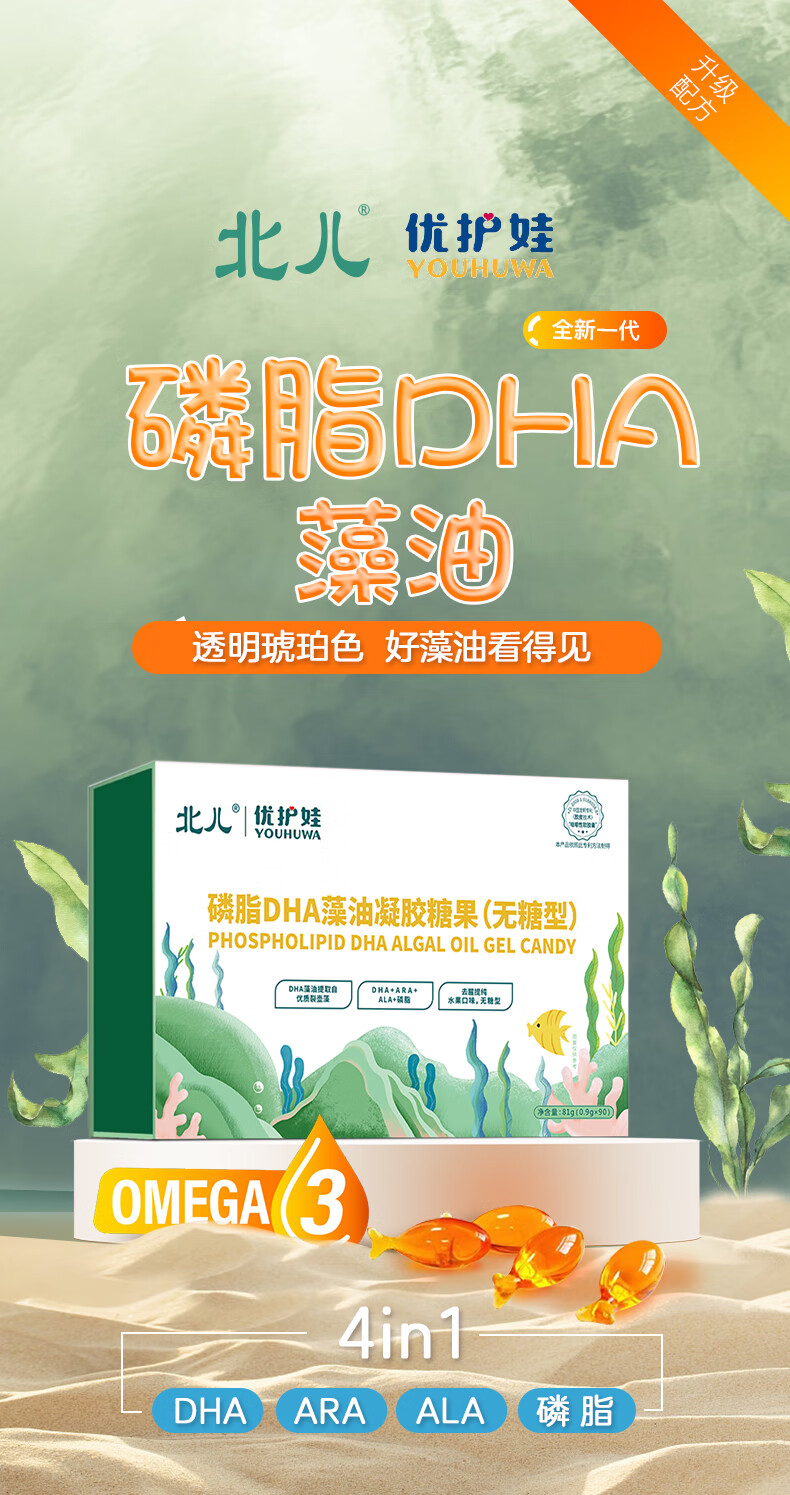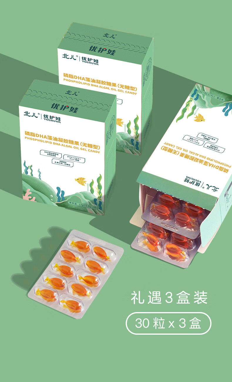 Beier Youhuwa DHA algae oil gel candy DHA gift box (built-in 3 small boxes) trial pack 27g*1 box
