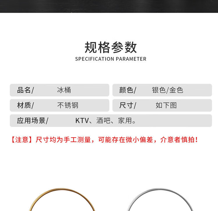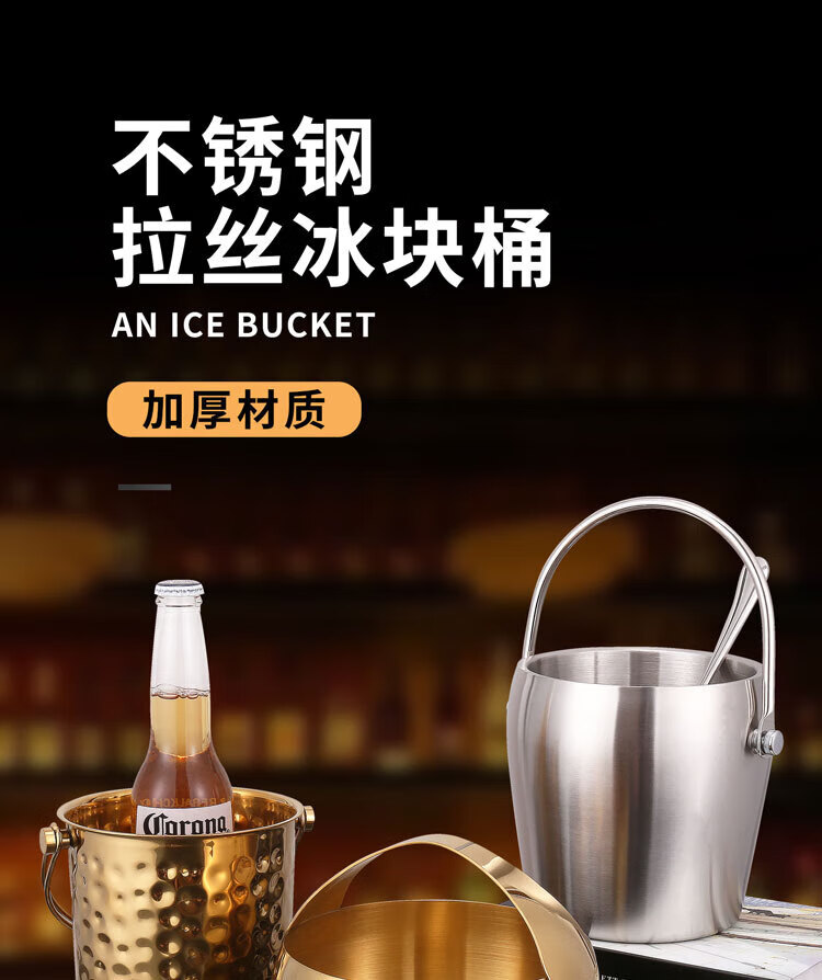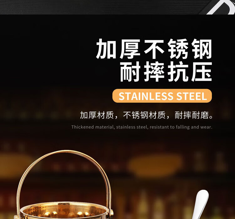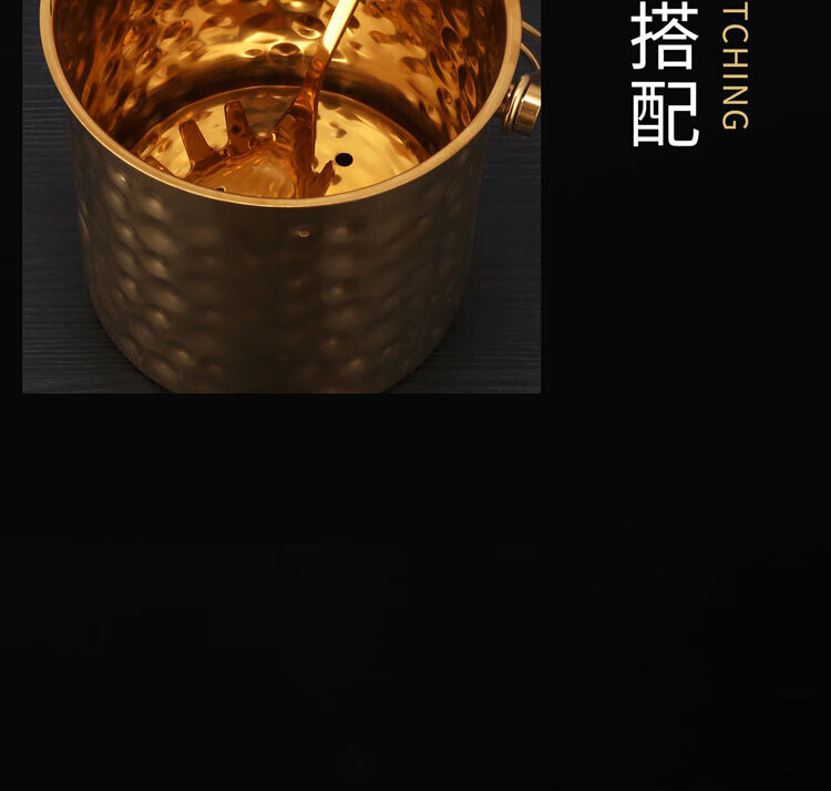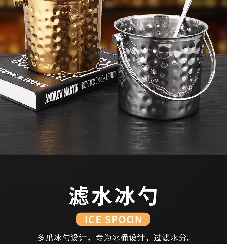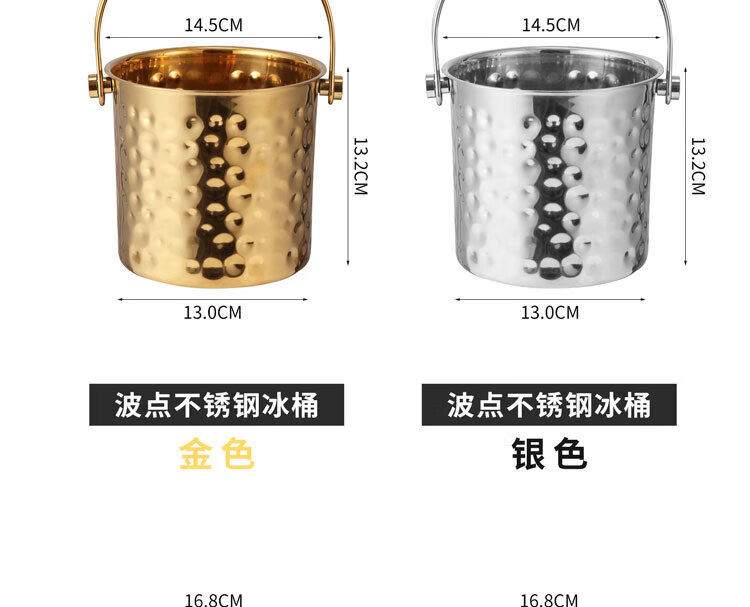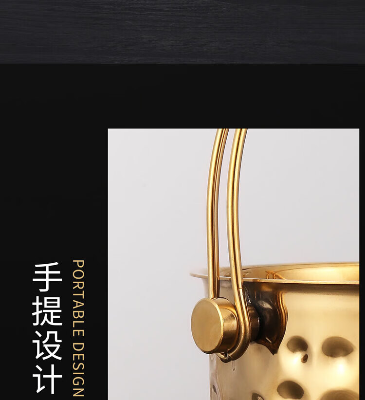 Qian Dong stainless steel ice bucket golden champagne bucket bar KTV European hammered wine barrel red wine foreign wine frame ice bucket commercial extra thick hammered ice bucket 1L gold